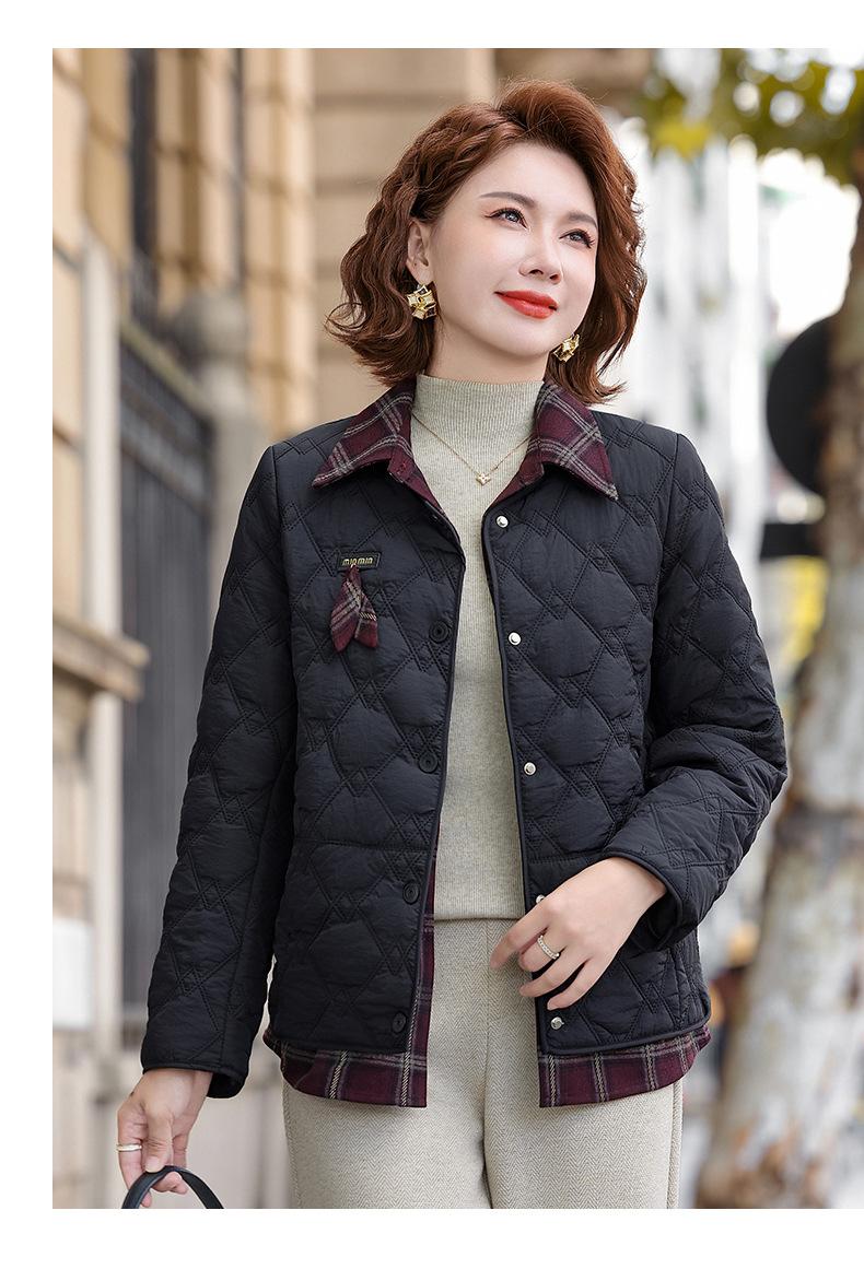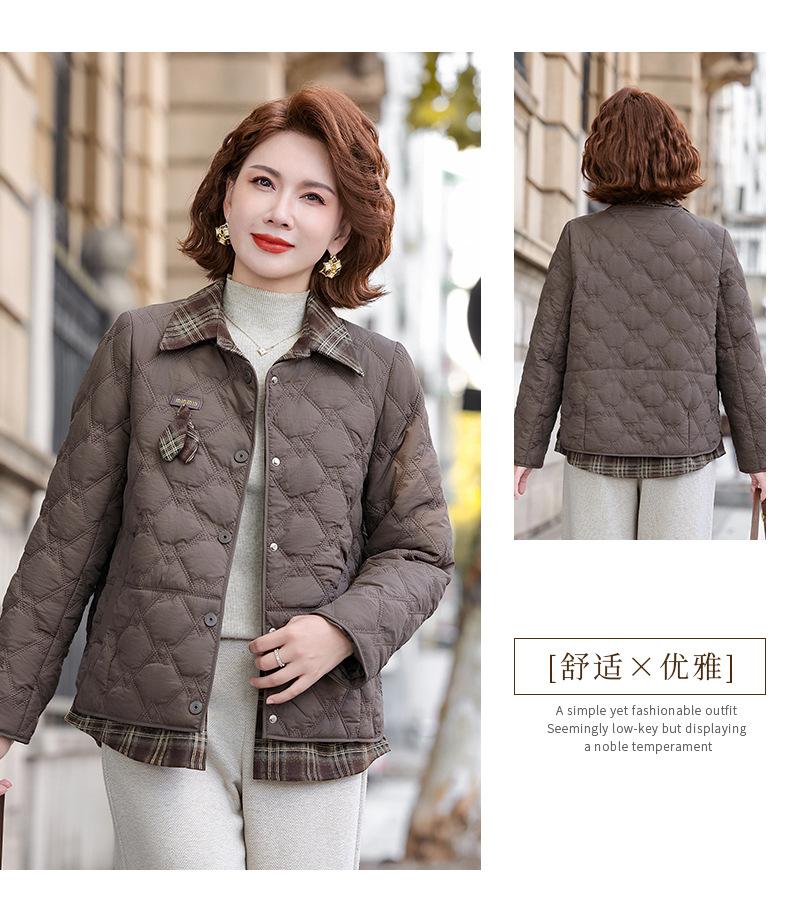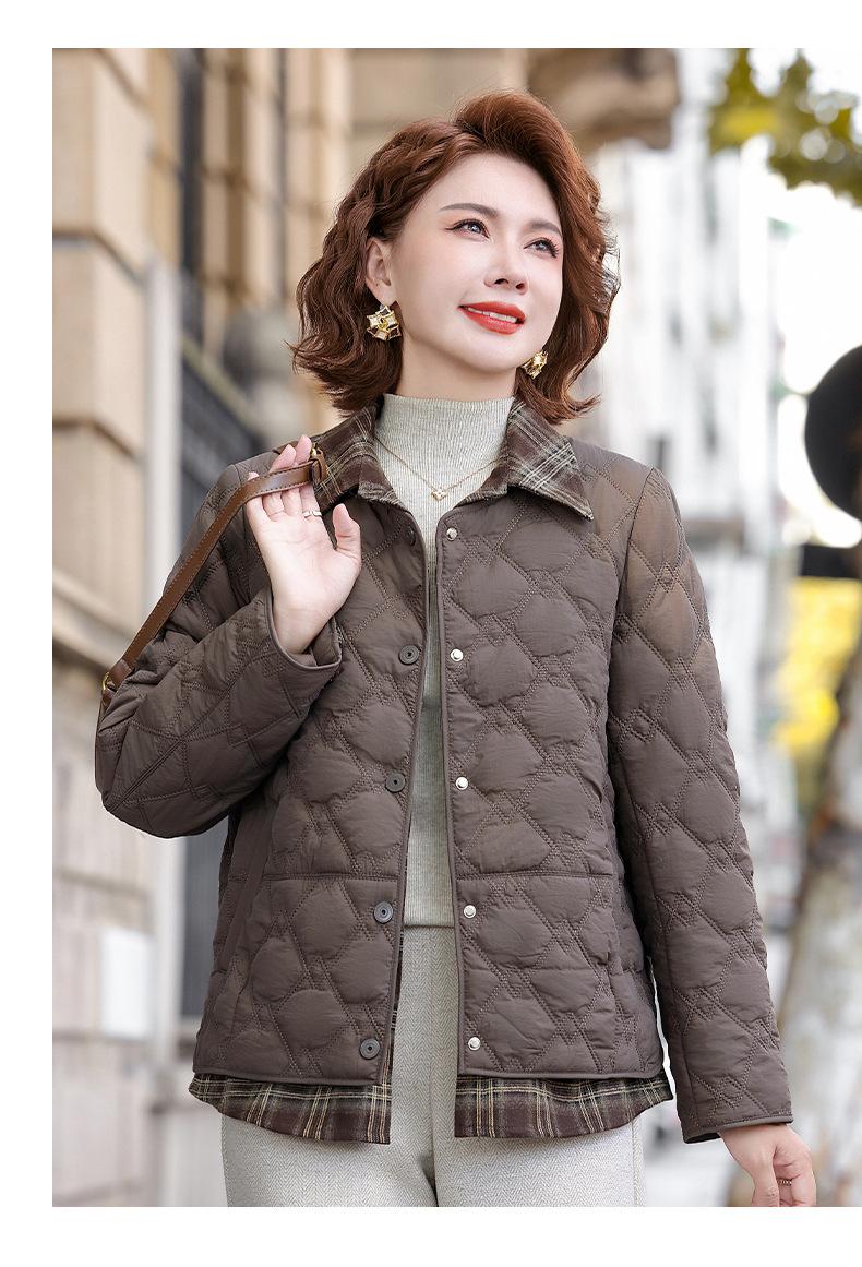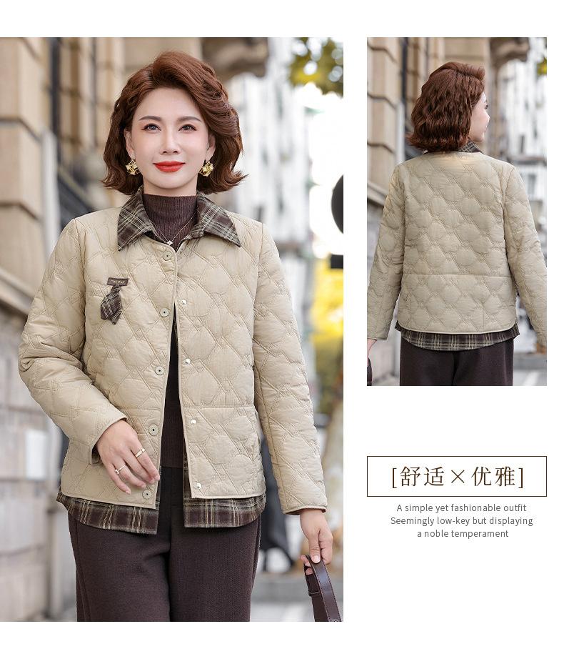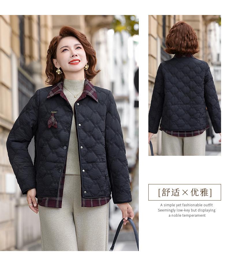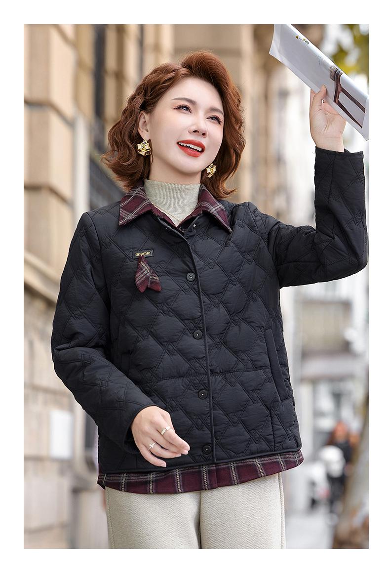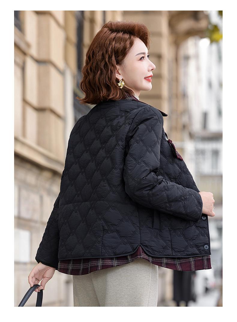 Abrigo de Algodón de Solapa de Dos Piezas para Mamá a la Moda 2025 Invierno Nuevo Chaqueta Casual Versátil Delgada Acolchada de Algodón para Mujeres de Mediana Edad
