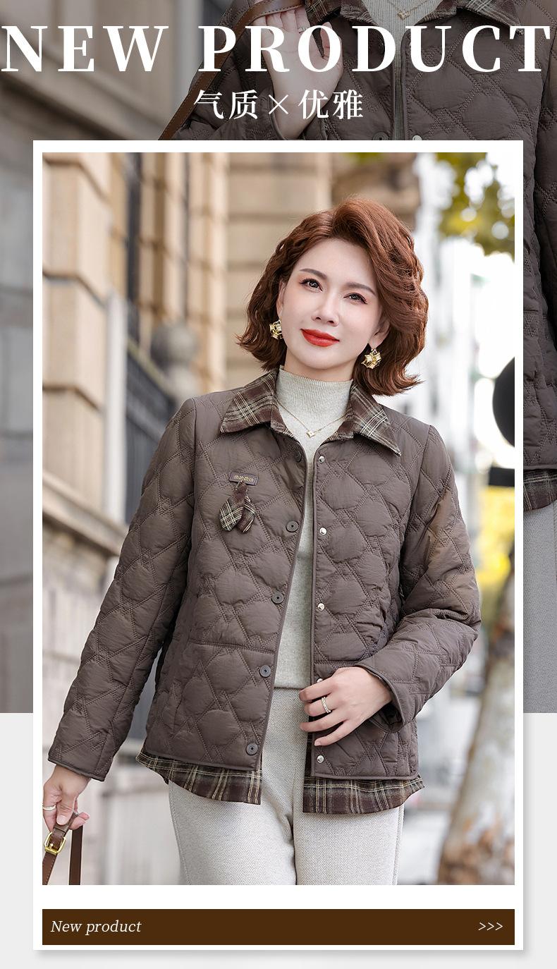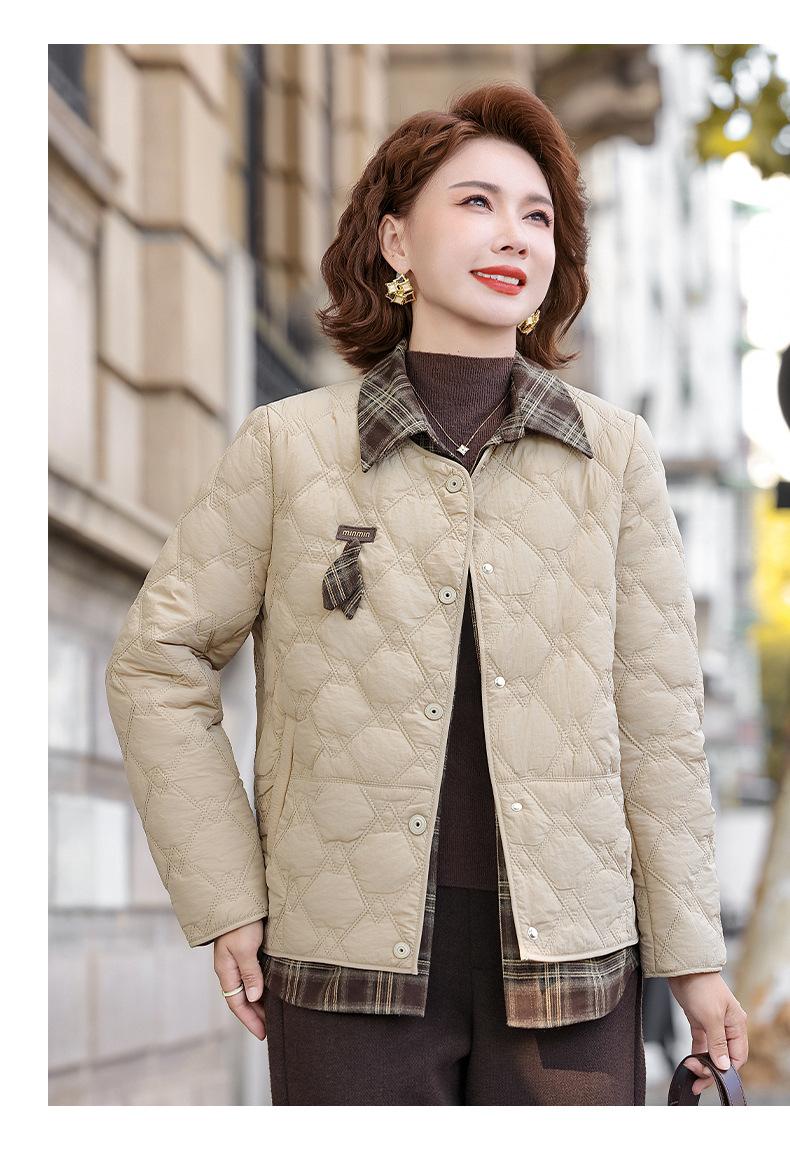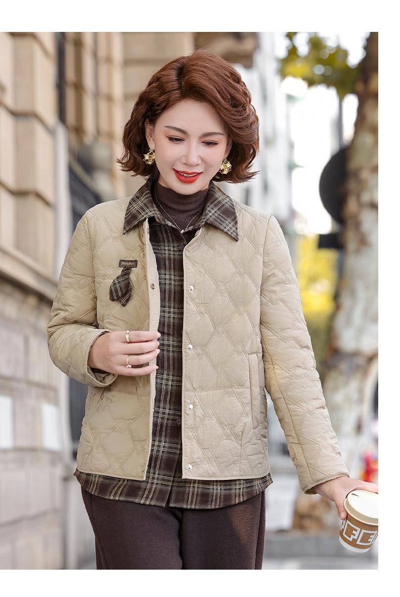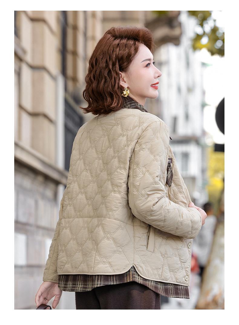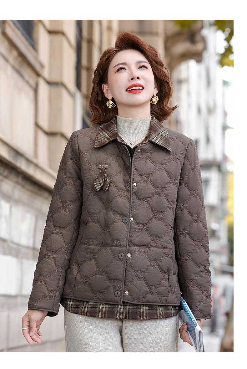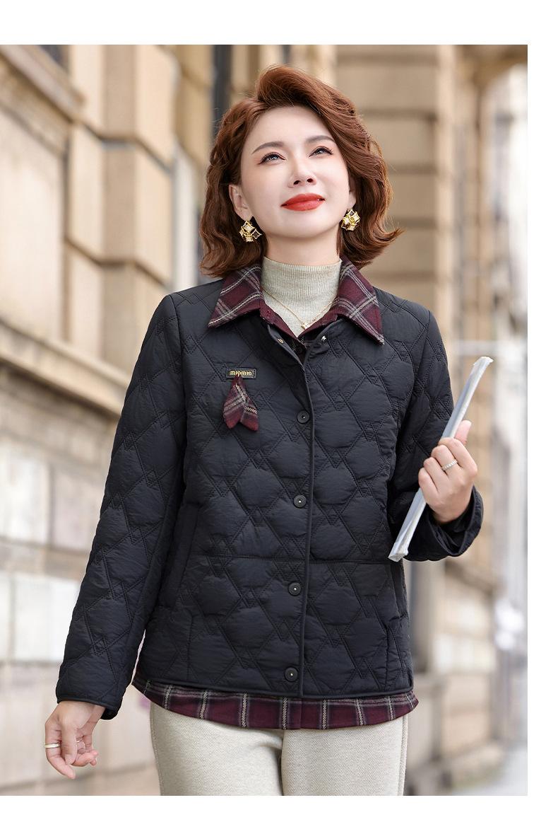 Abrigo de Algodón de Solapa de Dos Piezas para Mamá a la Moda 2025 Invierno Nuevo Chaqueta Casual Versátil Delgada Acolchada de Algodón para Mujeres de Mediana Edad