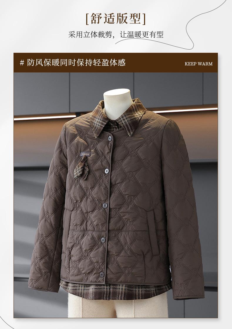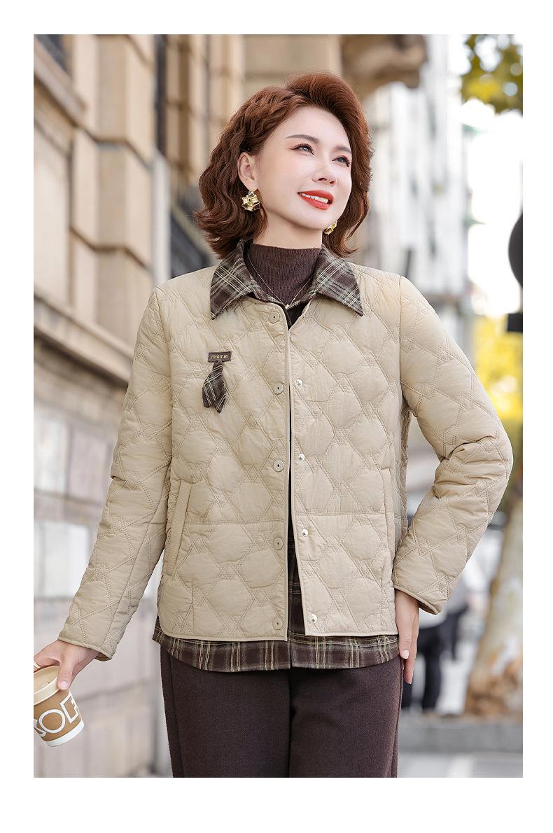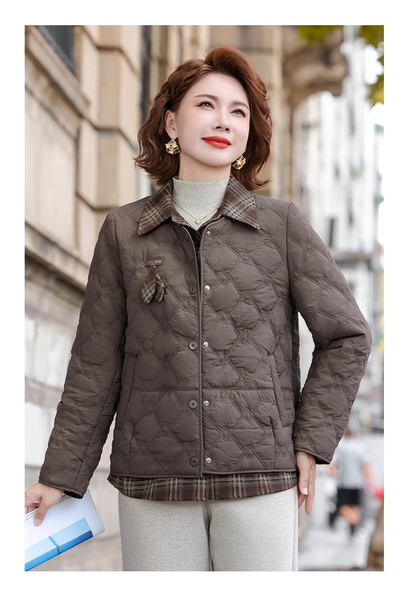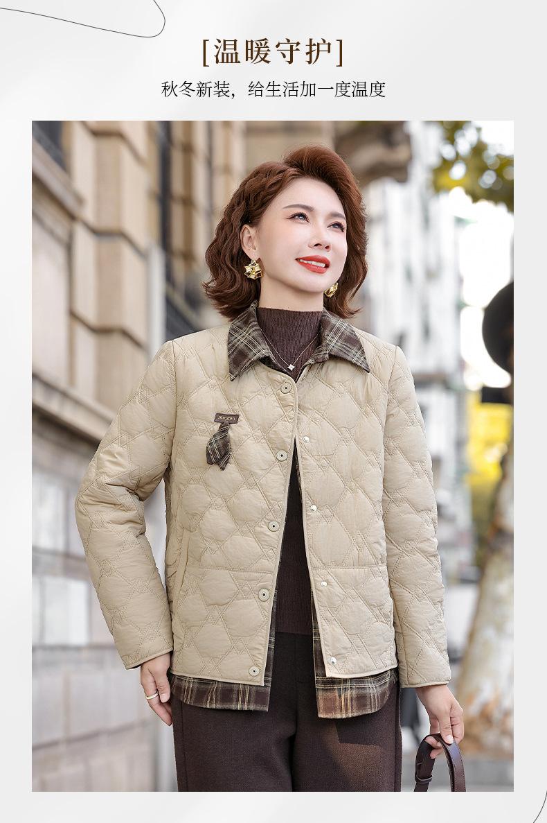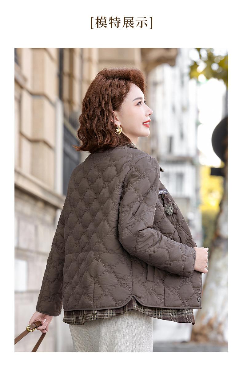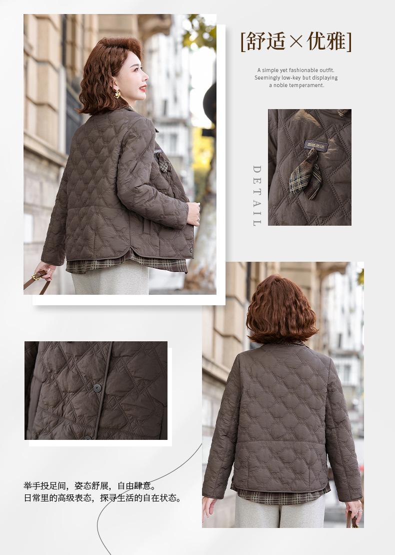 Abrigo de Algodón de Solapa de Dos Piezas para Mamá a la Moda 2025 Invierno Nuevo Chaqueta Casual Versátil Delgada Acolchada de Algodón para Mujeres de Mediana Edad