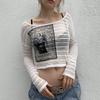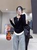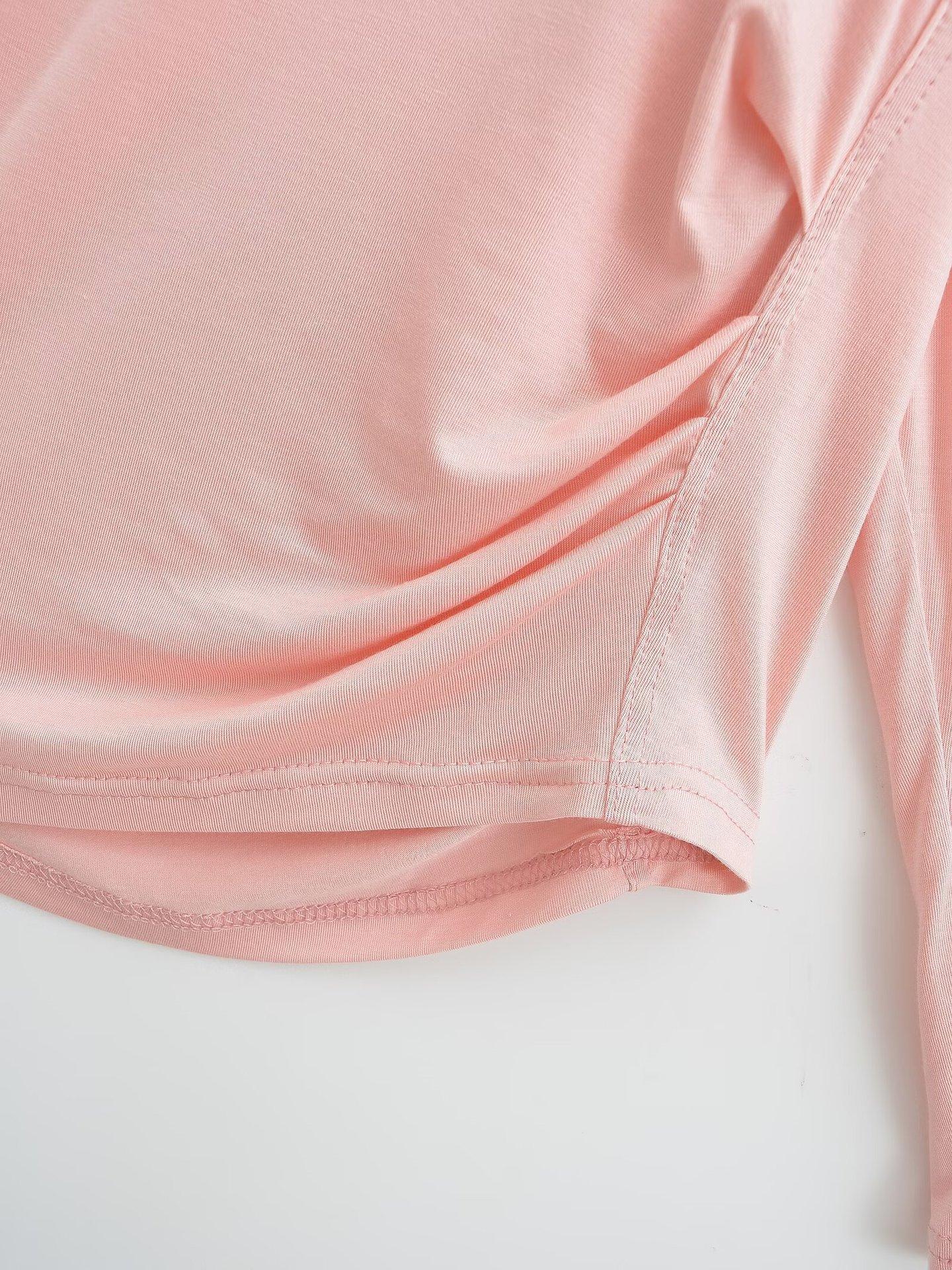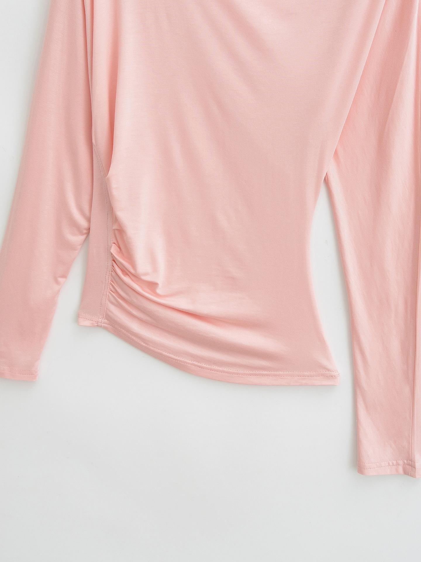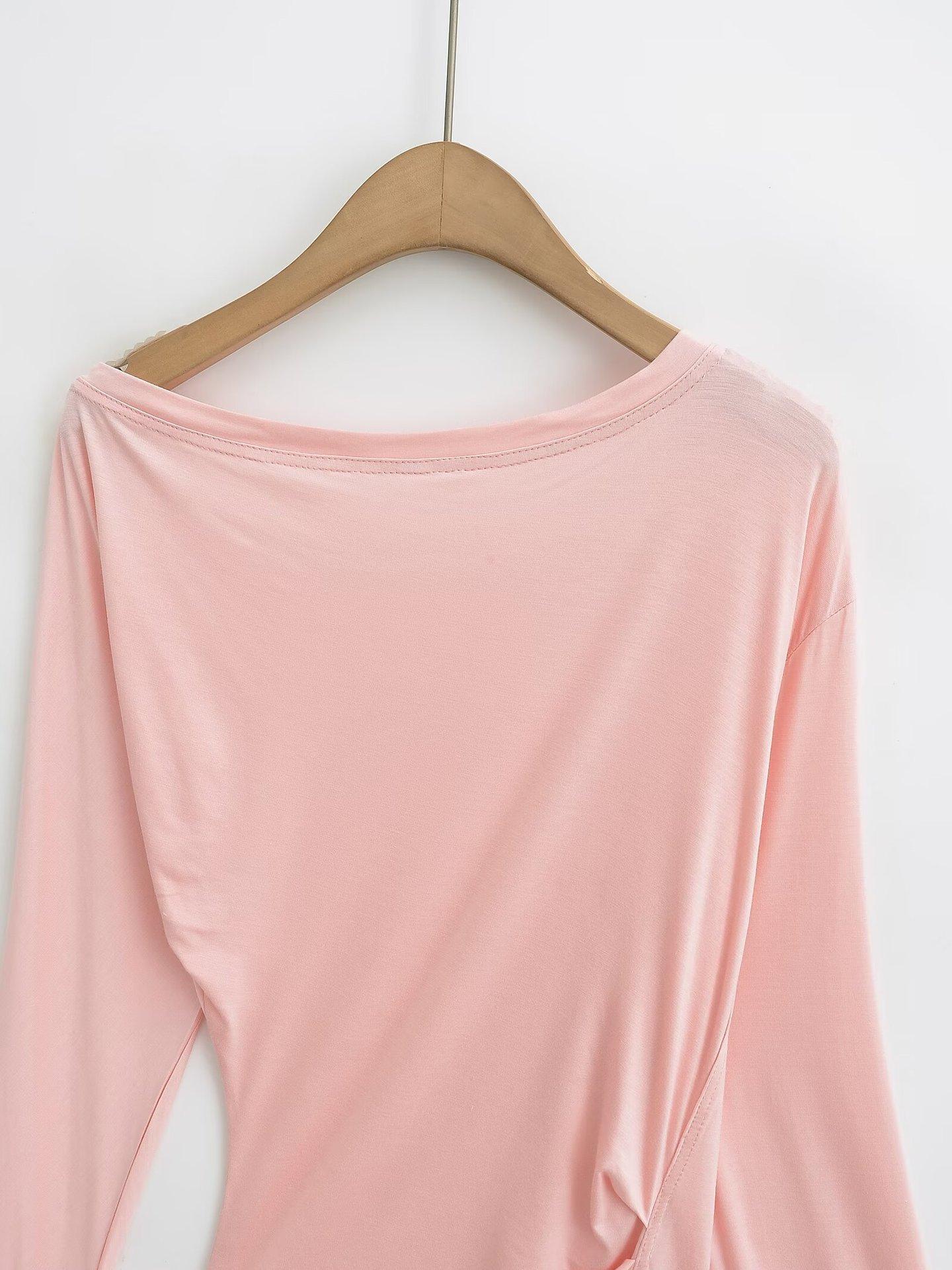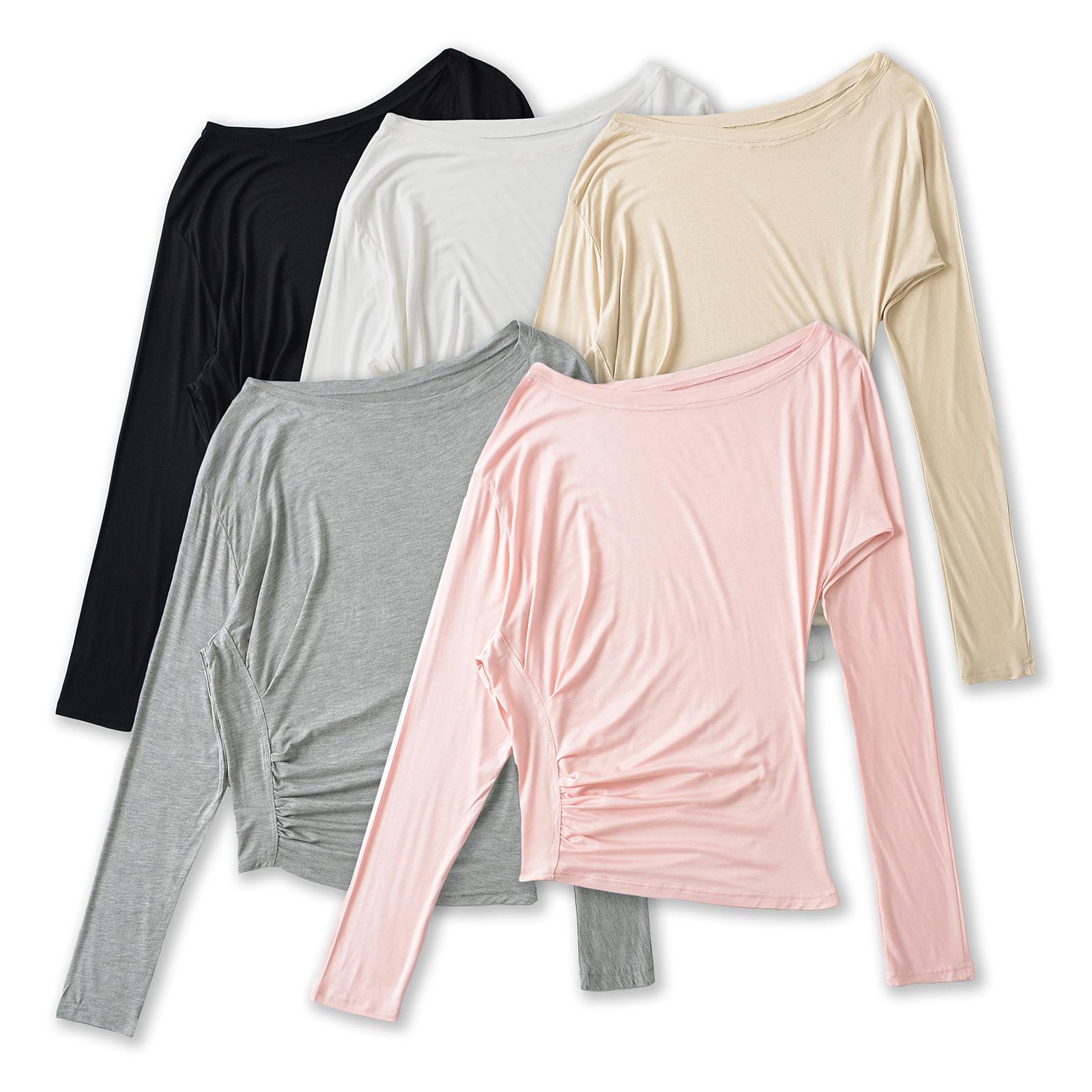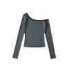 24 Primavera y Otoño Nuevo Camiseta de Manga Larga con Hombro Descubierto Sexy Estilo Spice Girls de Deseo Puro Estilo Lazy con Pliegues Ajustada Estilo Americano para Mujer