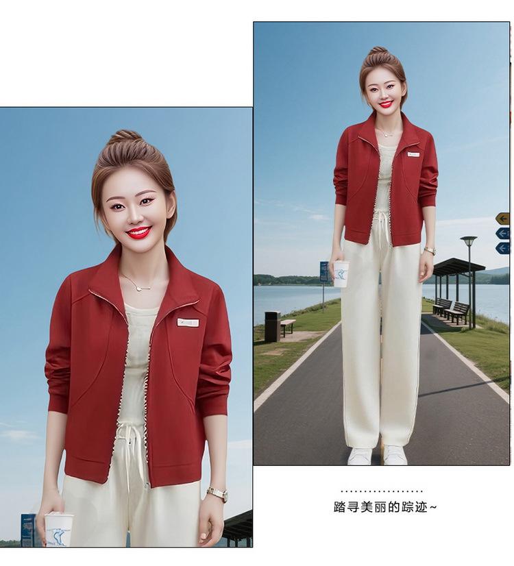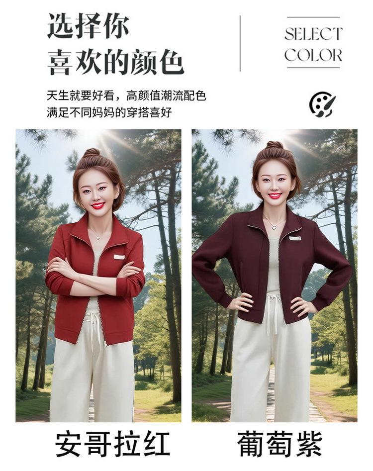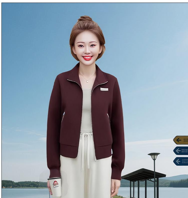 2025 Primavera y Otoño Nuevo Top Deportivo Casual de Manga Larga con Cierre para Mujer de Mediana Edad Ropa de Otoño para Mamá Chaqueta Abrigo Delgado