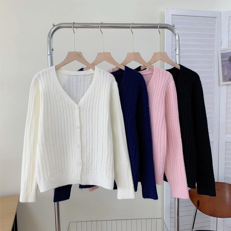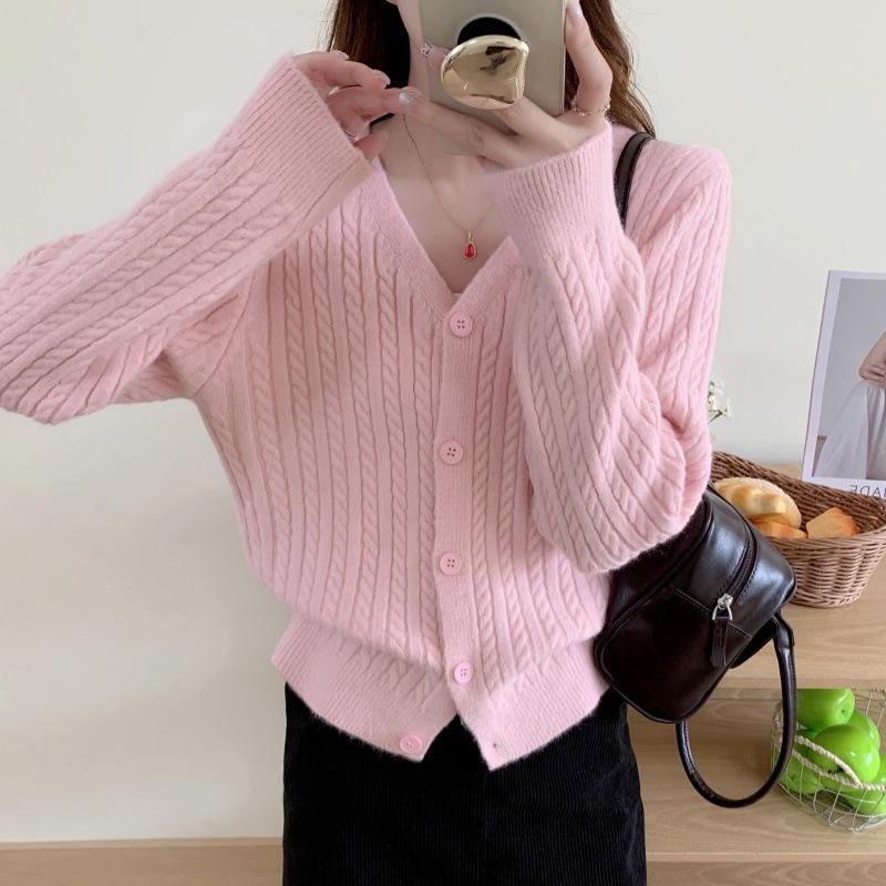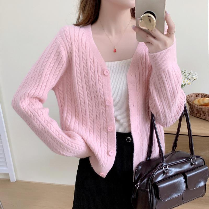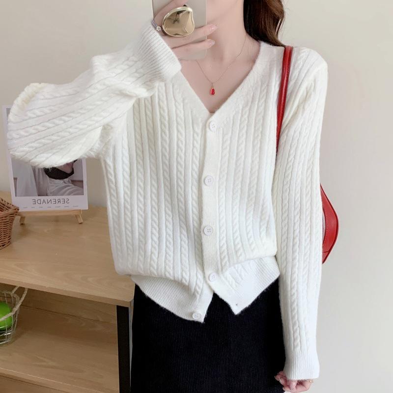 Cárdigan de Punto Trenzado Suave Nuevo de Nicho Estilo Francés con Cuello en V para Mujer, Chaqueta Corta, Suéter Holgado Adelgazante, Ropa Exterior, Top