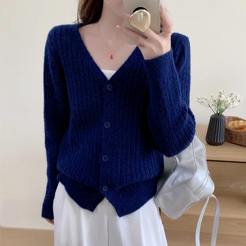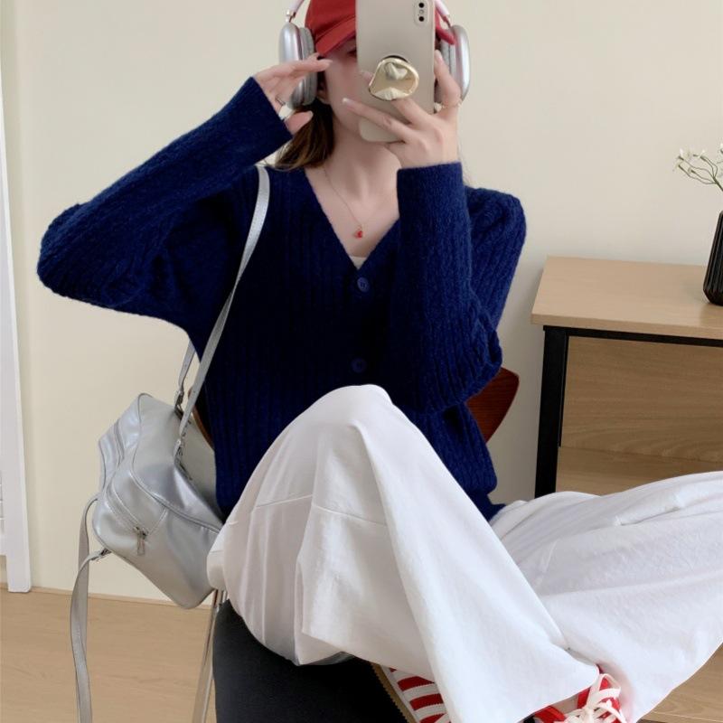 Suéter coreano de estilo suave con cuello redondo para mujer, otoño e invierno, nuevo diseño holgado, cárdigan de punto de un solo botón, top