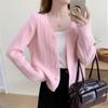 Suéter cárdigan de punto de dos piezas falso para mujer, novedad de otoño e invierno de 2024, cuello redondo, corte ajustado, versátil, adelgazante, tops para mujer al por mayor
