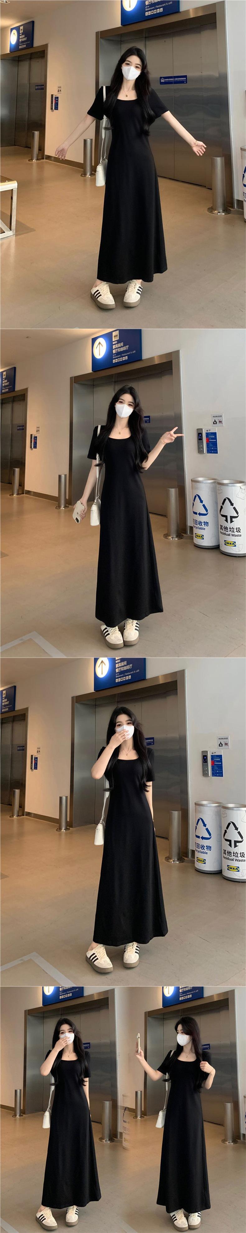 Vestido Verano 2025 Nuevo Casual Ropa Exterior Vestido Largo Ropa de Verano Manga Corta Delgado Modal Ajustado Adelgazante Temperamento