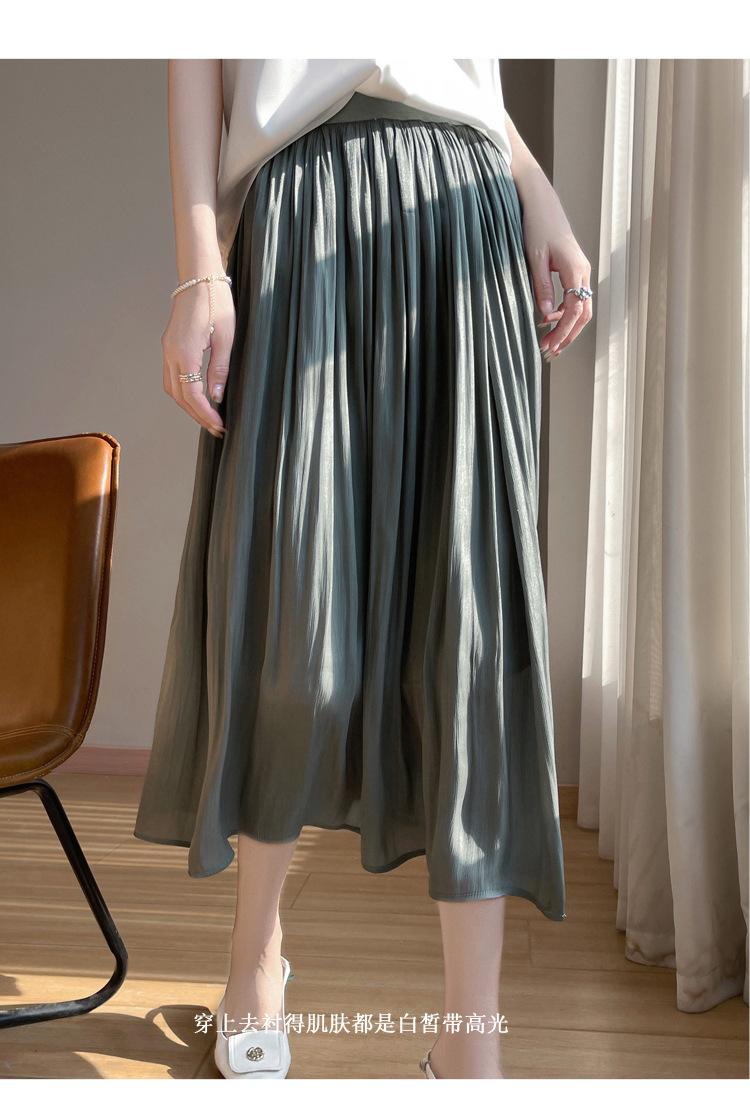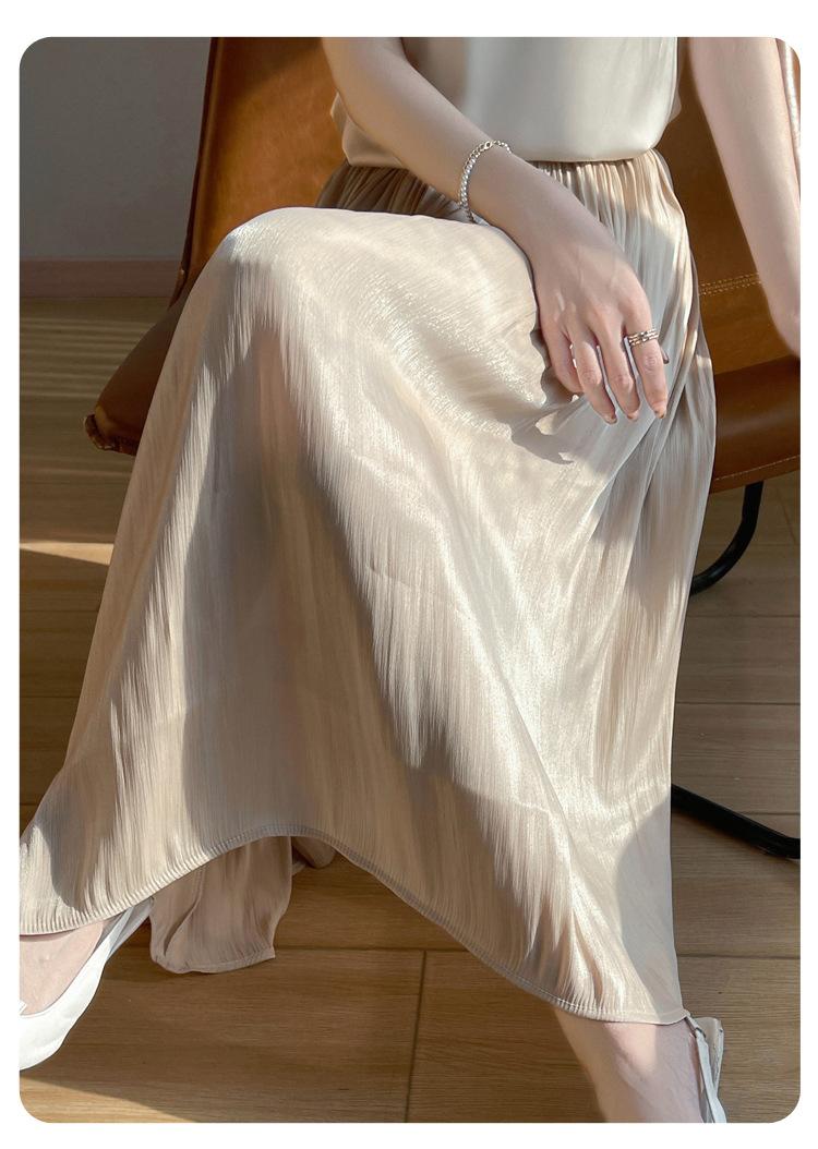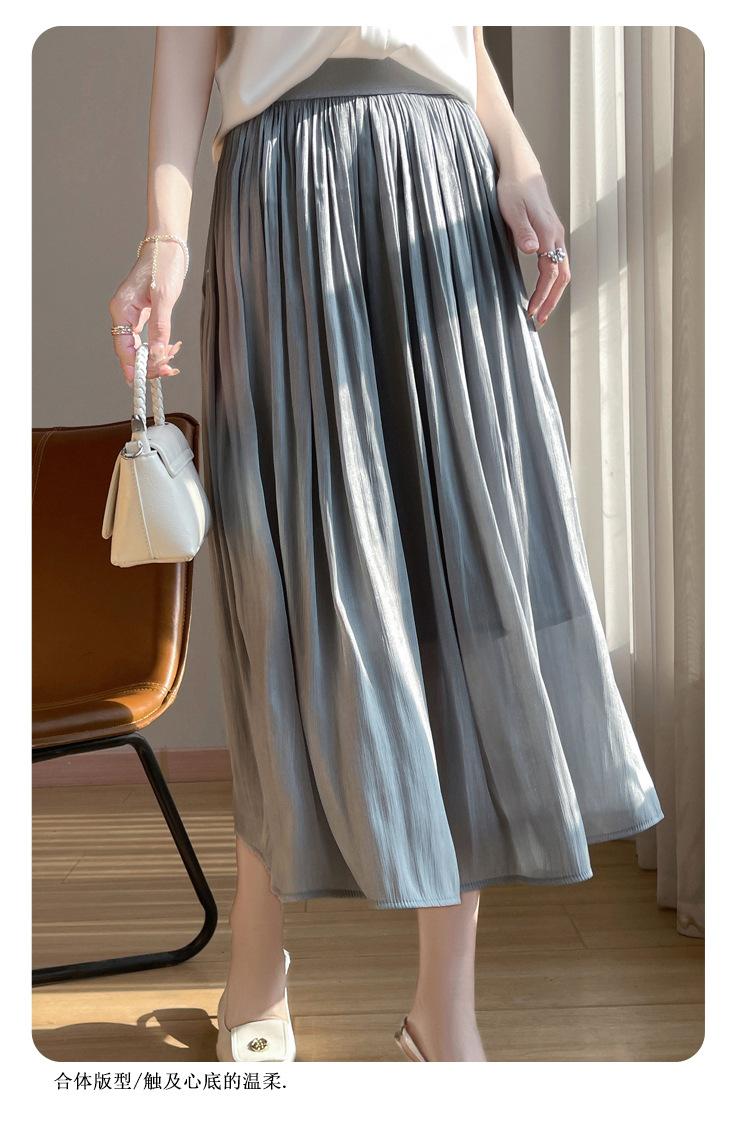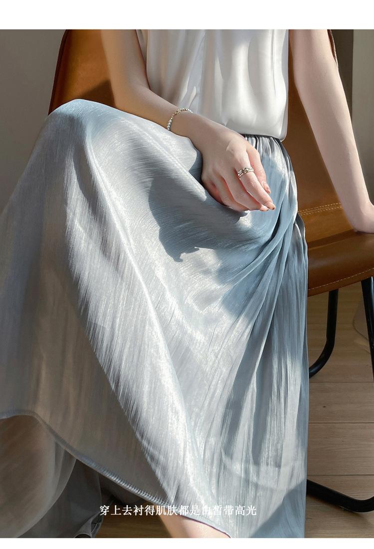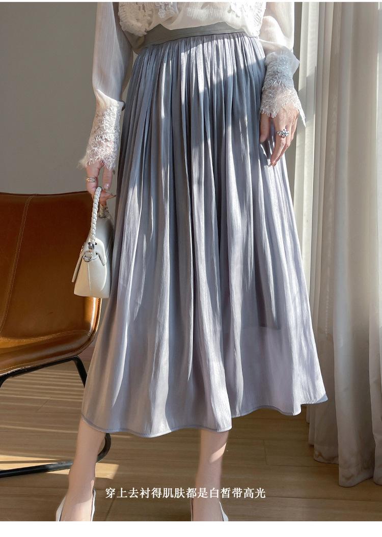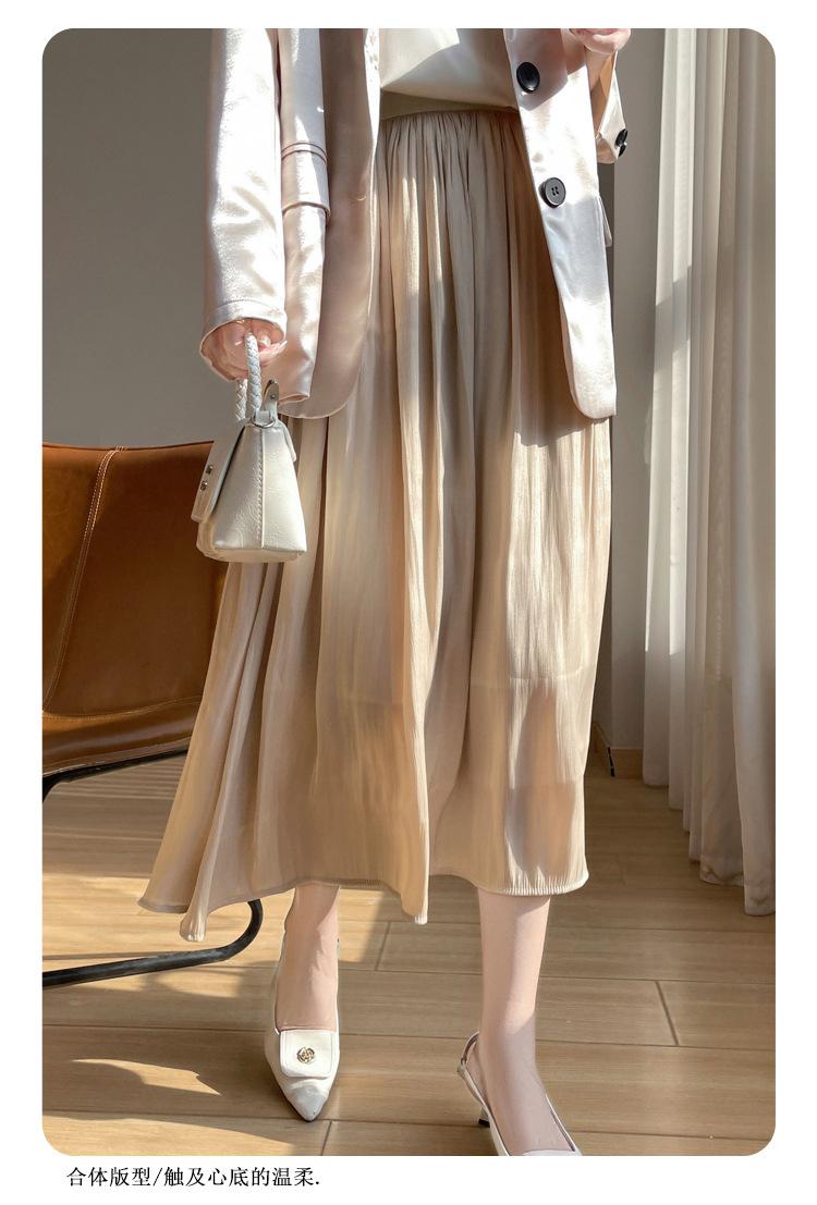 Primavera y Verano 2025 Nueva Llegada Falda de Gasa para Mujer Drapeada Cintura Alta Color Sólido Elegante de Alta Gama Largo Medio Falda Plisada