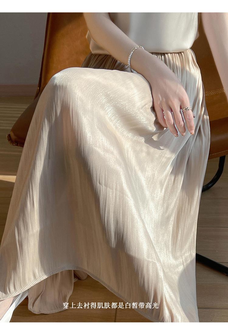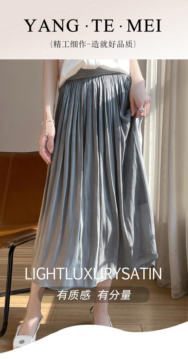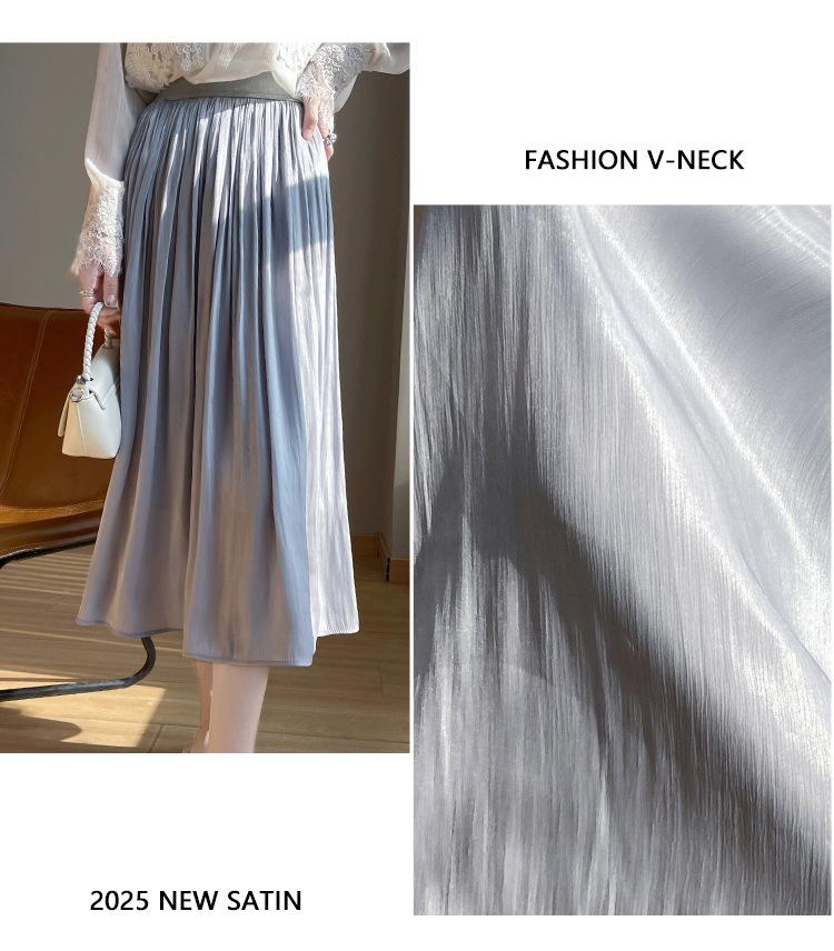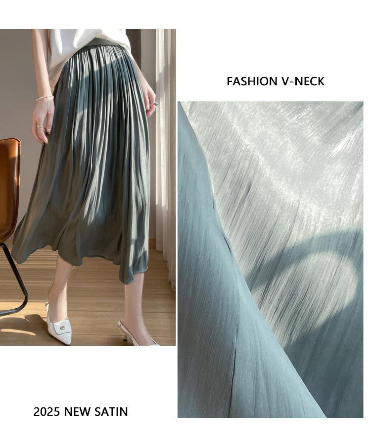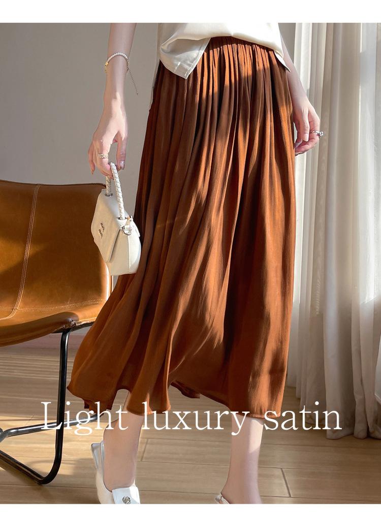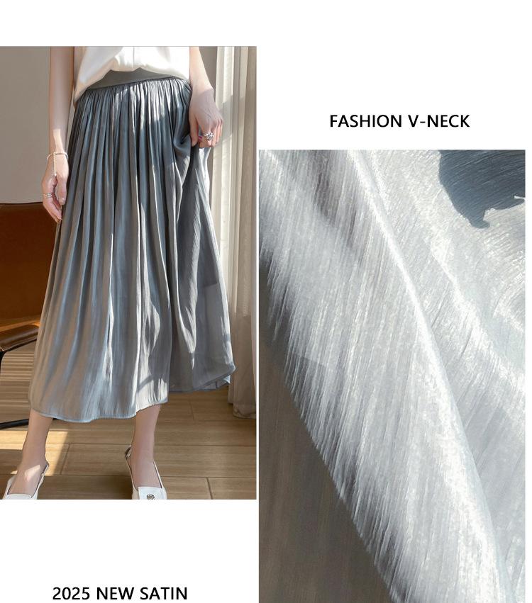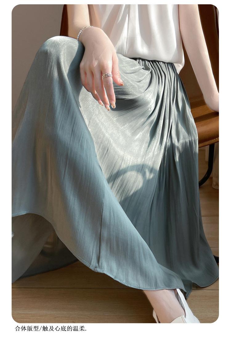 Primavera y Verano 2025 Nueva Llegada Falda de Gasa para Mujer Drapeada Cintura Alta Color Sólido Elegante de Alta Gama Largo Medio Falda Plisada