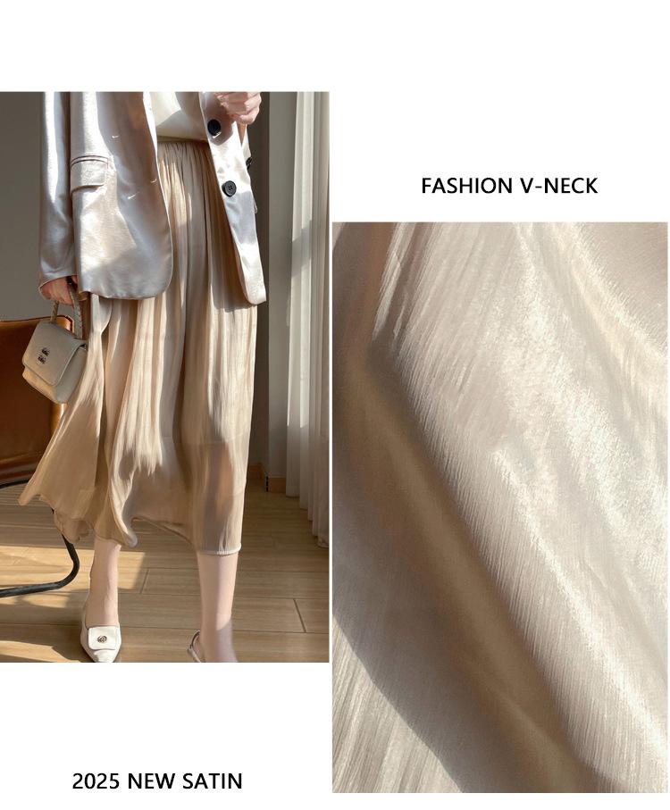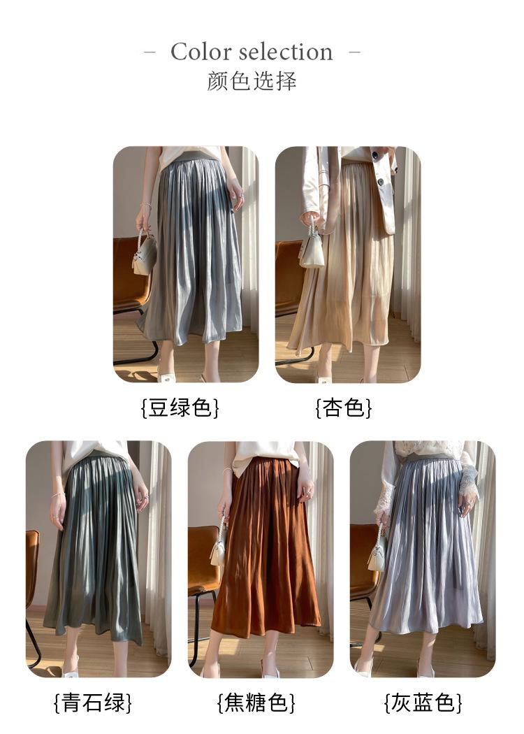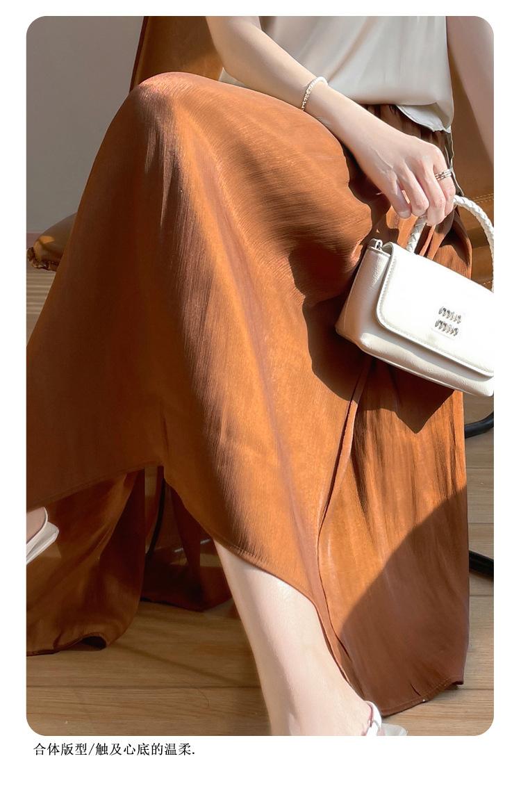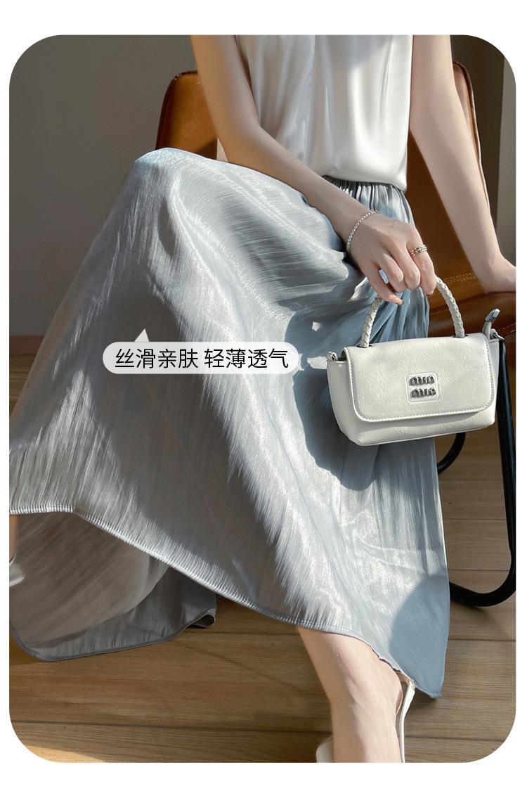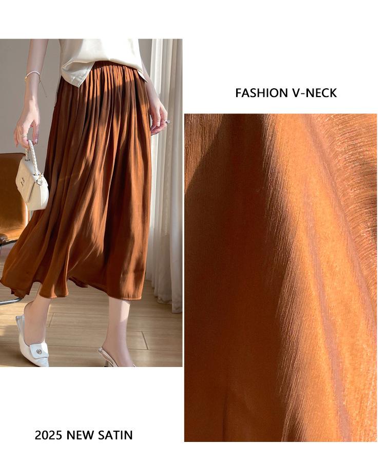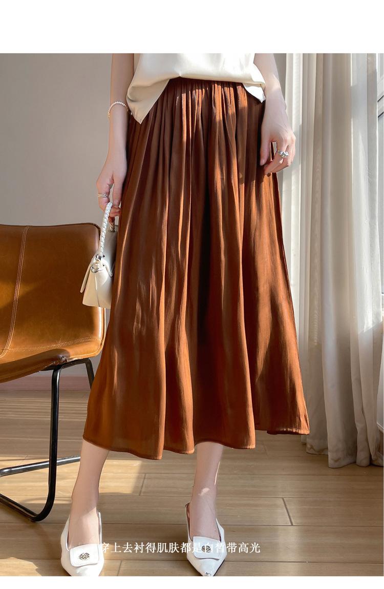Primavera y Verano 2025 Nueva Llegada Falda de Gasa para Mujer Drapeada Cintura Alta Color Sólido Elegante de Alta Gama Largo Medio Falda Plisada