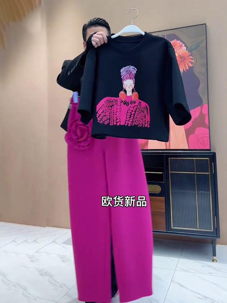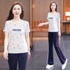 Traje Deportivo Casual Europeo para Mujer Verano 2025 Nuevo Estilo de Moda Reductor de Edad Estampado Conjunto de Dos Piezas de Manga Corta Adelgazante