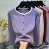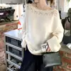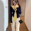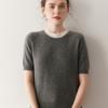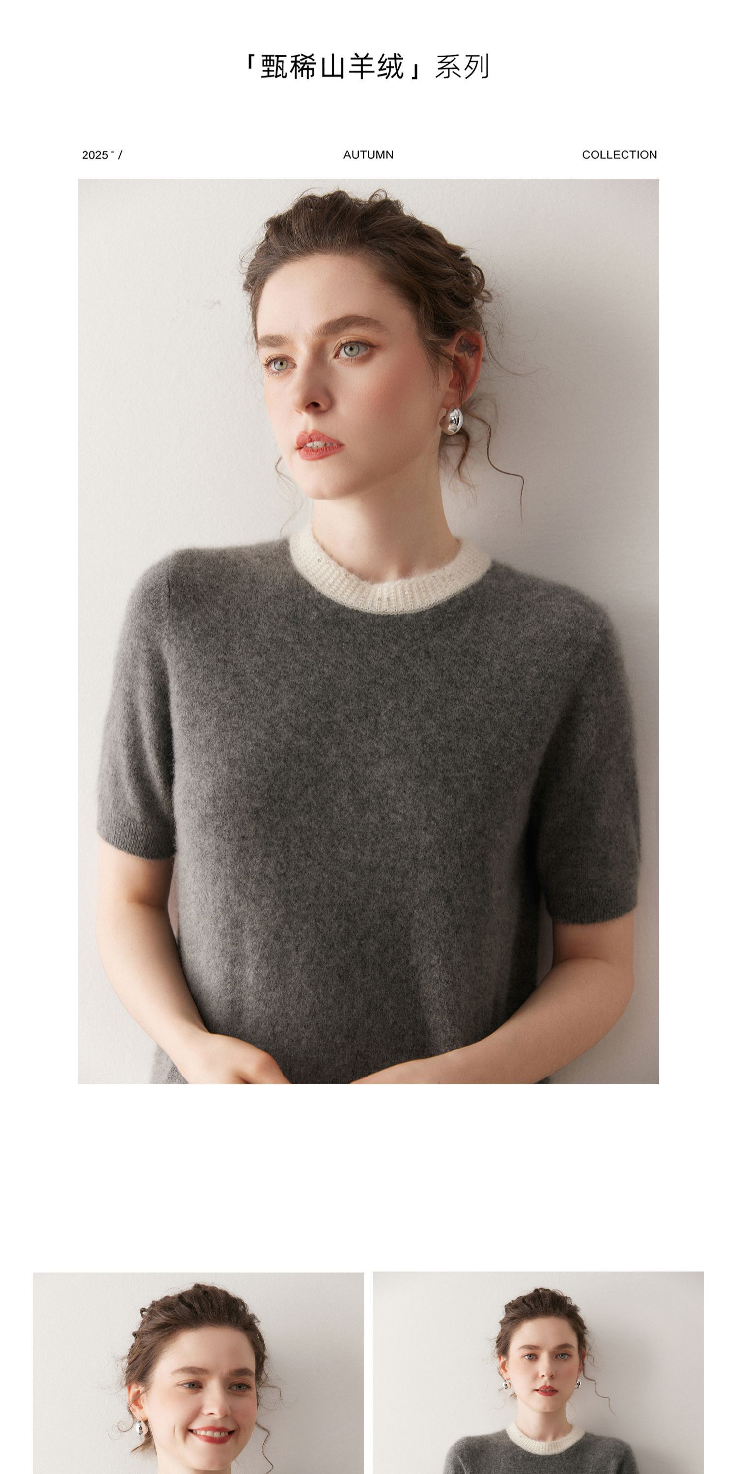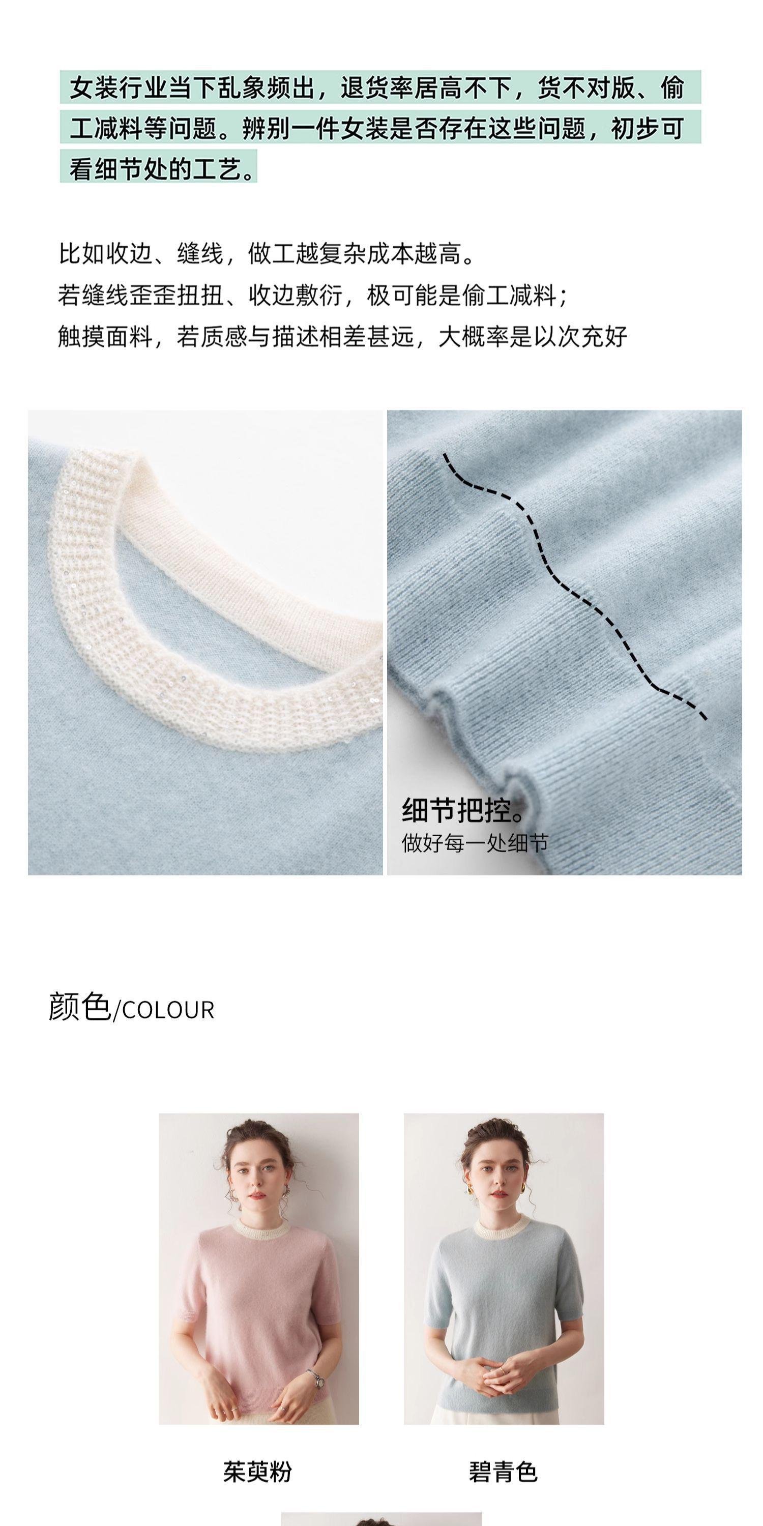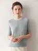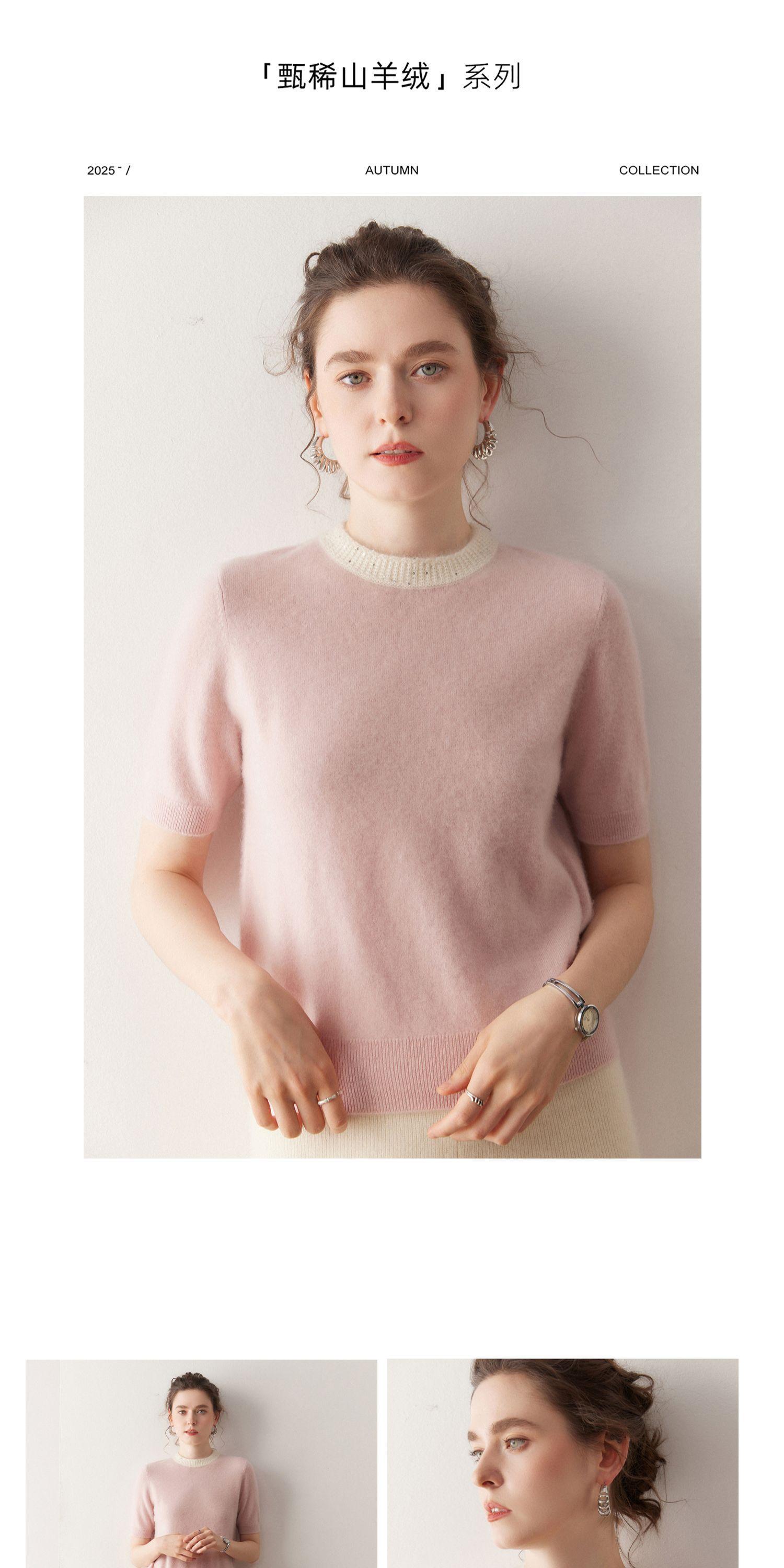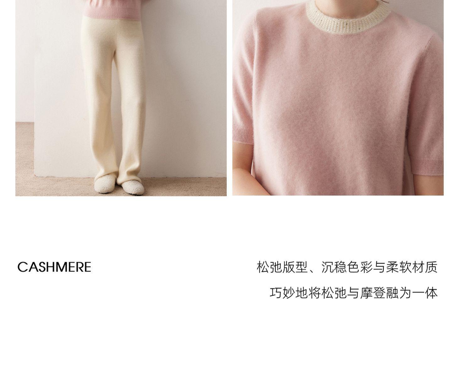 Suéter de Cachemira de Manga Corta con Cuello Redondo y Lentejuelas Color Block para Mujer, Tejido de Punto Suave al Tacto, Otoño/Invierno 2025, Capa Base de Punto de Media Manga