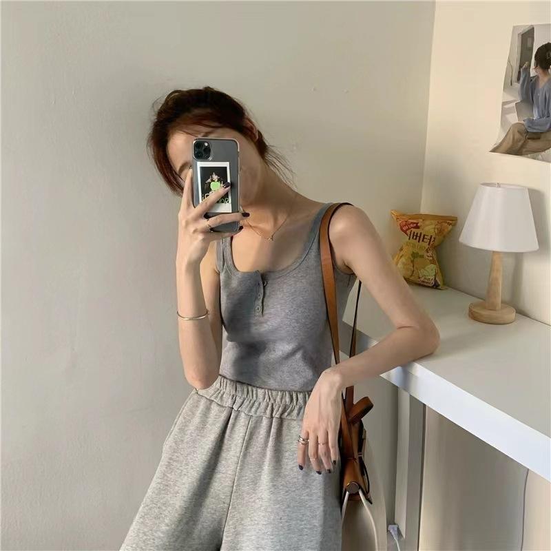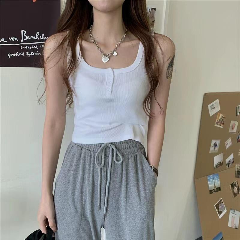 Ropa Exterior de Verano para Mujer Ajuste Slim Largo Corto Adelgazante Versátil Diseño de Camiseta sin Mangas Sentido Nicho Camisola Top