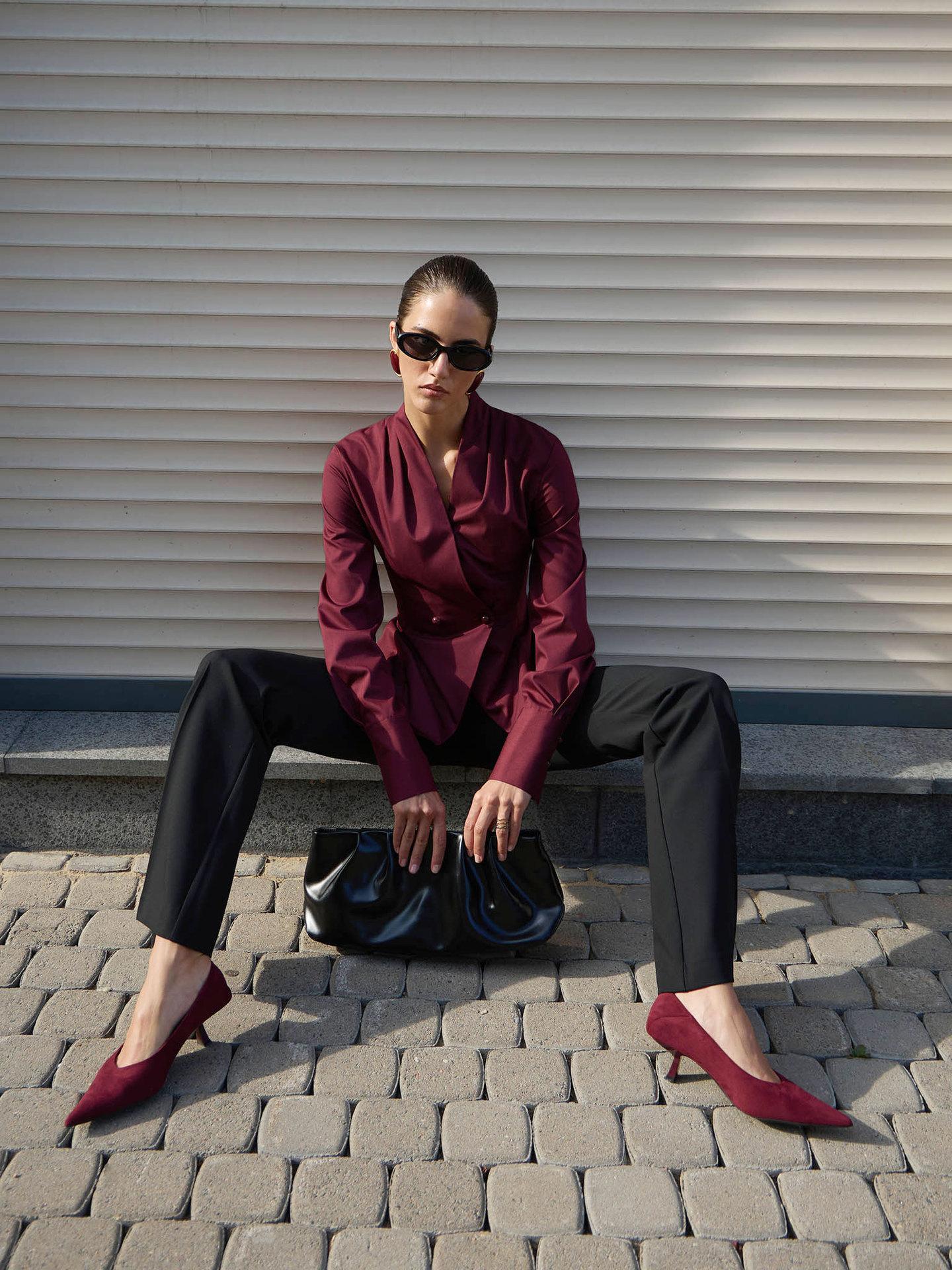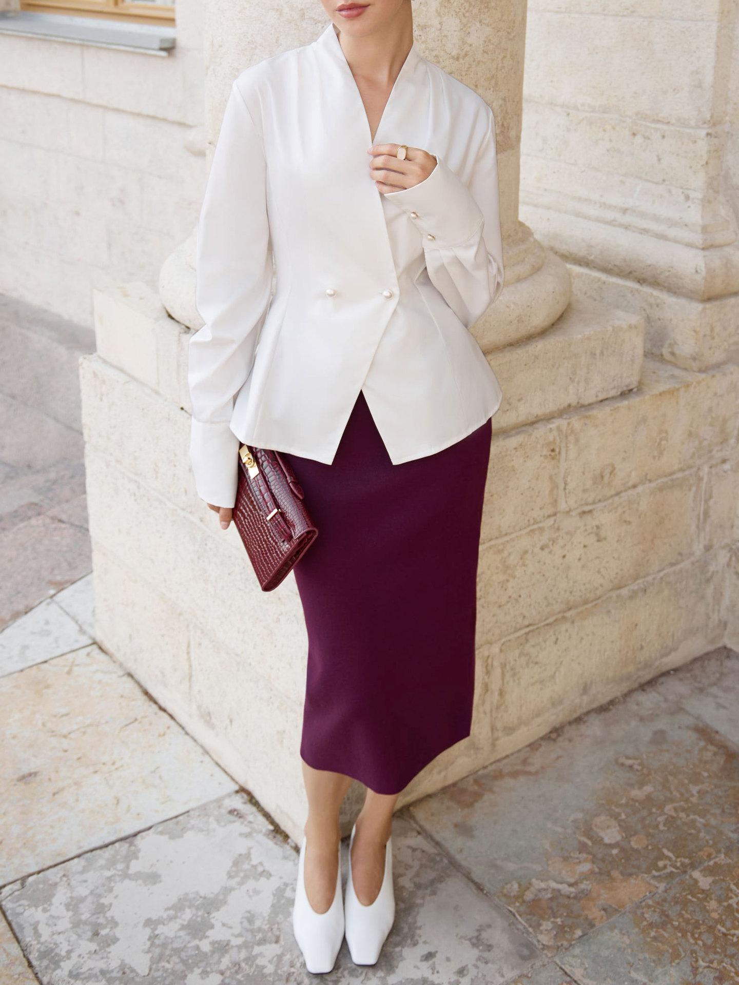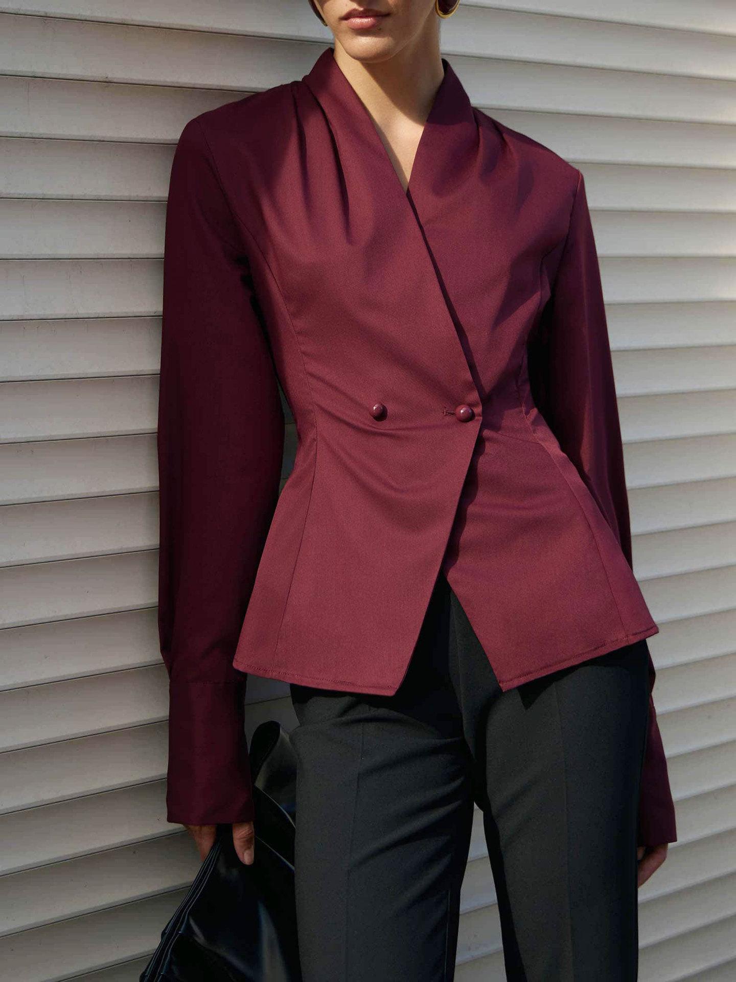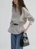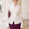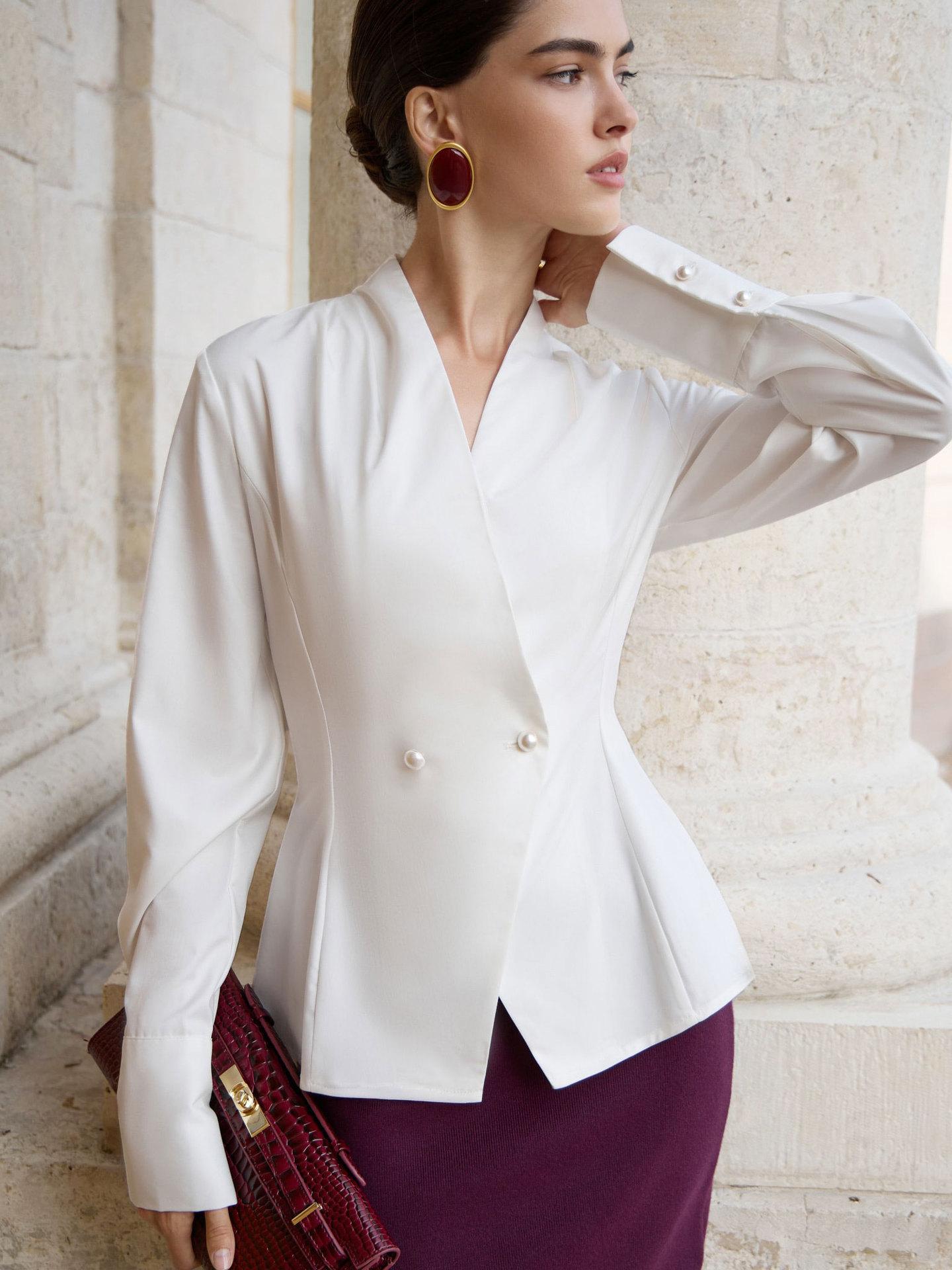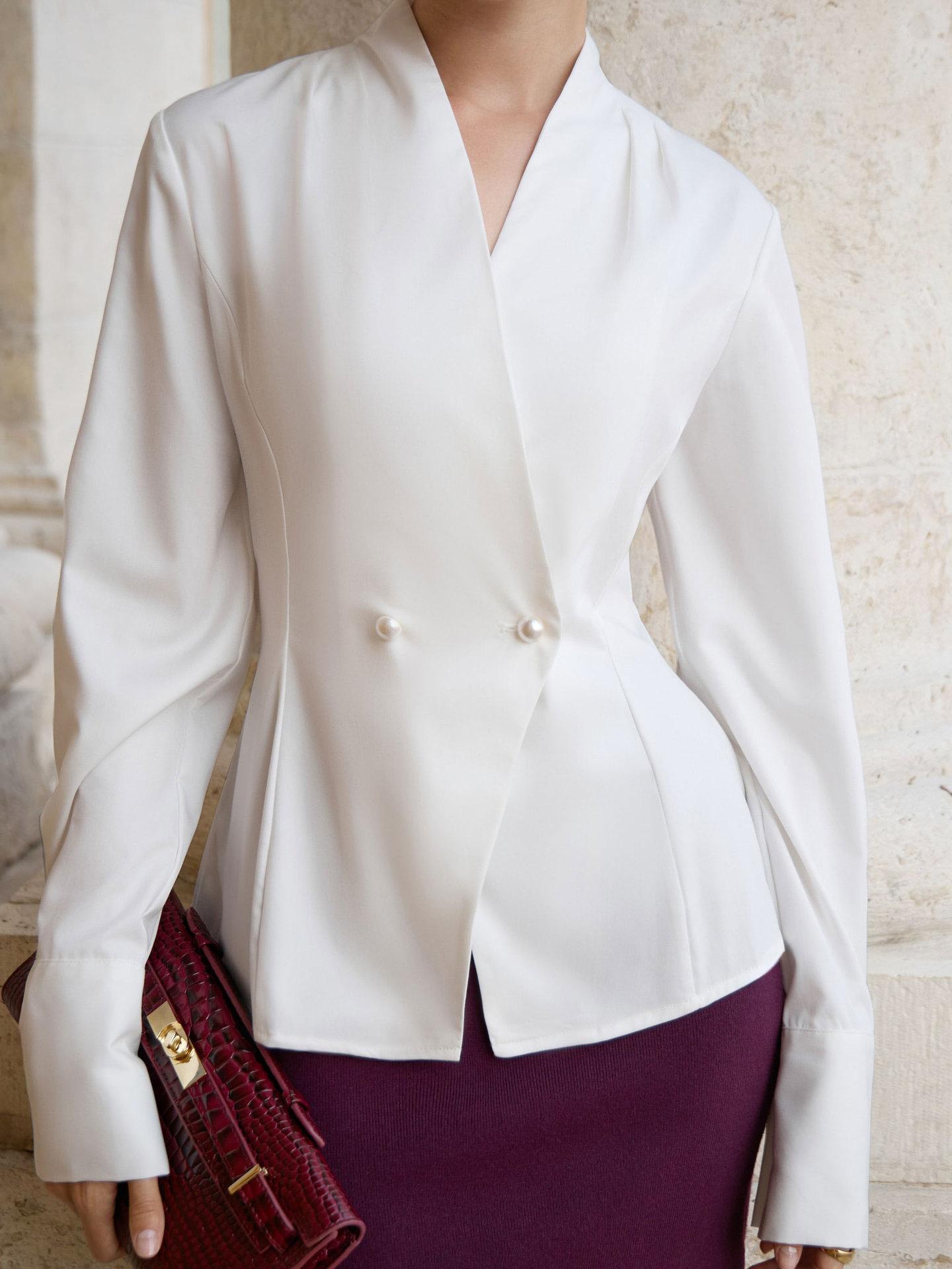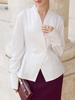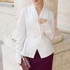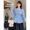 Sentido del diseño Camisa de cuello en V que ciñe la cintura para mujer otoño e invierno nuevo estilo simple versátil camisa ajustada temperamento commuter 2025 transfronterizo