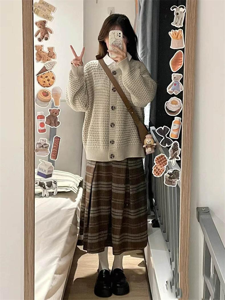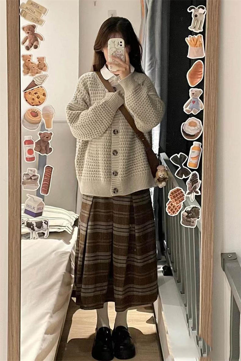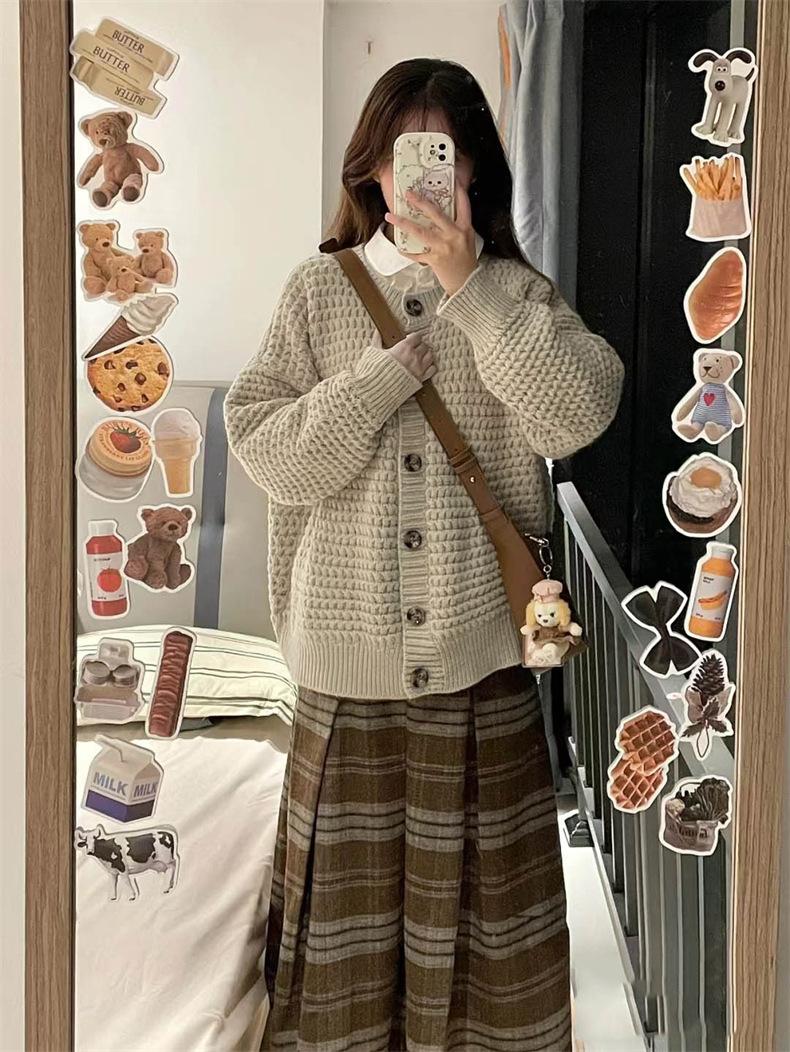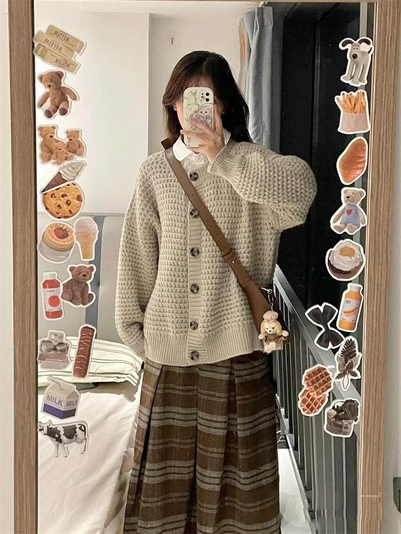 Cárdigan suéter abrigo para mujer otoño e invierno 2025 nuevo talla pequeña retro suave estilo coreano viento perezoso top engrosado