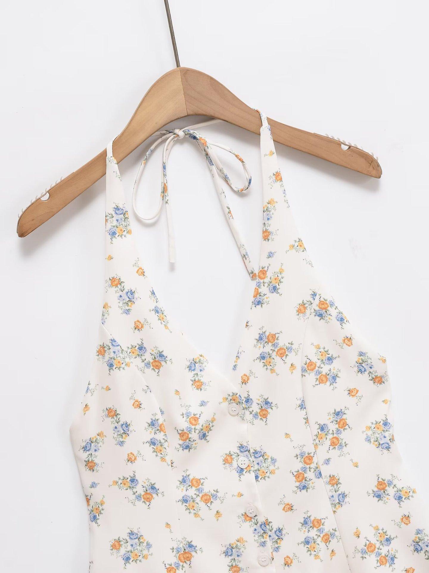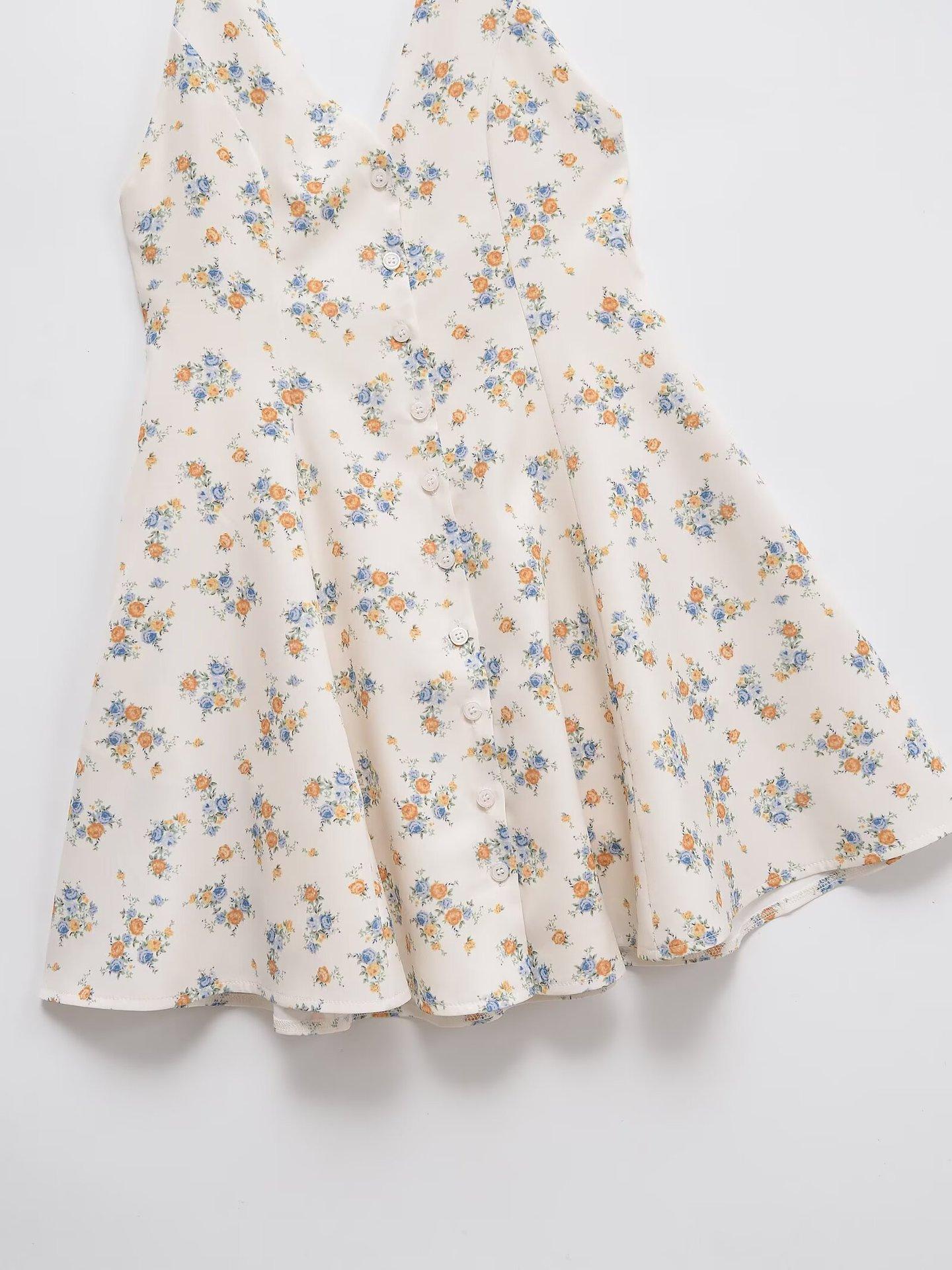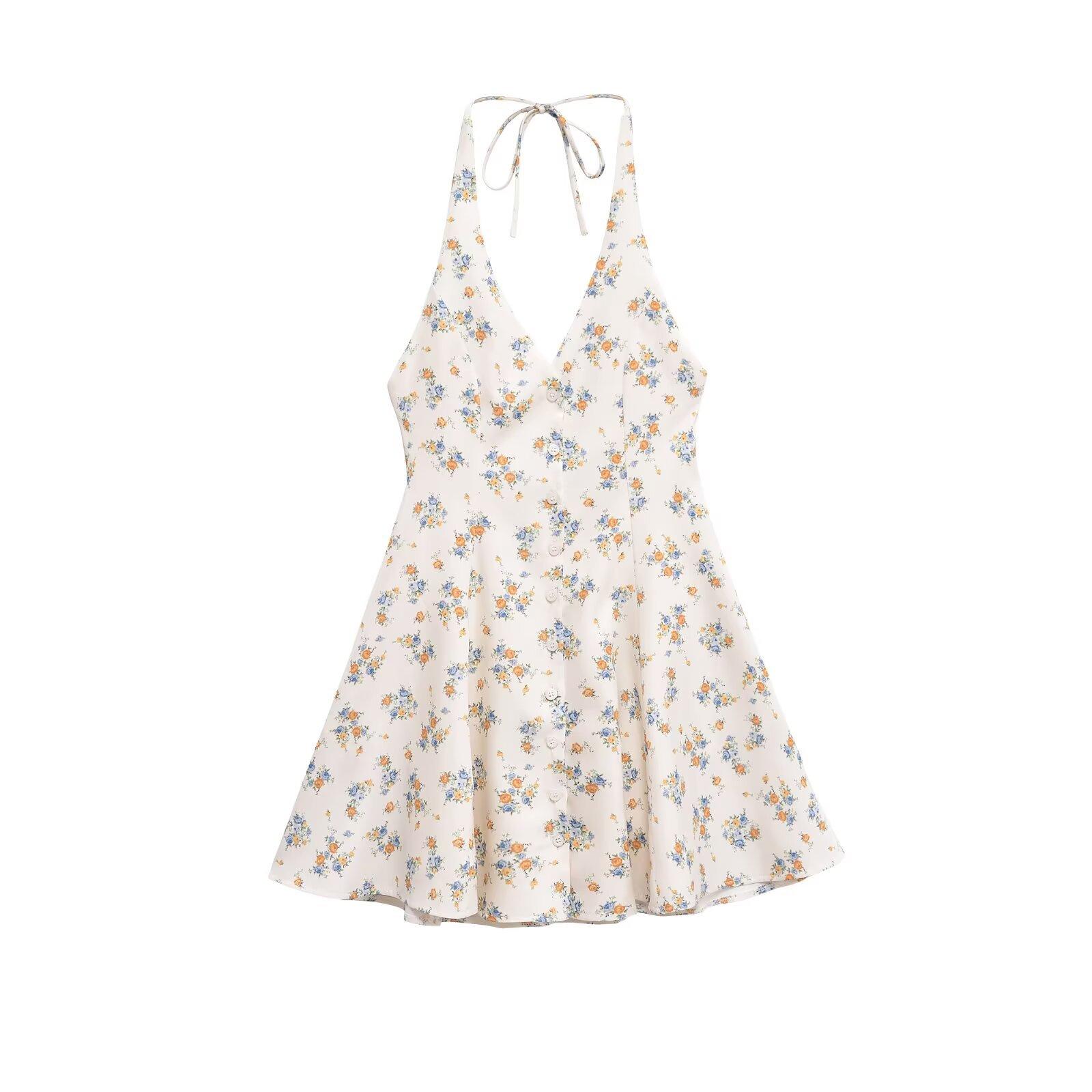 Ropa Europea y Americana Transfronteriza Vestido de Peto de Popelina con Estampado Floral Popular de Aliexpress