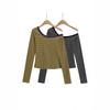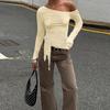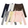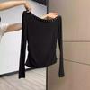 Sexy top de hombro descubierto de un hombro 2025 primavera estilo coreano clavícula expuesta color sólido camiseta básica de manga larga para mujer