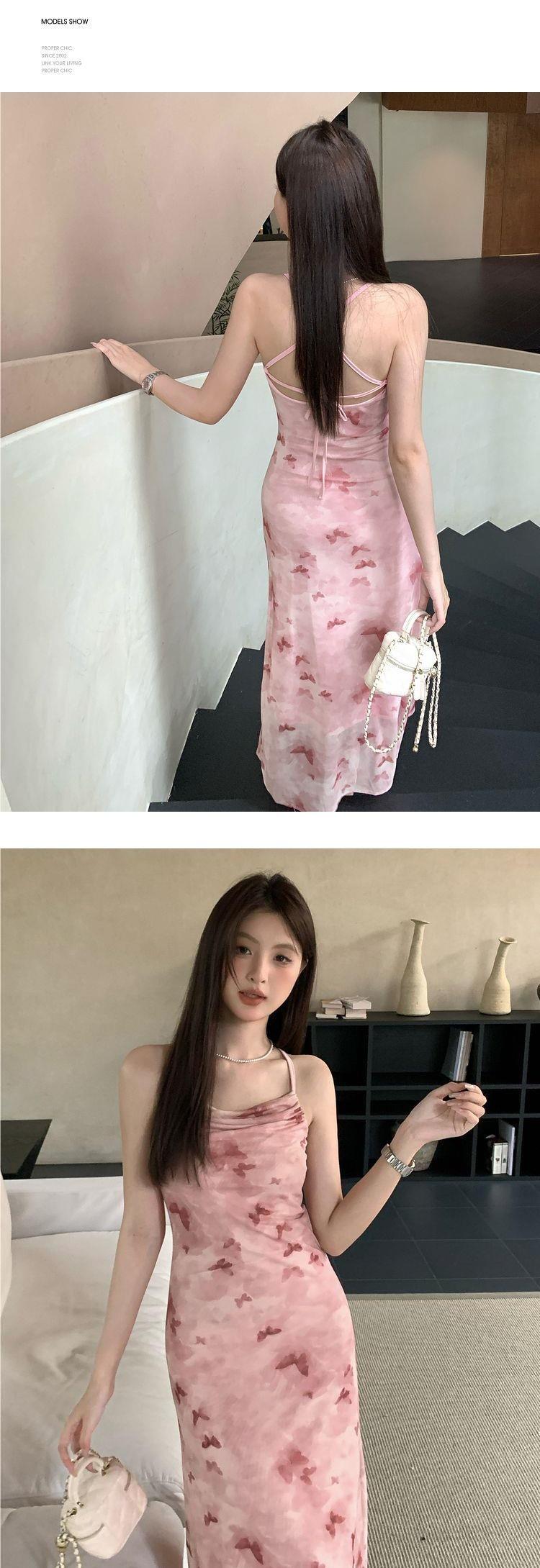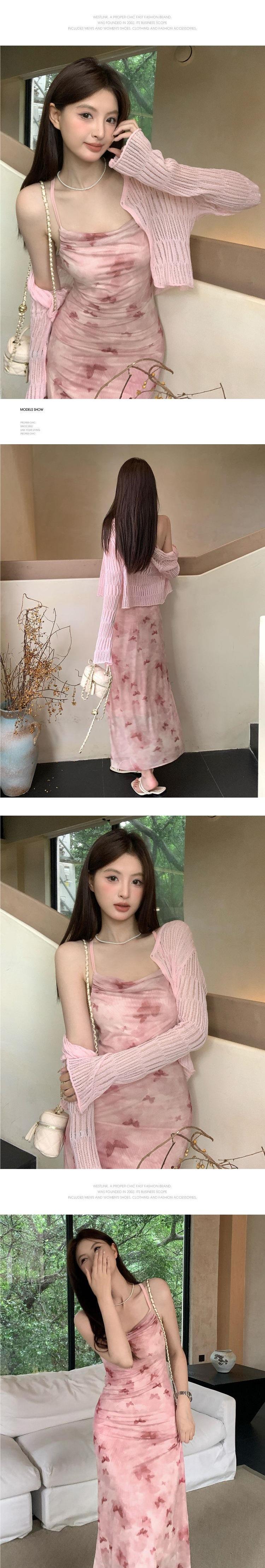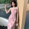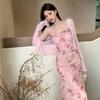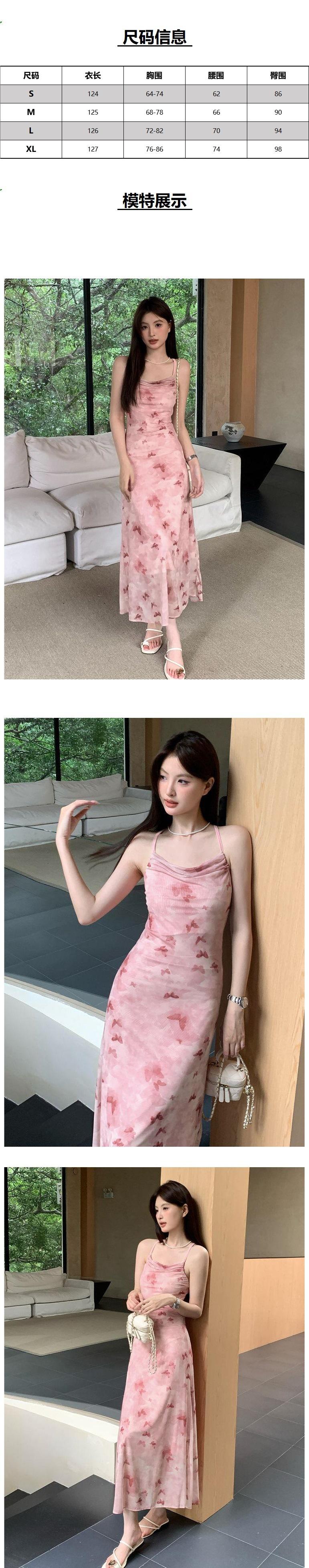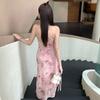 Chic coreano francés suave vacaciones ombre malla corte slim cuello cowl dulce tirantes finos cola de pez vestido de vacaciones mujeres