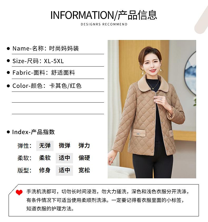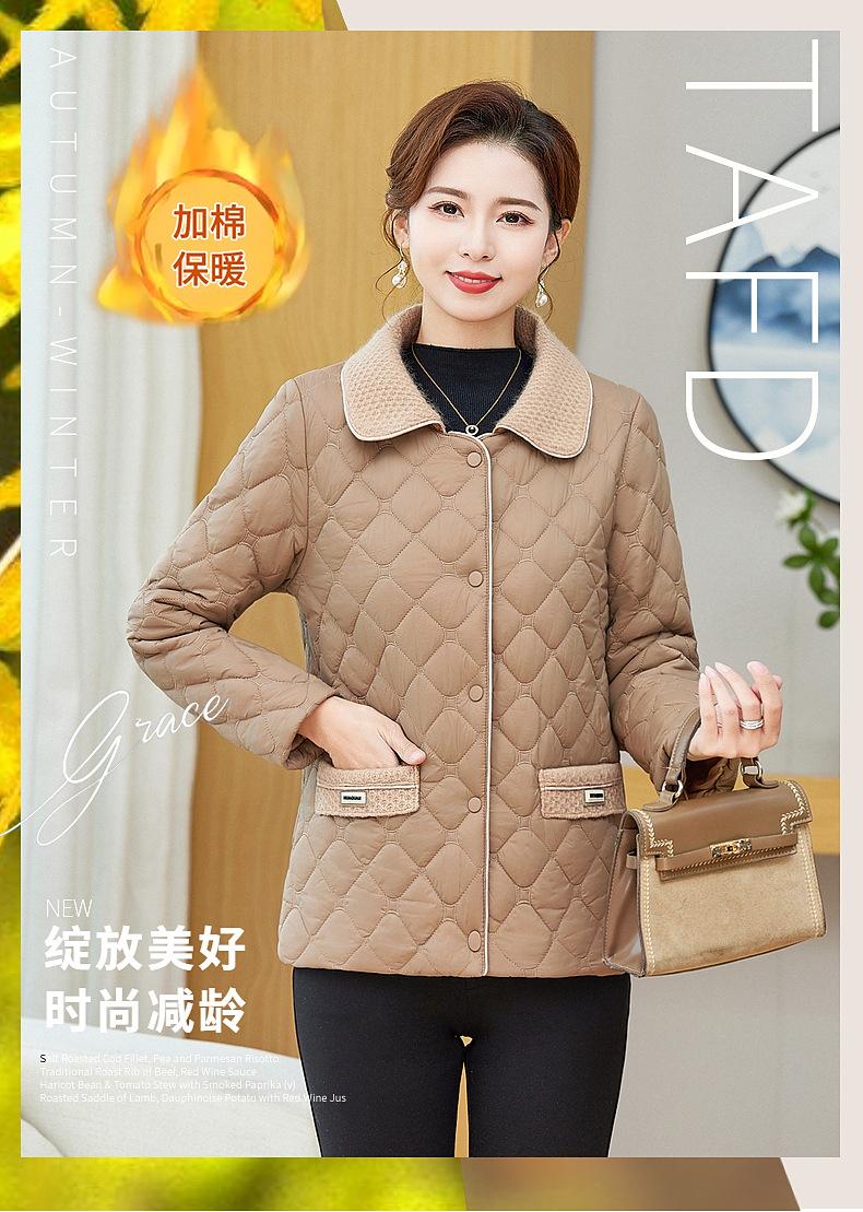 Chaqueta Acolchada de Algodón con Solapa para Otoño e Invierno para Mamá Ropa de Moda para Mujeres de Mediana Edad de Cuarenta a Cincuenta Años Chaqueta Acolchada de Algodón Abrigo Corto Cálido