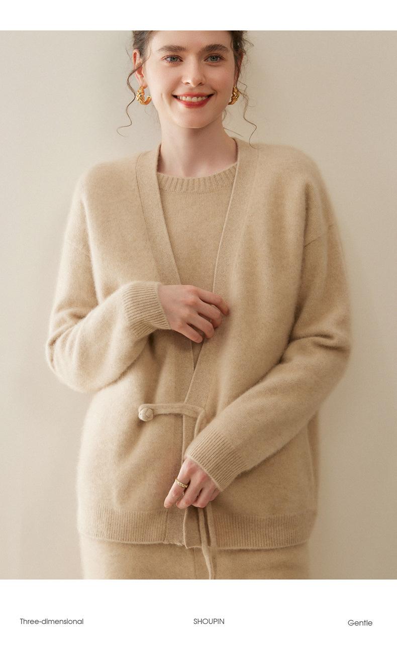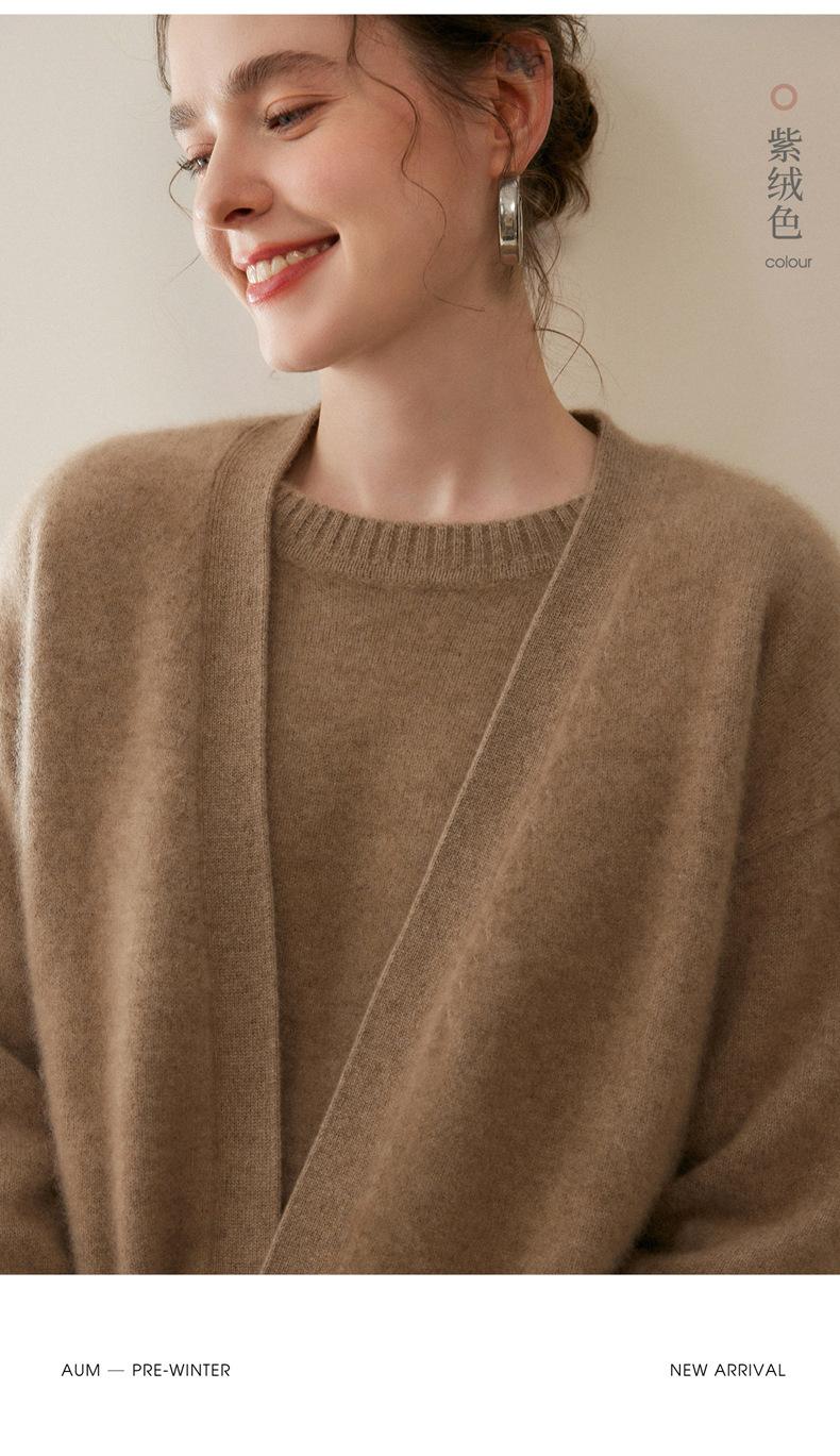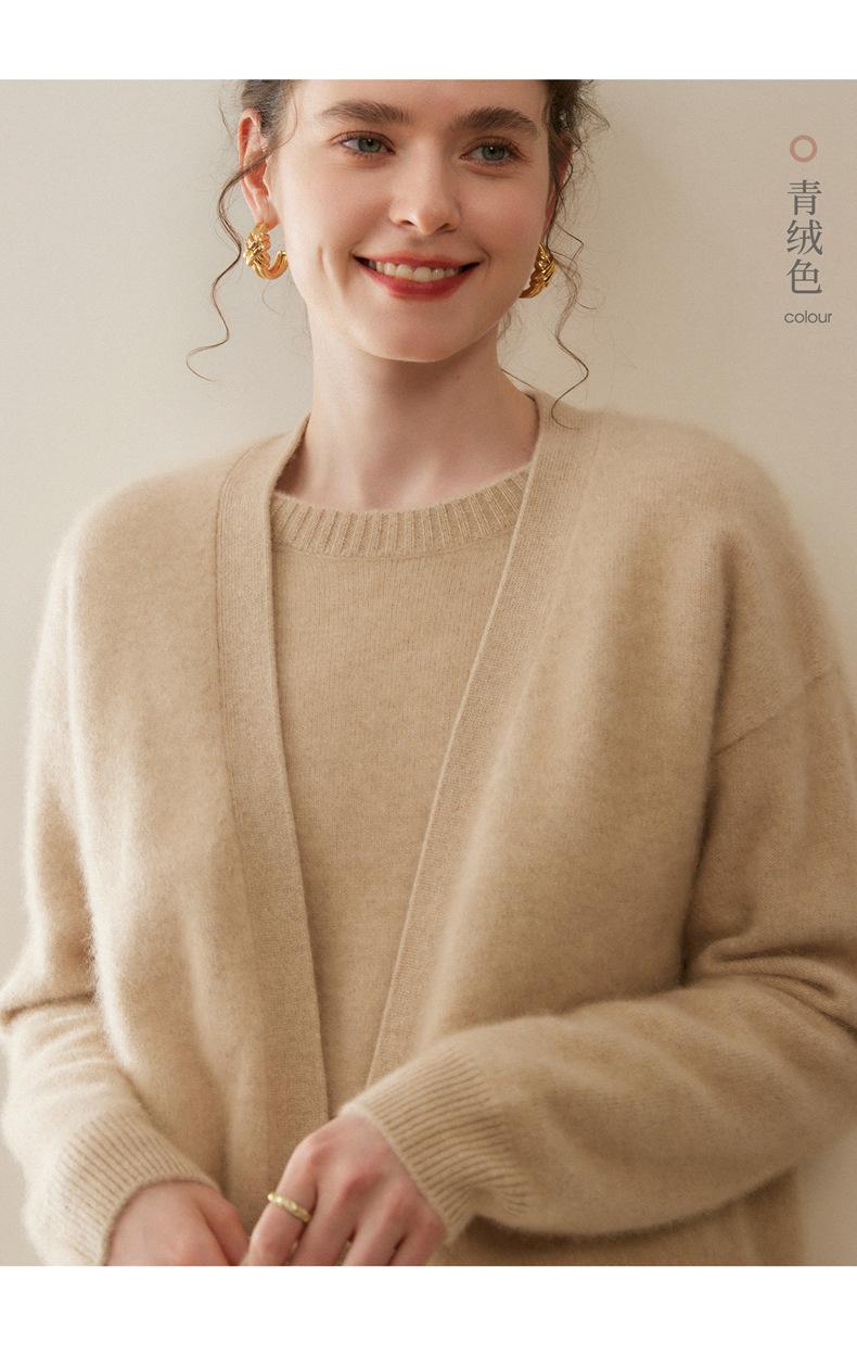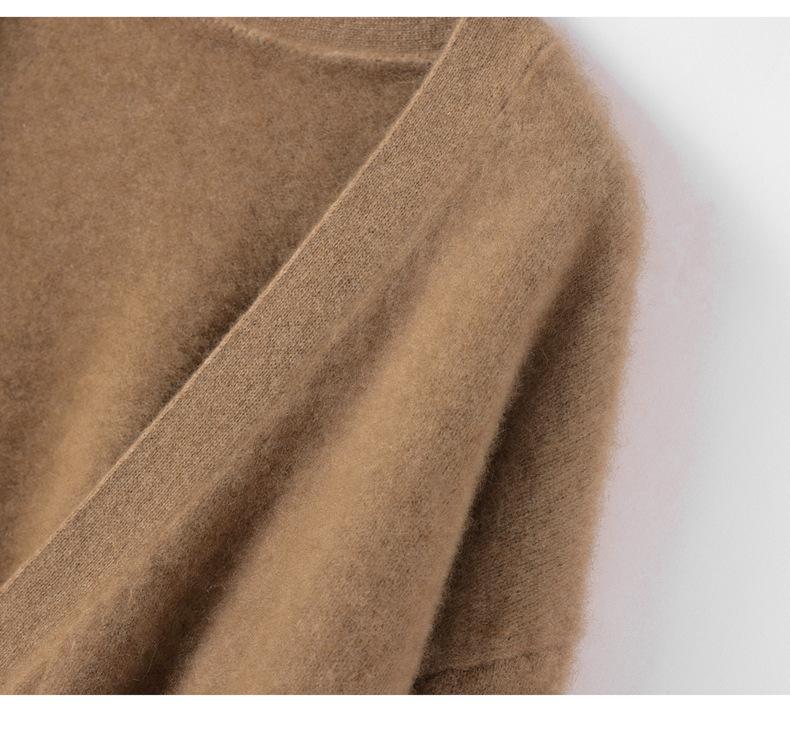 Nuevo Otoño/Invierno Cárdigan de Punto 100% Cachemira Pura para Mujer Manga Larga Suéter Holgado Pan Manga Larga Suéter de Punto Grueso