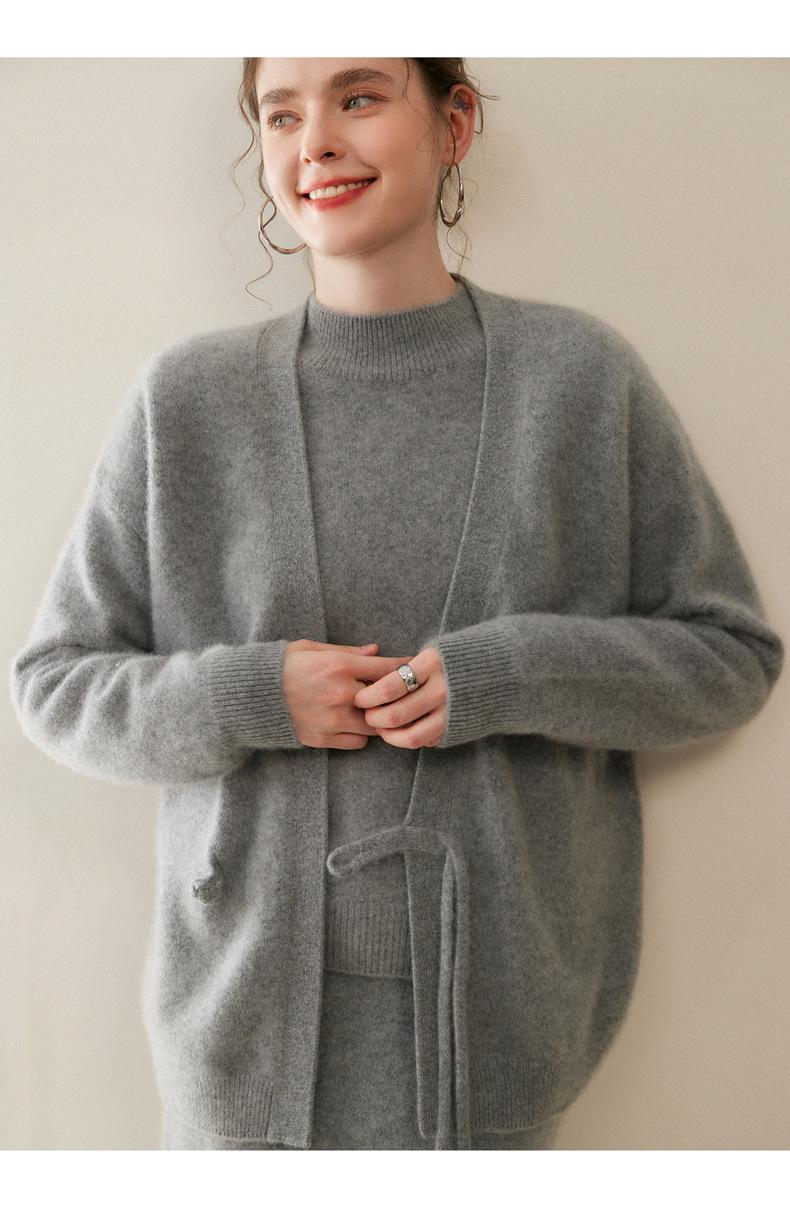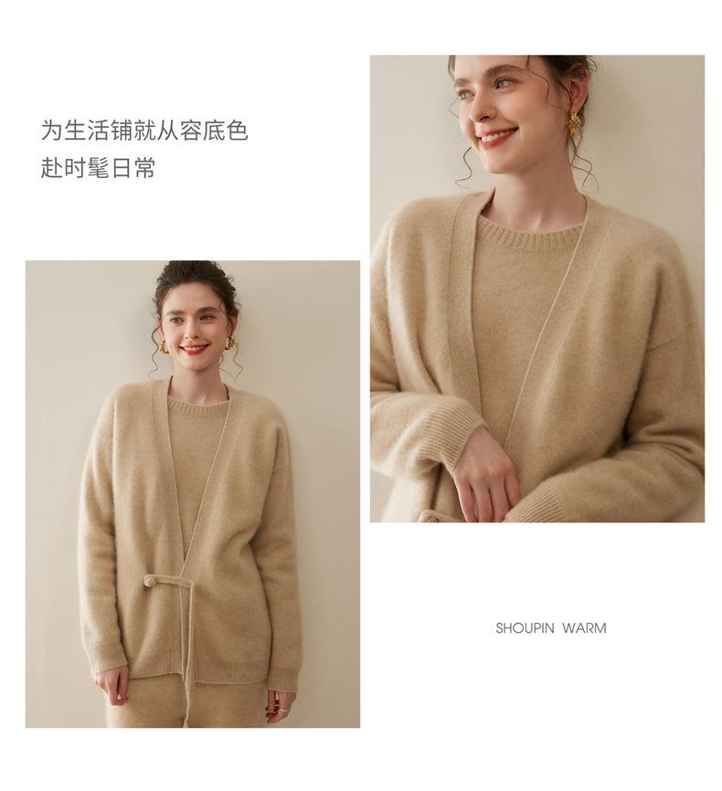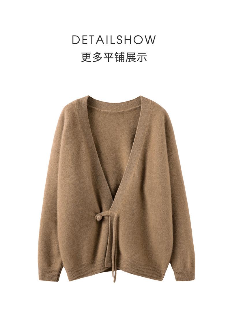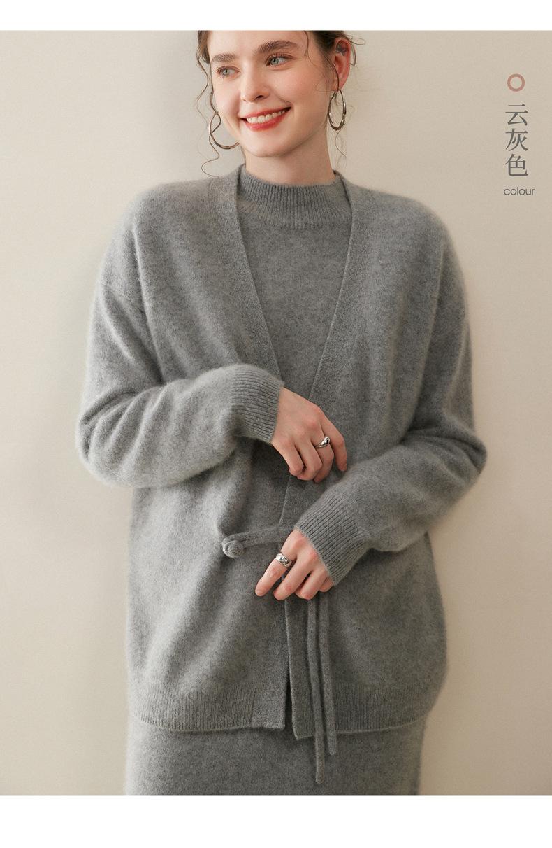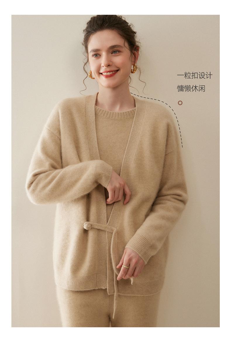 Nuevo Otoño/Invierno Cárdigan de Punto 100% Cachemira Pura para Mujer Manga Larga Suéter Holgado Pan Manga Larga Suéter de Punto Grueso