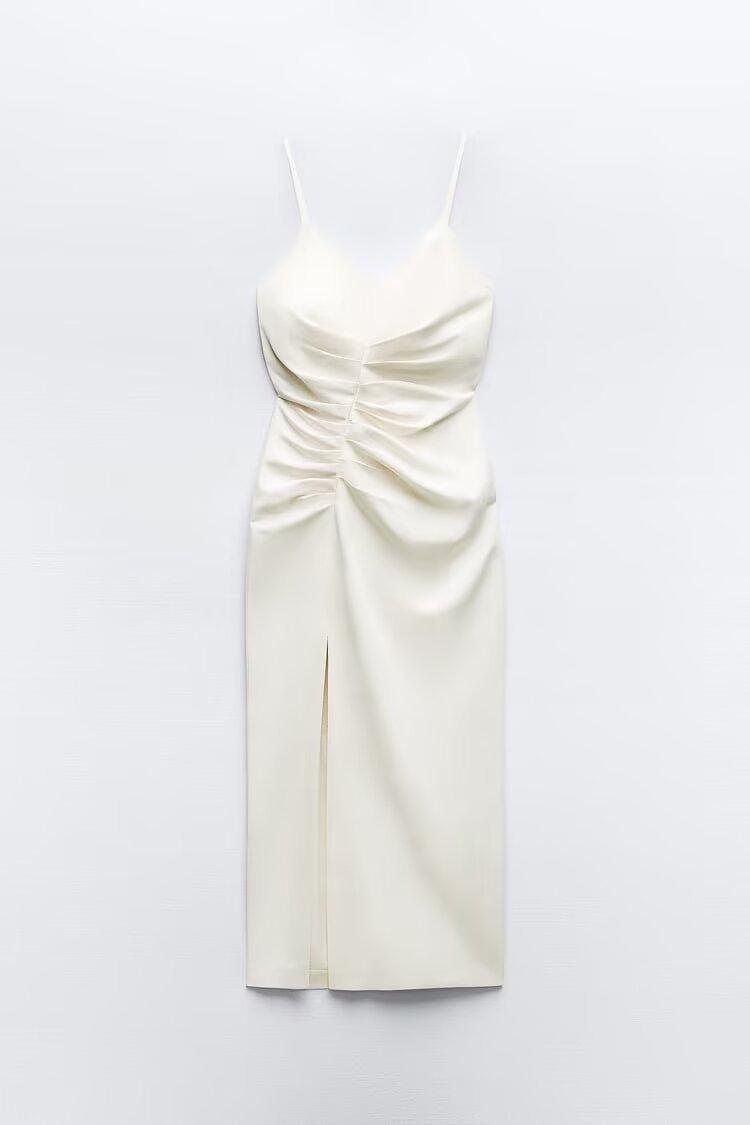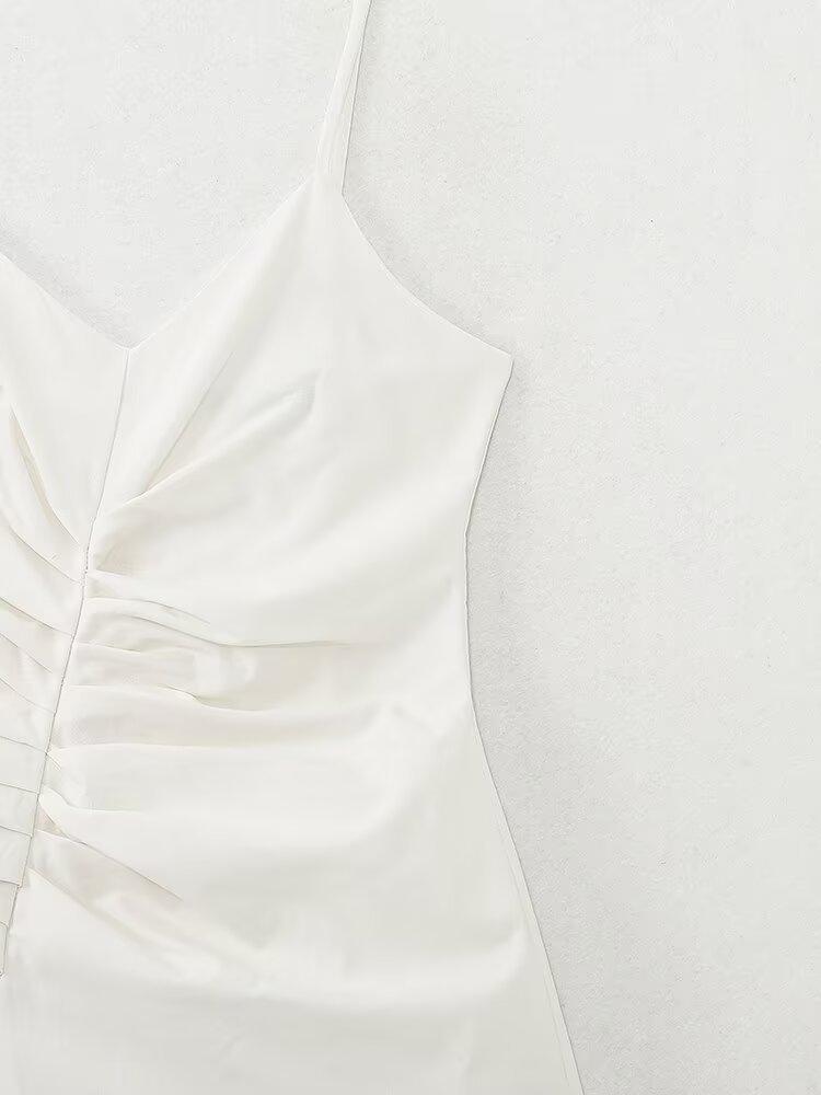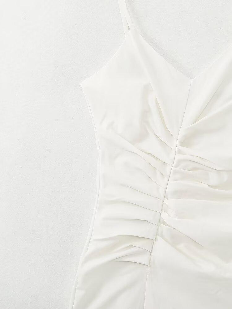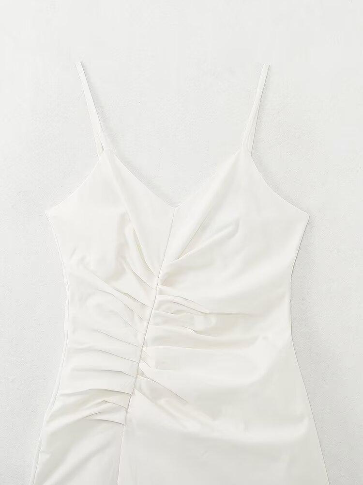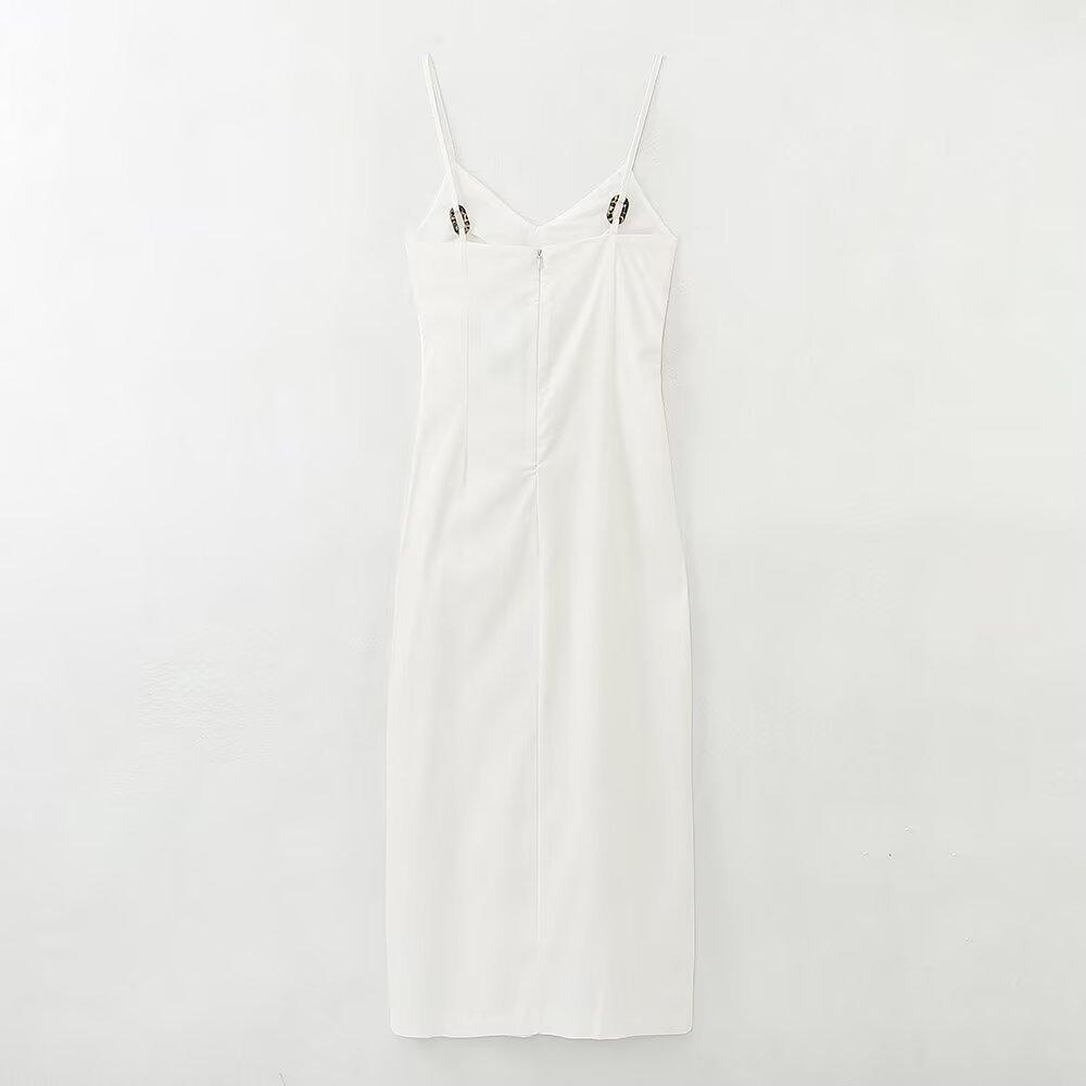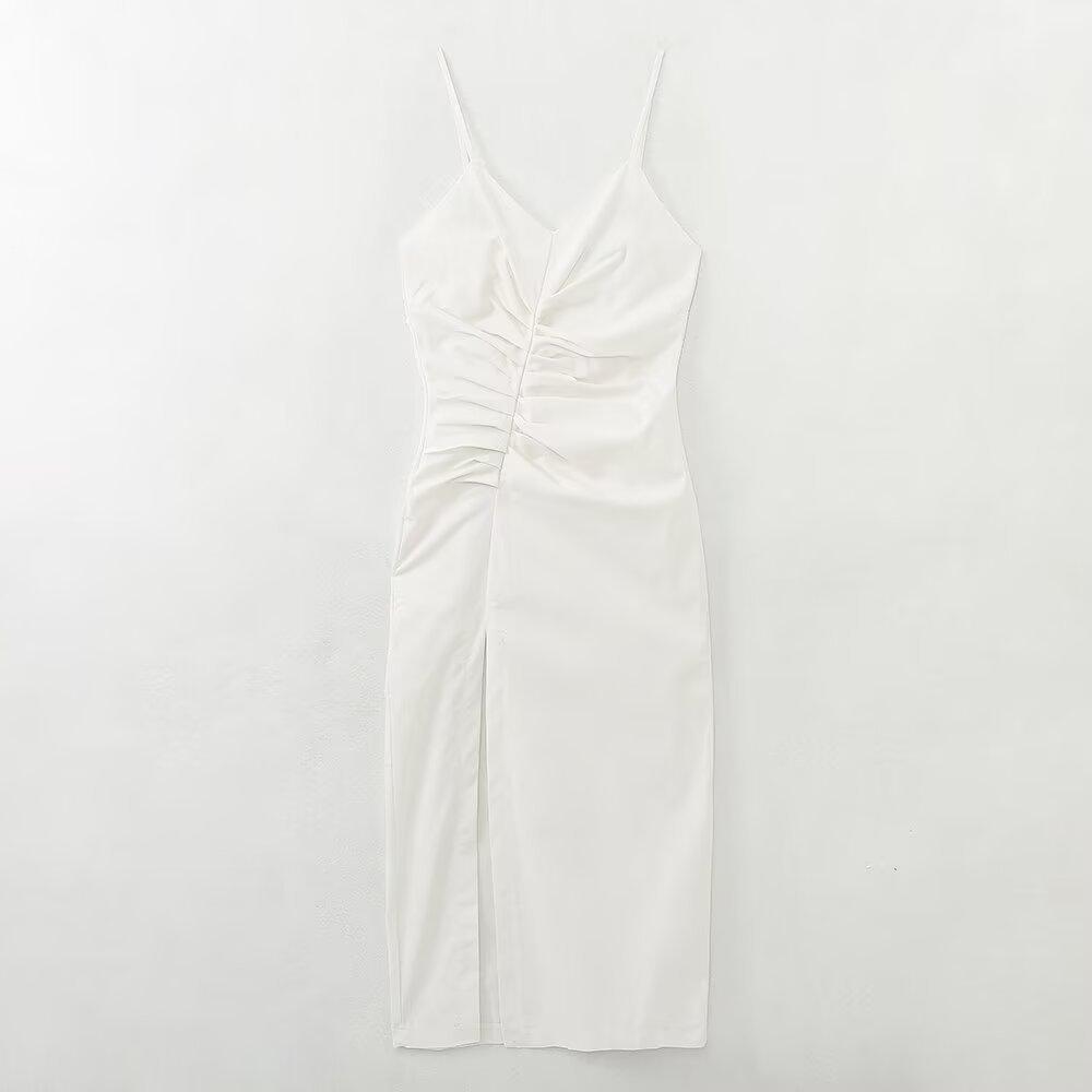 Estilo Europeo y Americano Transfronterizo Ropa de Mujer de Comercio Exterior Aliexpress Zr Nuevo Vestido Midi Estilo Íntimo Decorativo Plisado