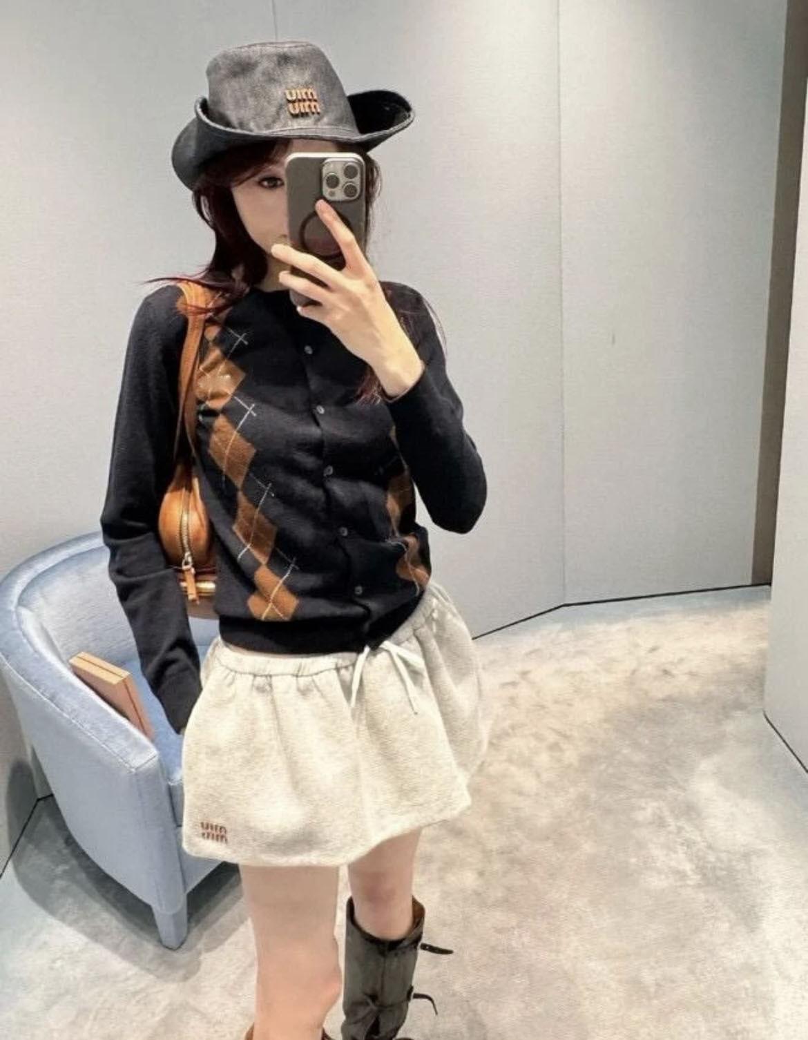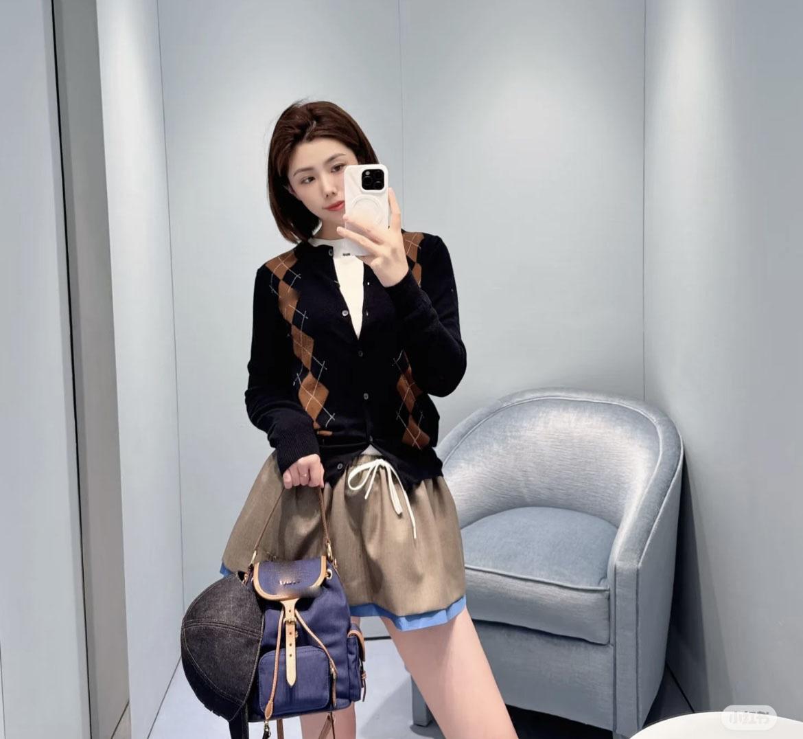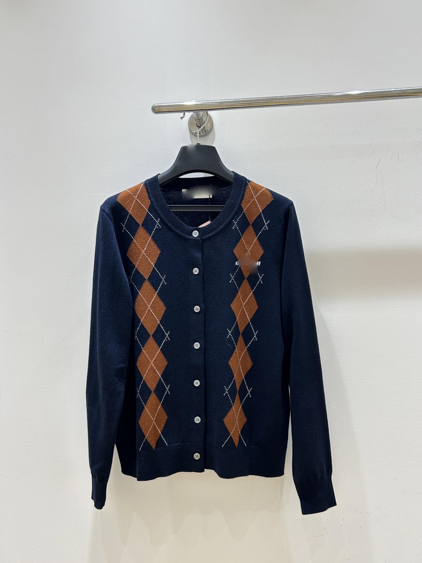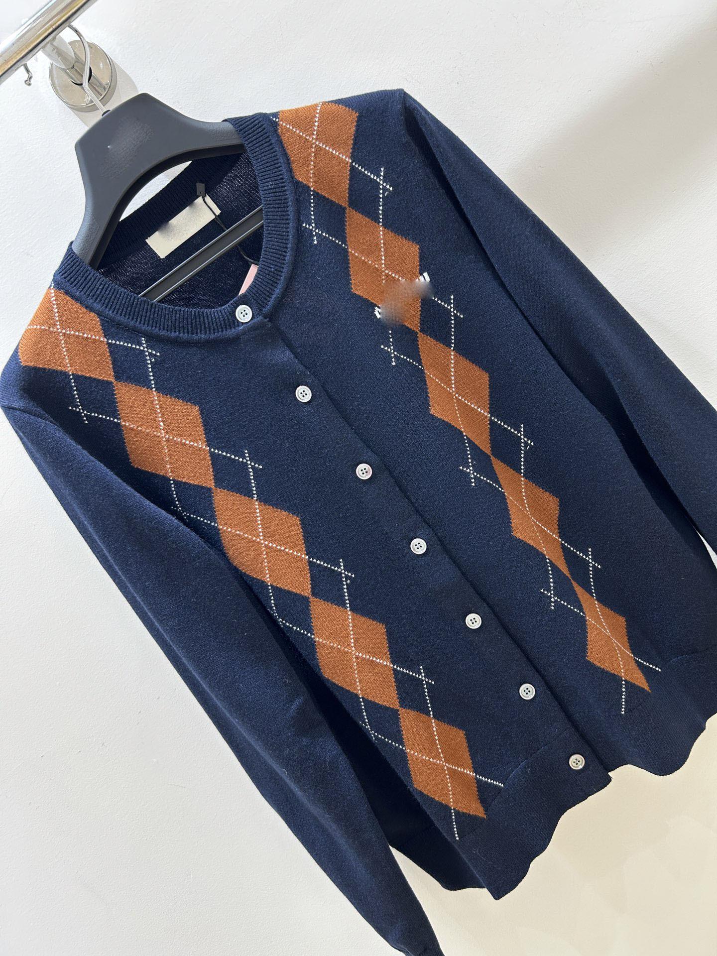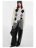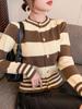 Suéter de Mujer Nanyou M House 25 Otoño Temprano Verano Nuevo Bloque de Color Retro Argyle Casual Manga Larga Cuello Redondo Tejido Suéter de Mujer