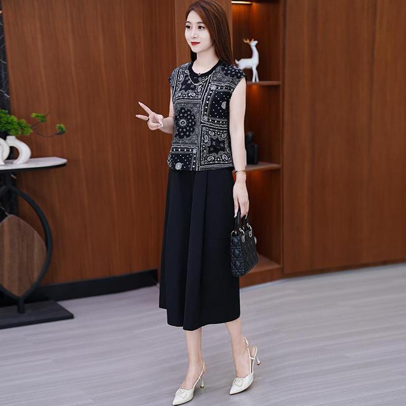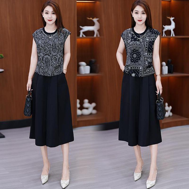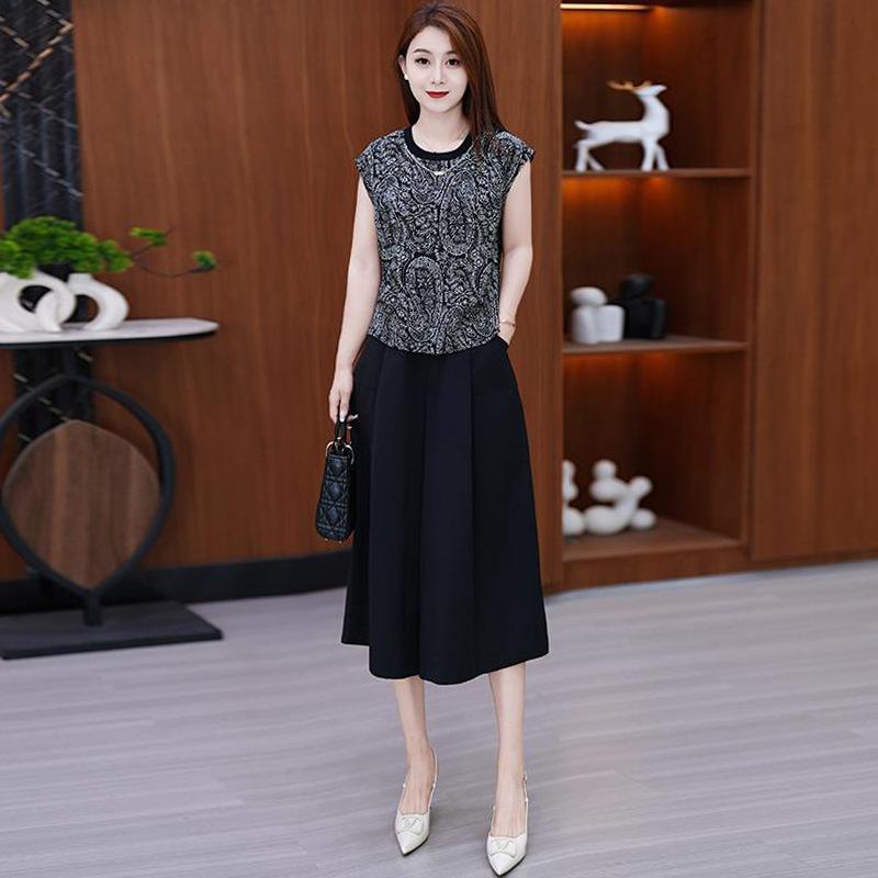 Traje Casual de Moda para Mujer 2025 Verano Nuevo Elegante Reductor de Edad Adelgazante Top sin Mangas y Falda Recortada Conjunto de Dos Piezas