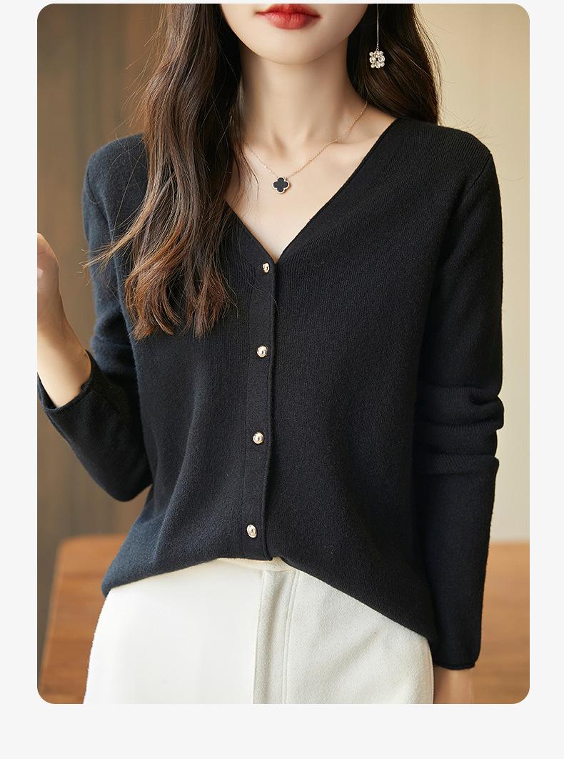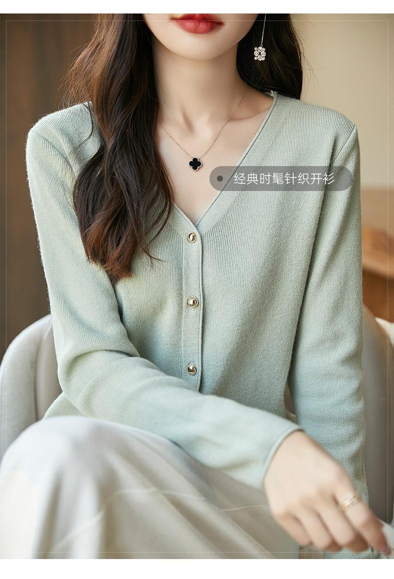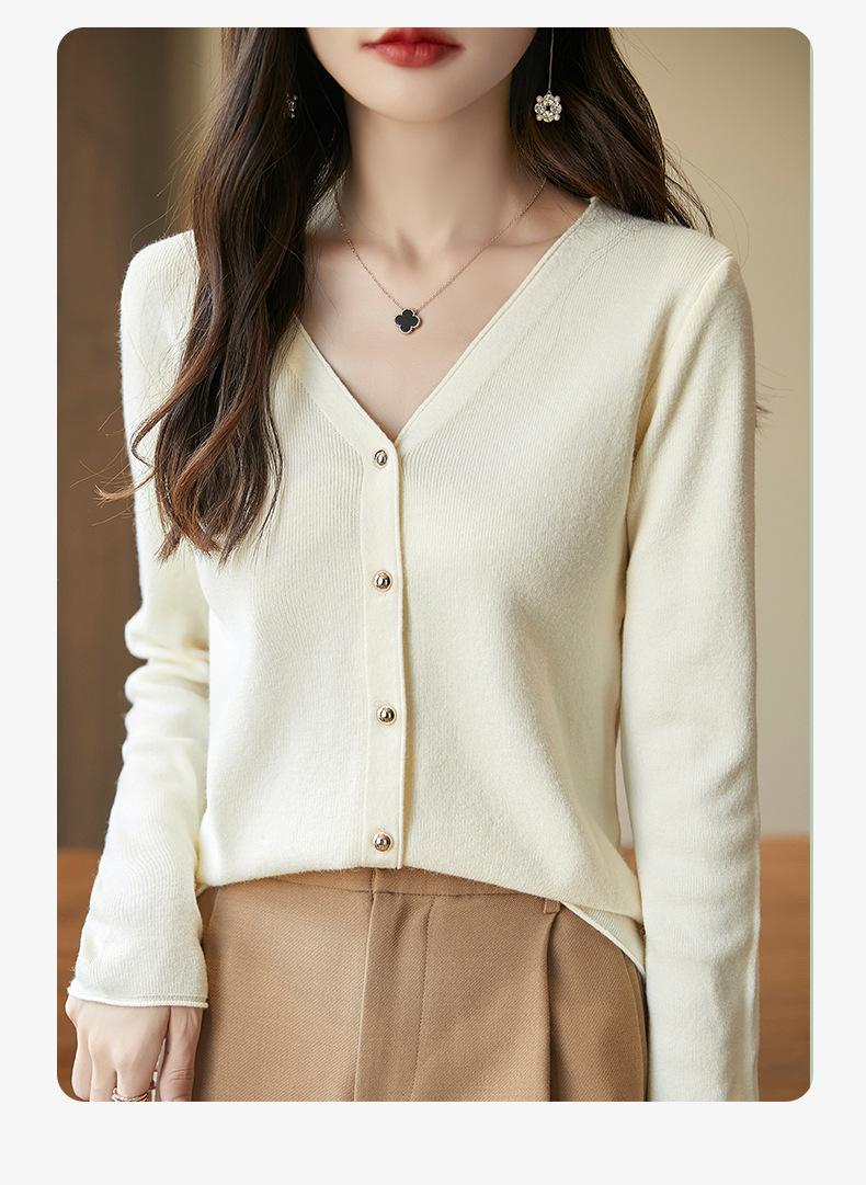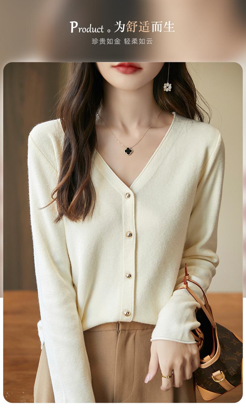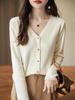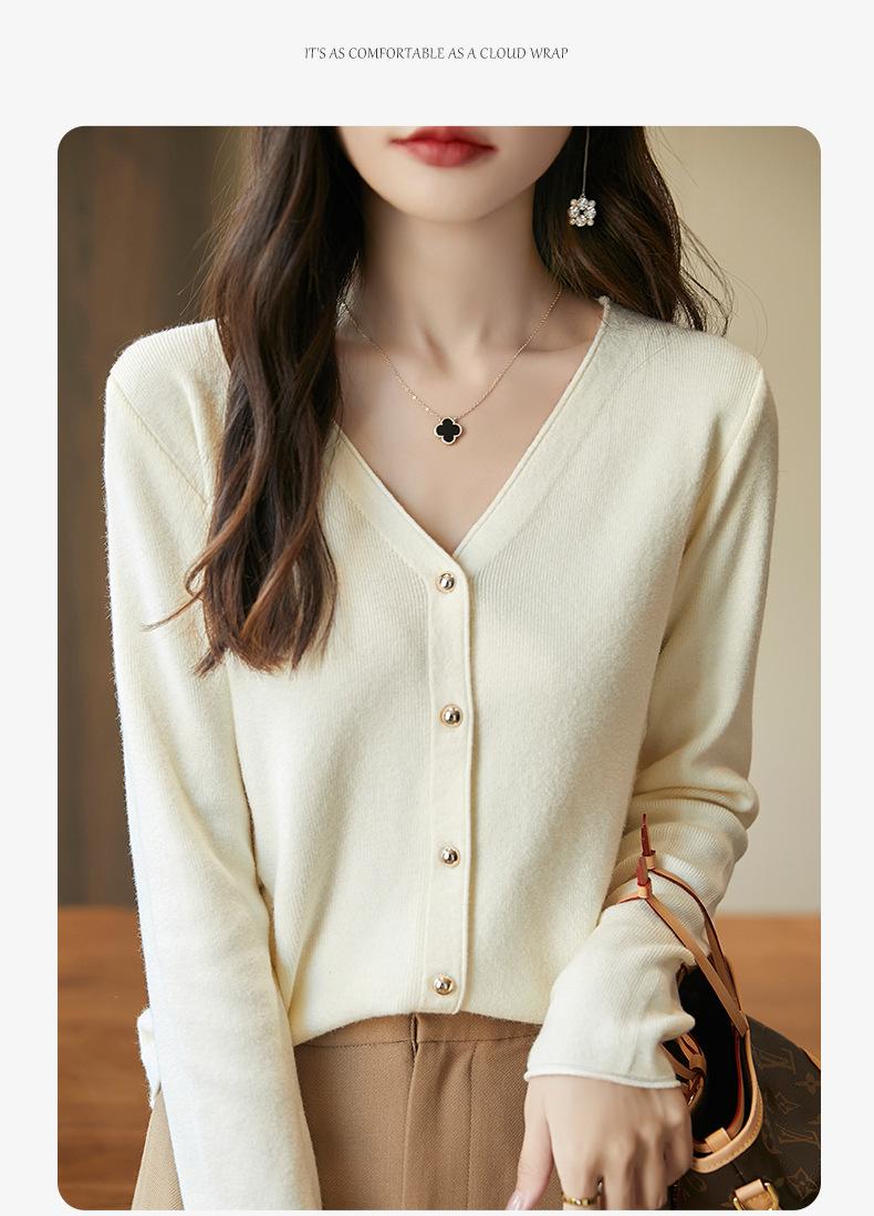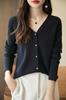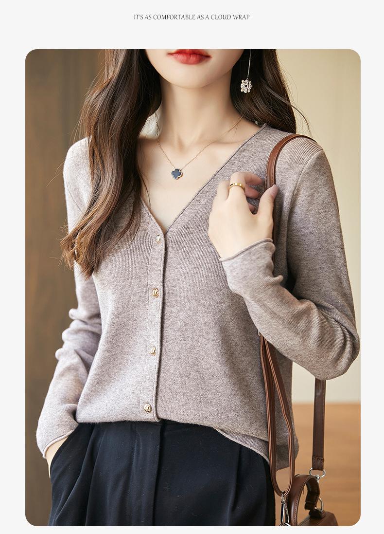 Nuevo Cárdigan Versátil de Cuello en V para Mujer para Otoño/Invierno, Diseño de Volantes, Prendas Exteriores Tejidas Resistentes a las Arrugas, Suéter Delgado Holgado al Mayoreo