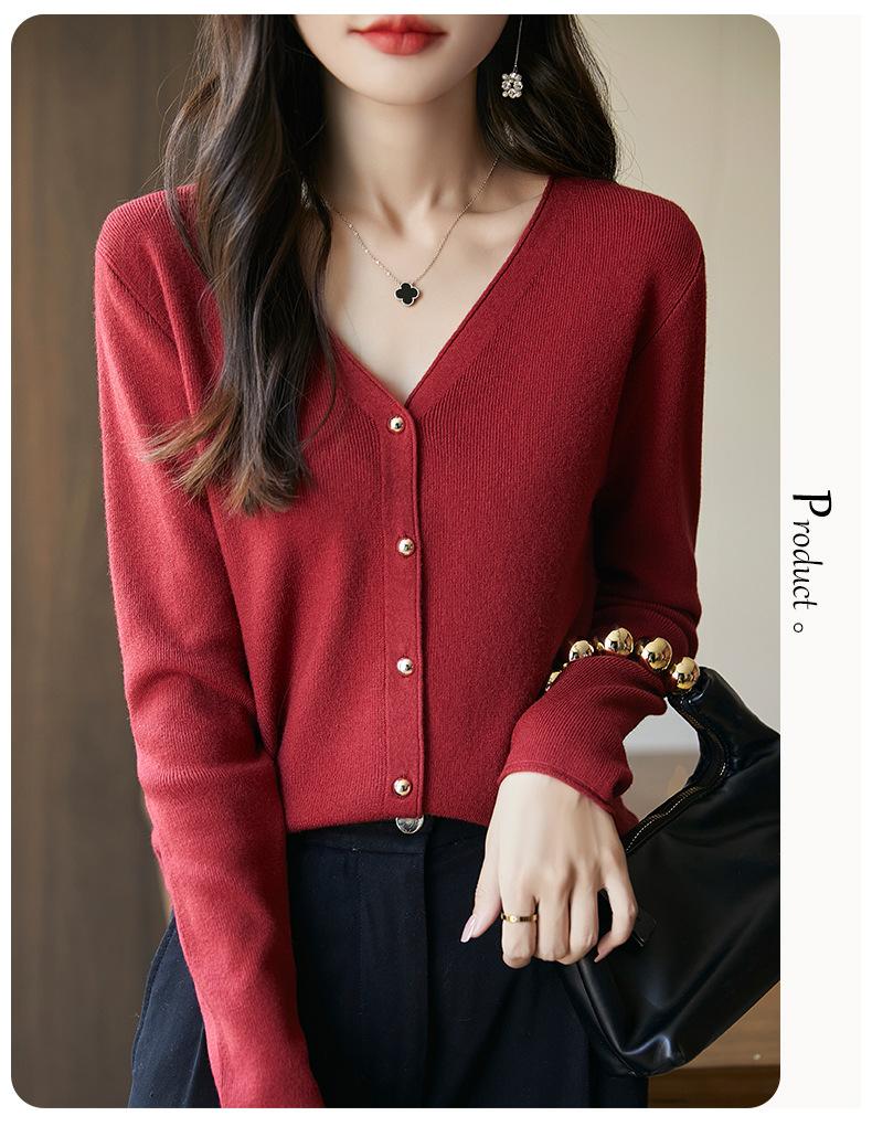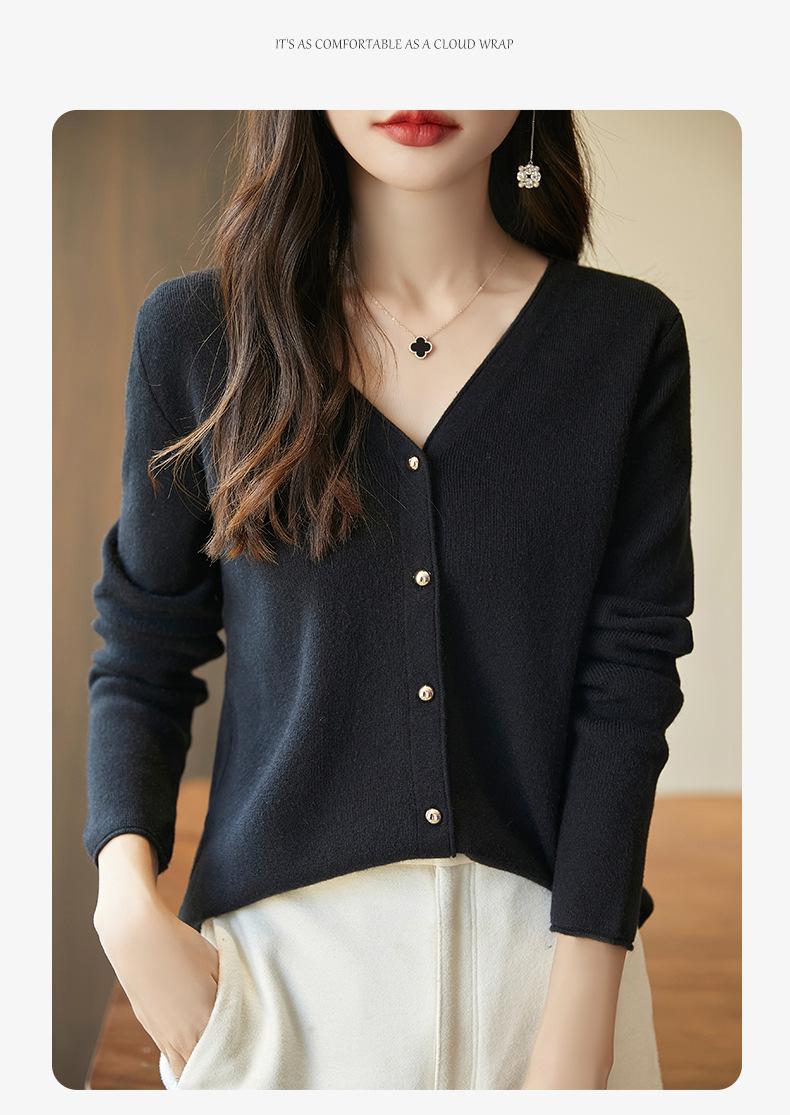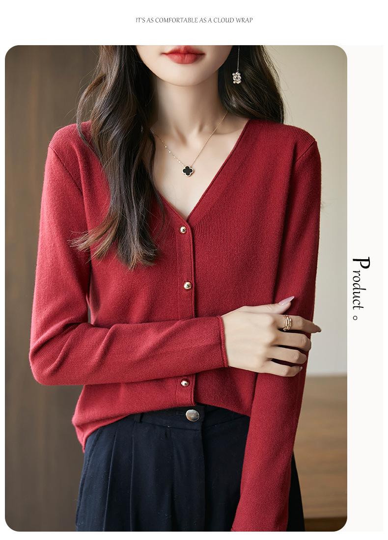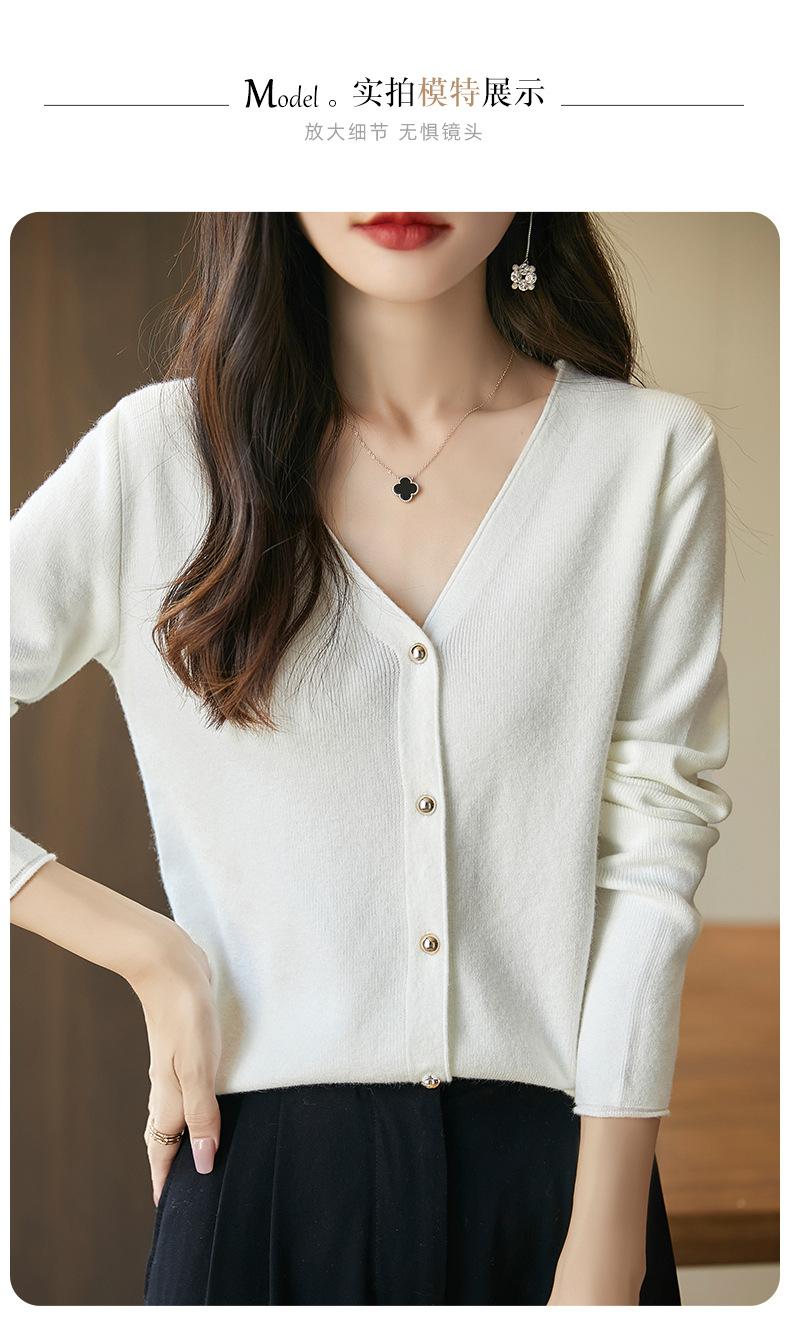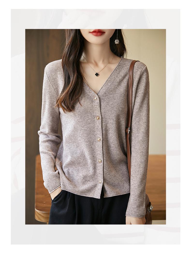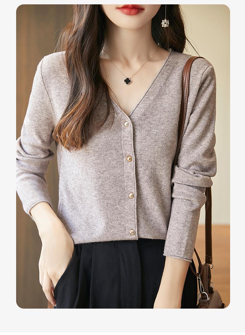 Nuevo Cárdigan Versátil de Cuello en V para Mujer para Otoño/Invierno, Diseño de Volantes, Prendas Exteriores Tejidas Resistentes a las Arrugas, Suéter Delgado Holgado al Mayoreo