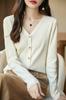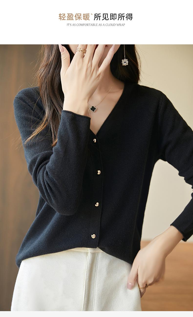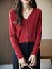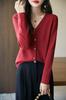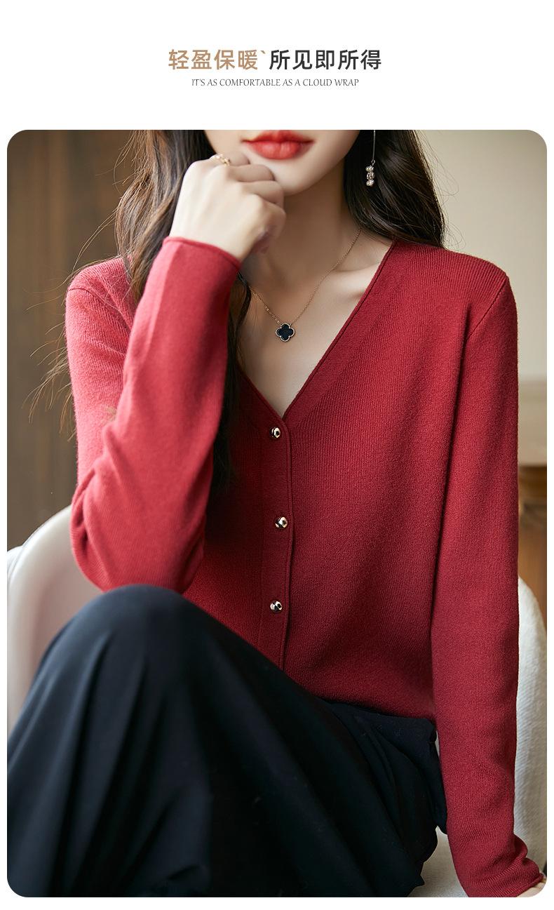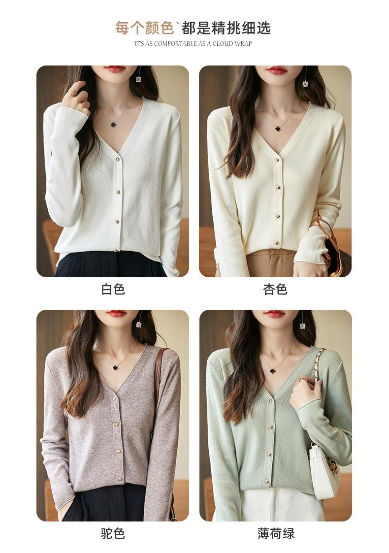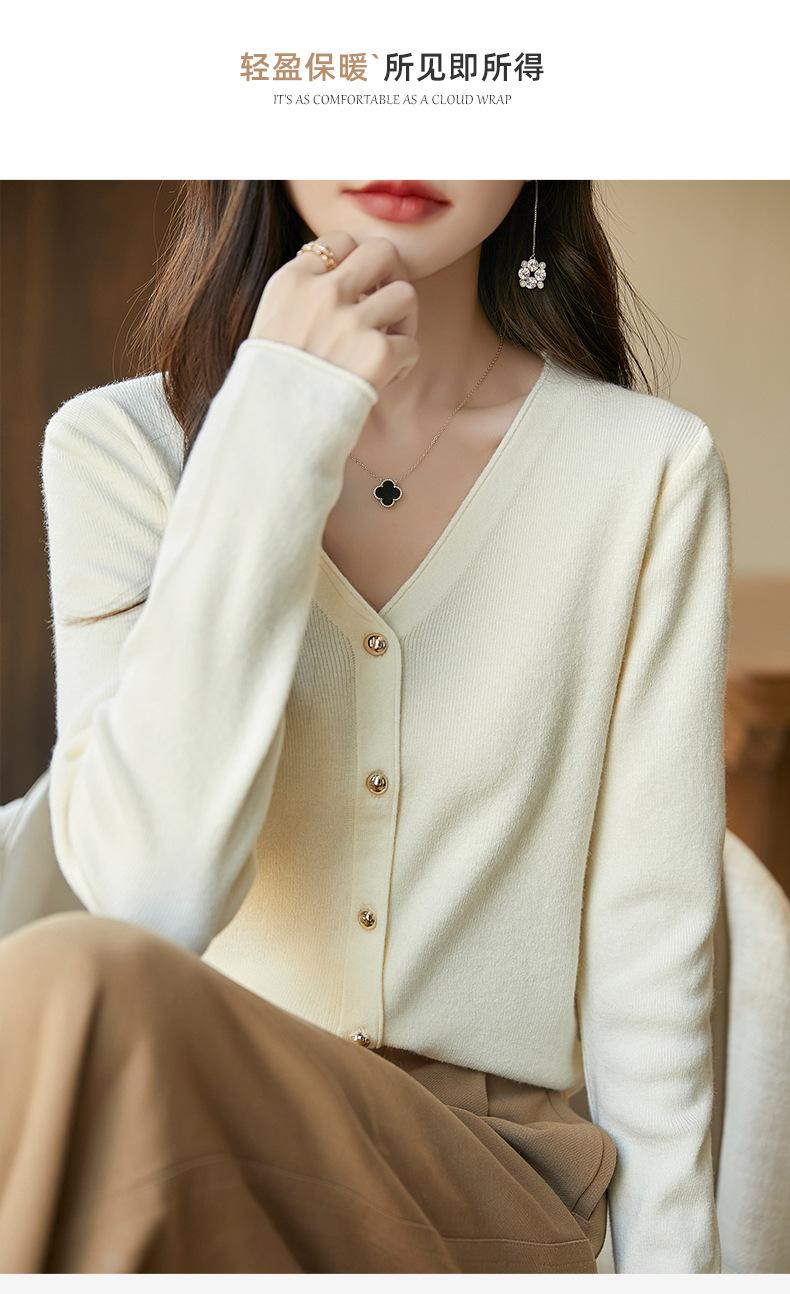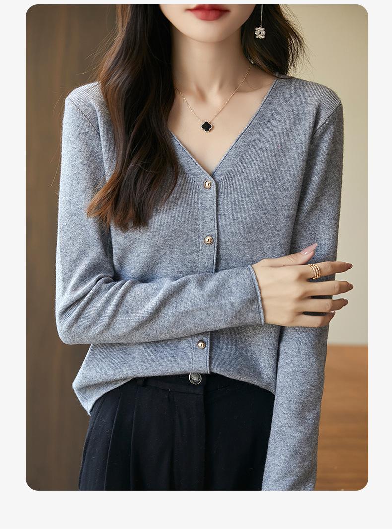 Nuevo Cárdigan Versátil de Cuello en V para Mujer para Otoño/Invierno, Diseño de Volantes, Prendas Exteriores Tejidas Resistentes a las Arrugas, Suéter Delgado Holgado al Mayoreo