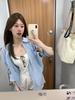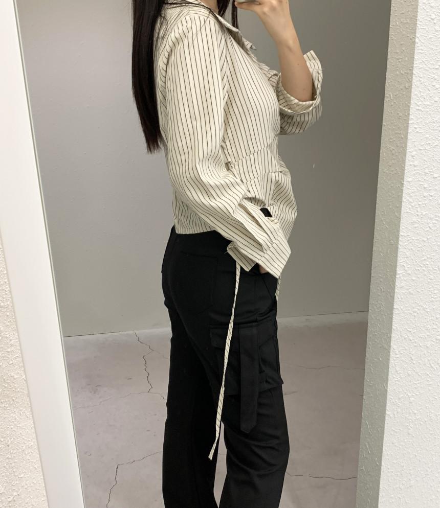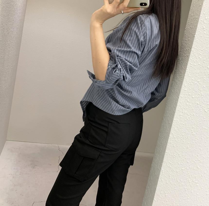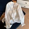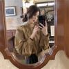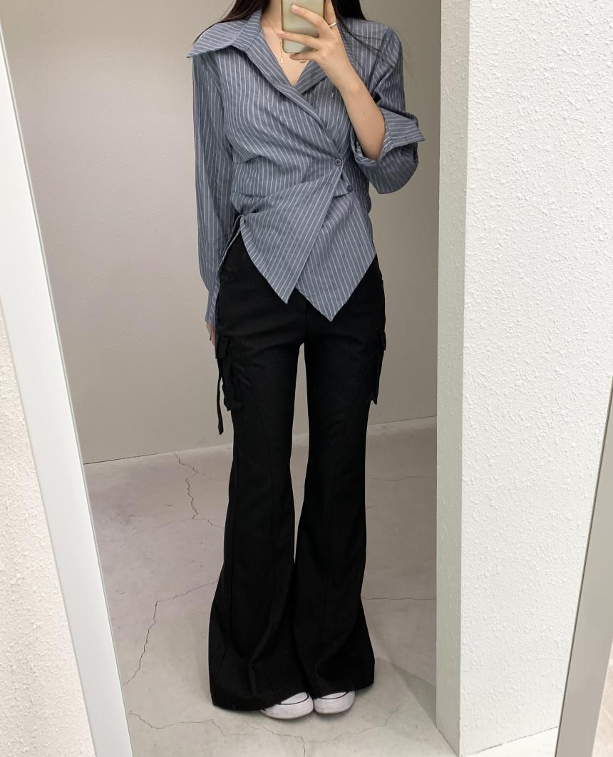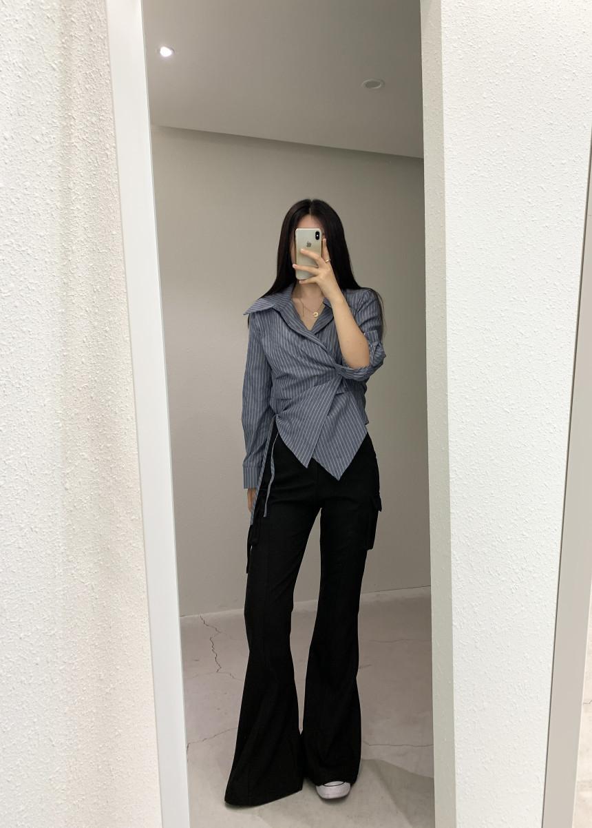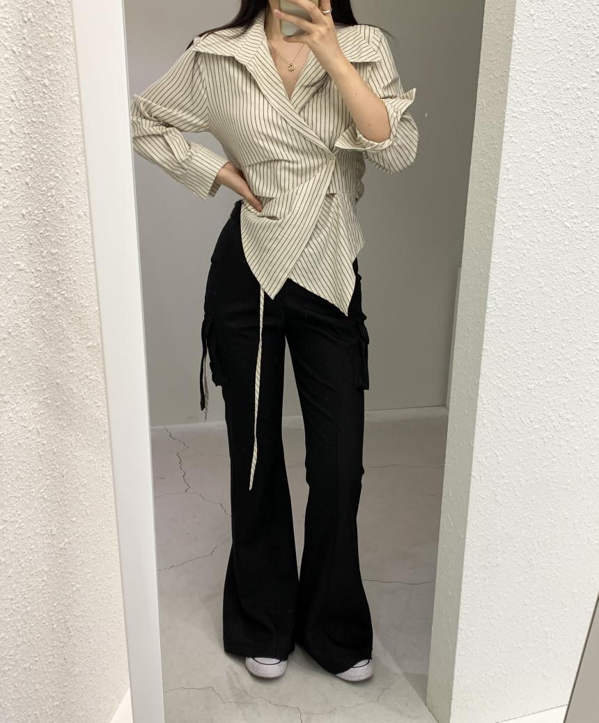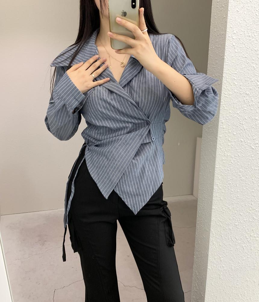 Otoño 2025 Nuevo Diseño Coreano Solapa Tapeta Diagonal Camisa de Una Pieza Rayada Irregular Top de Mujer