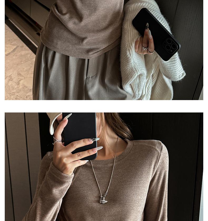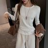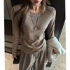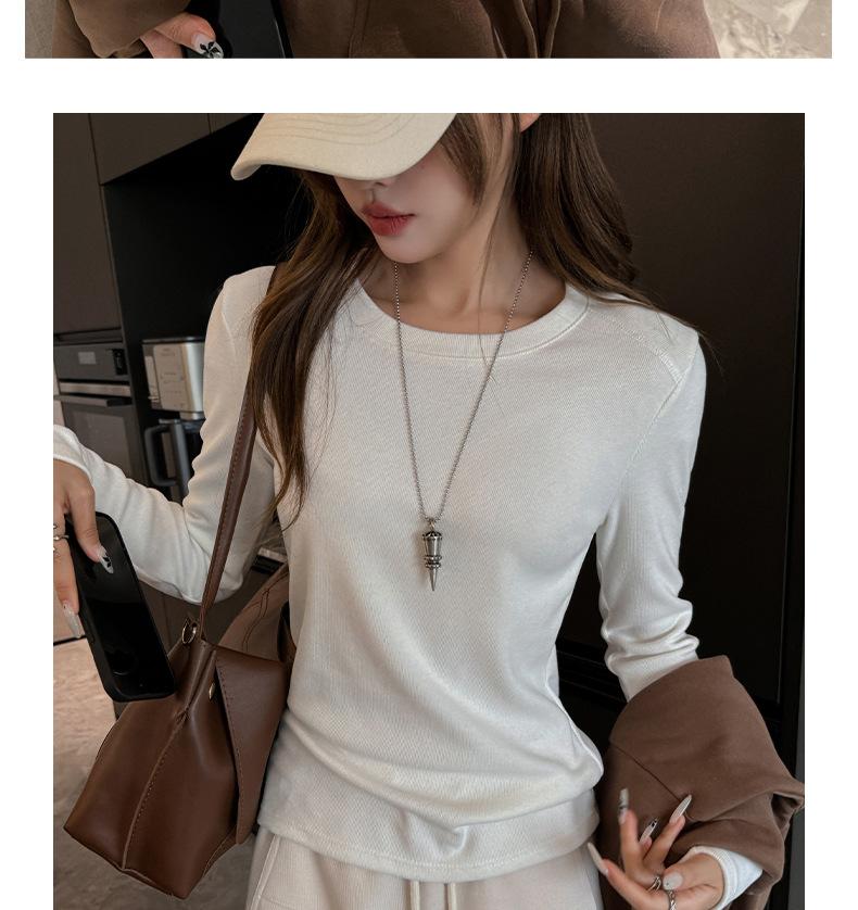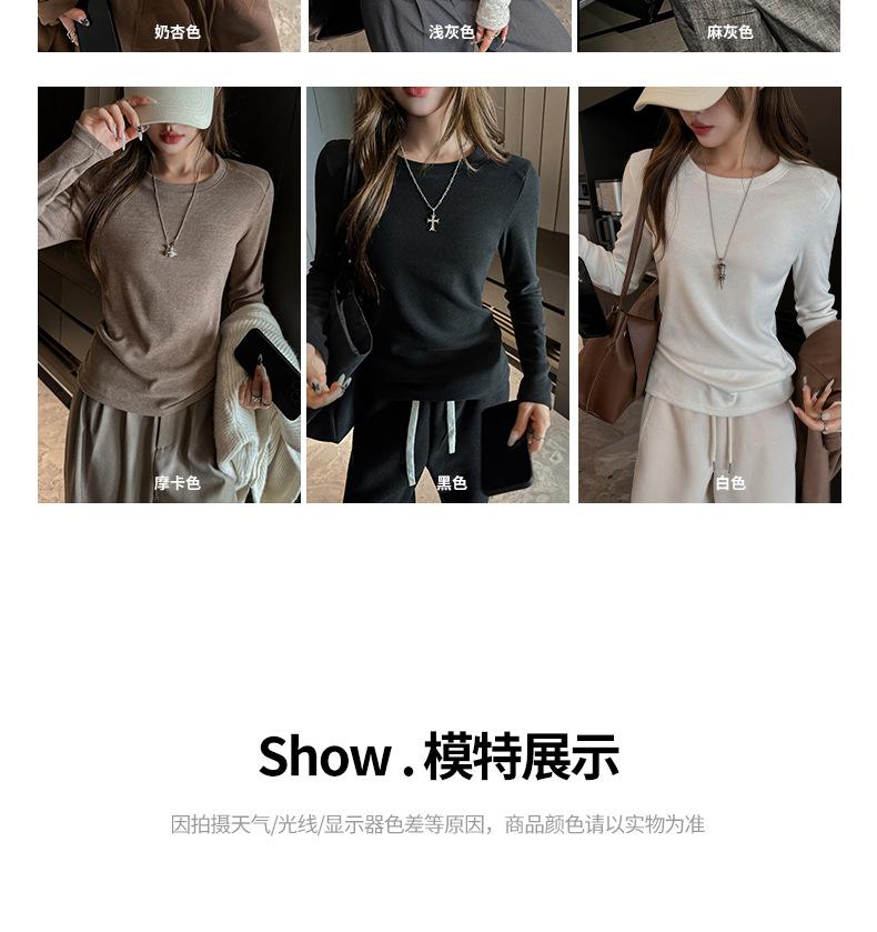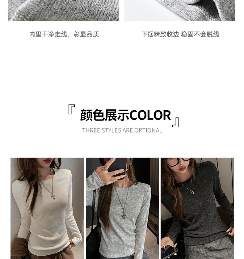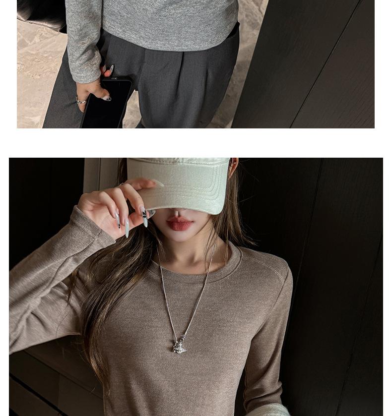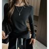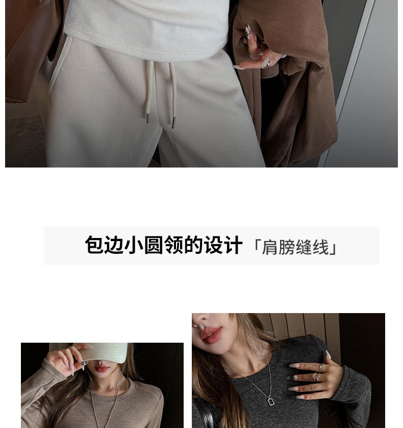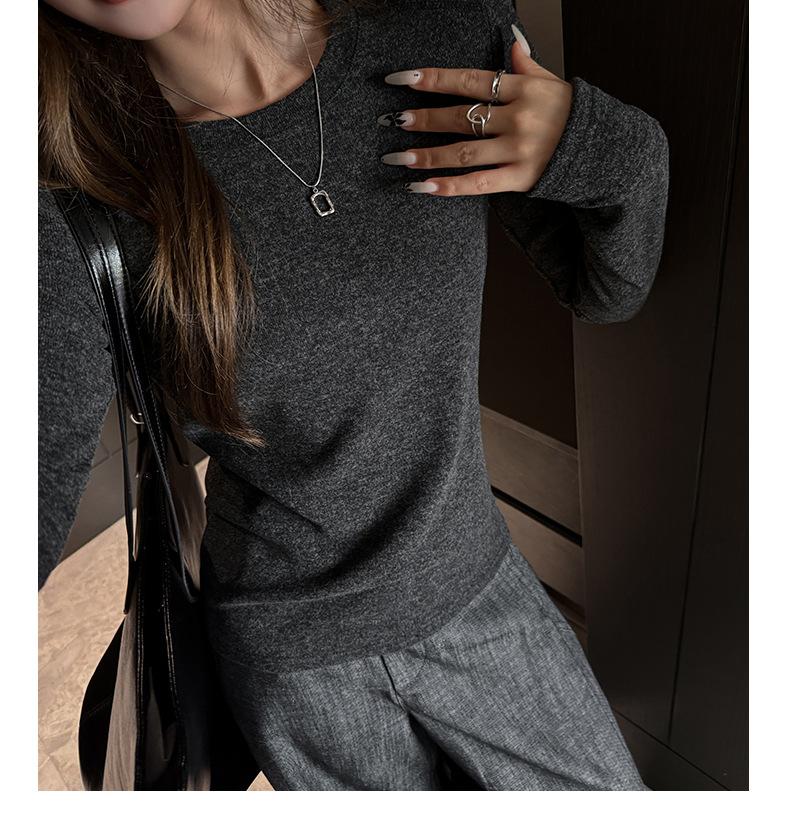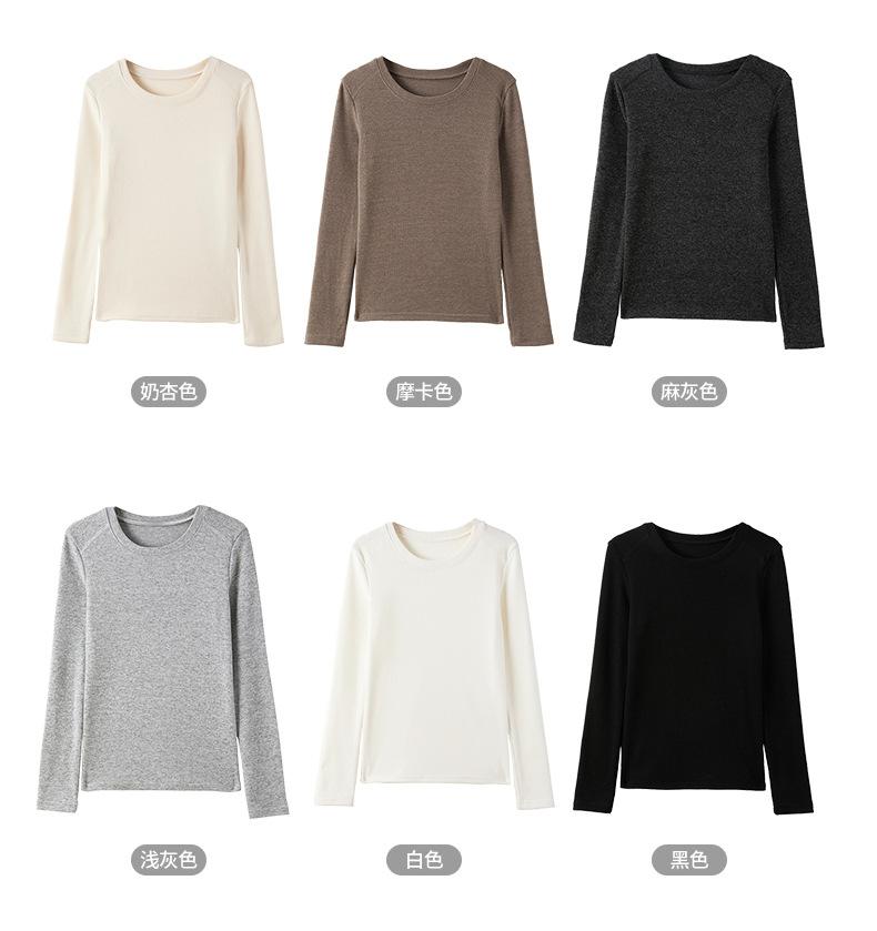 Factory Otoño/Invierno Franela Gruesa Capa Base Top para Mujer Cuello Redondo de Gama Alta Hombro Regular Manga Larga Camiseta Estilo Coreano Top Casual