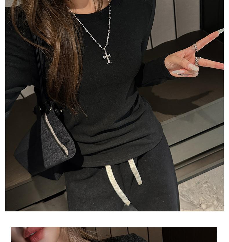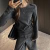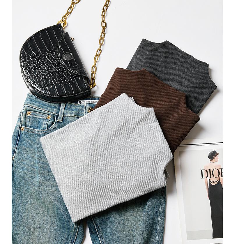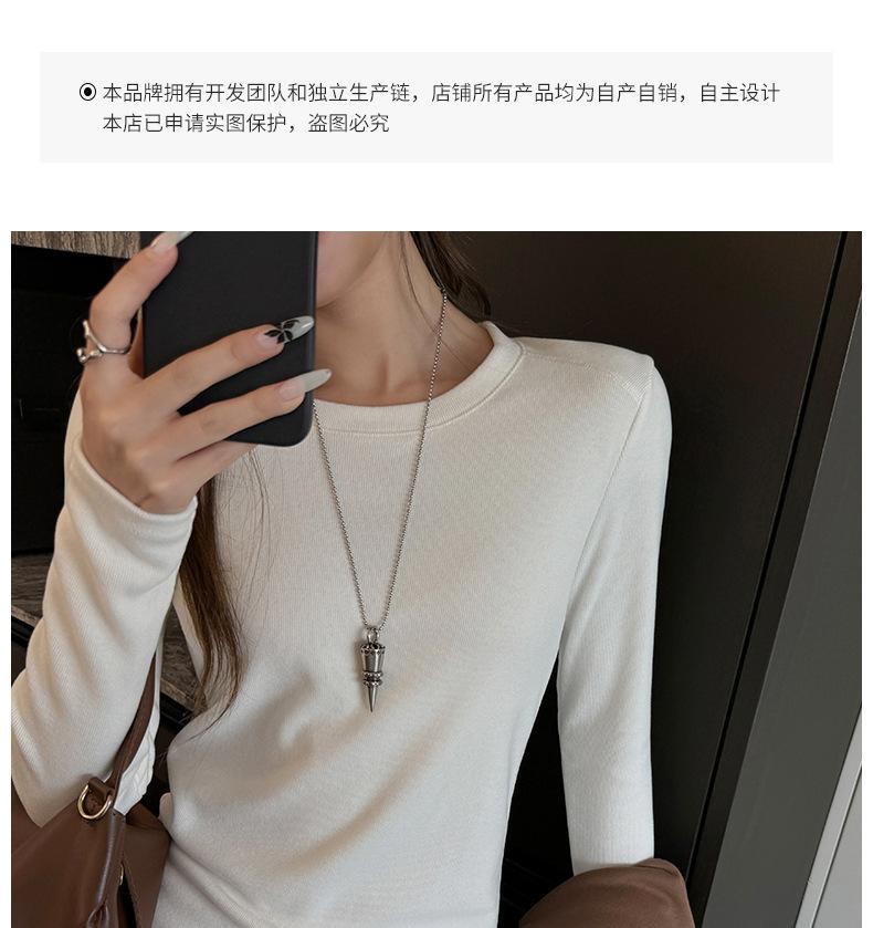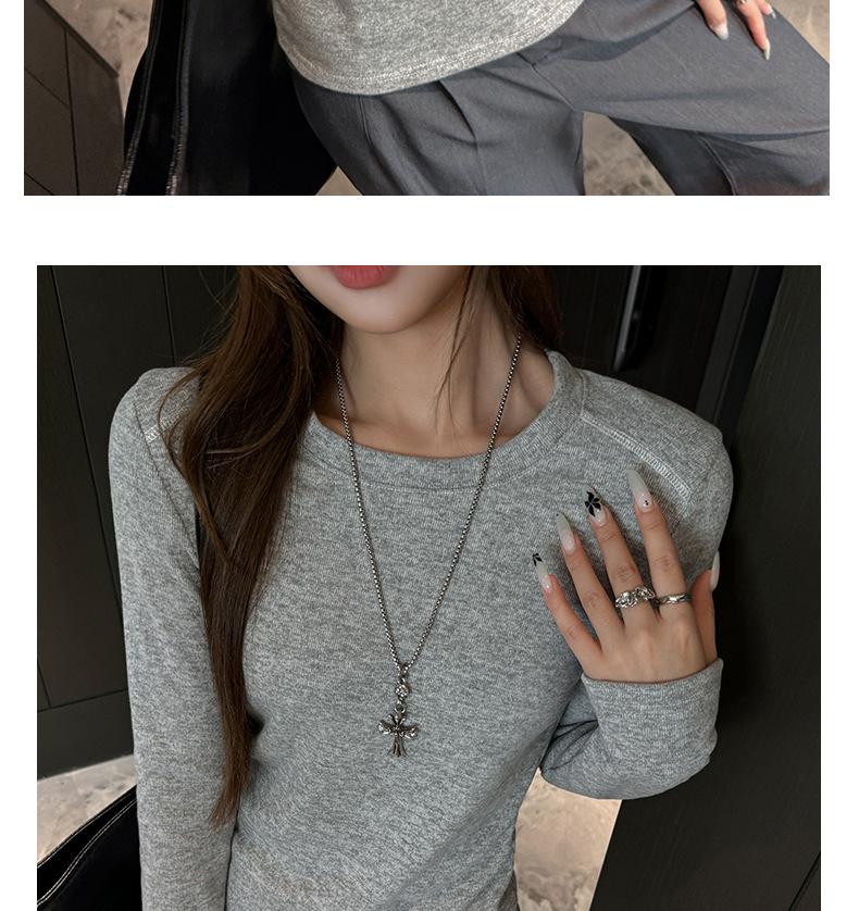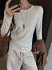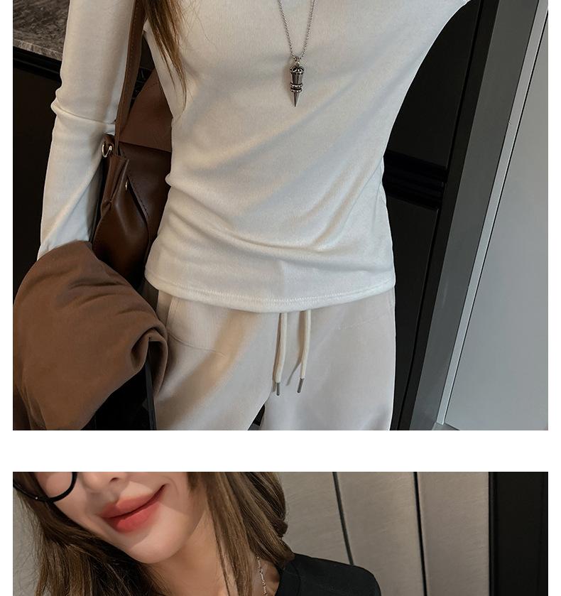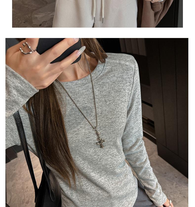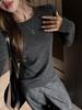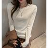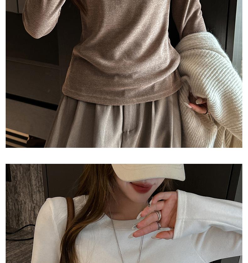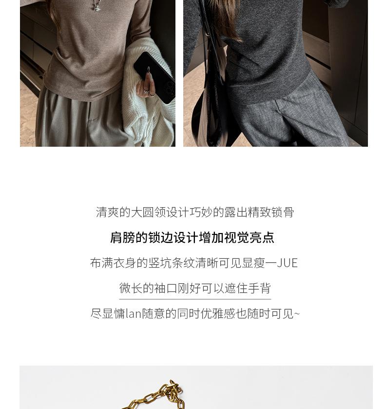 Factory Otoño/Invierno Franela Gruesa Capa Base Top para Mujer Cuello Redondo de Gama Alta Hombro Regular Manga Larga Camiseta Estilo Coreano Top Casual