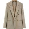 2025 Otoño/Invierno Nuevo Estilo Chaqueta Blazer con Hebilla Metálica Gris Claro para Mujer Traje Versátil de Estilo Británico de Alta Gama