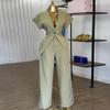 Ropa de Mujer Transfronteriza Europea y Americana al por Mayor Verano 2025 Nueva Moda Casual Algodón Puro Conjunto Top con Cordones Pantalones de Pierna Ancha