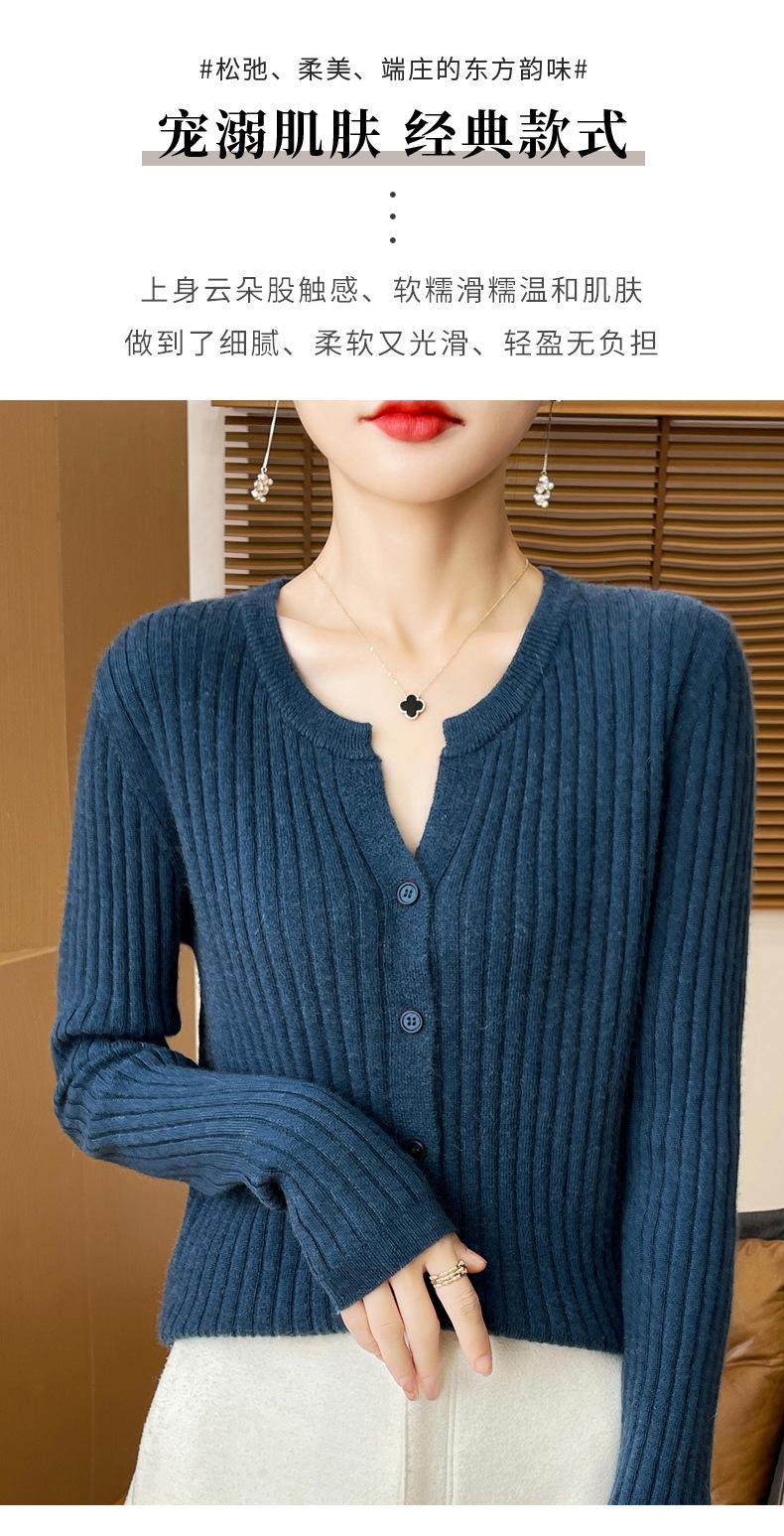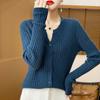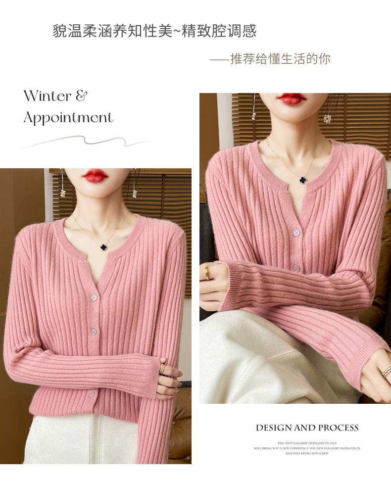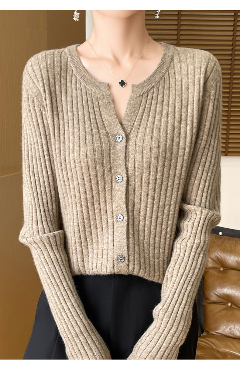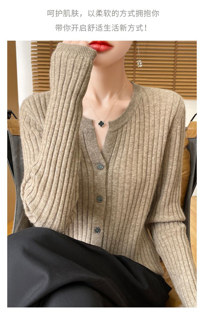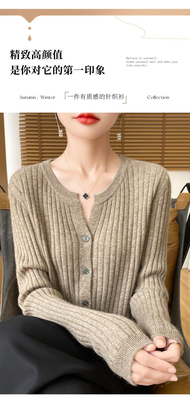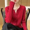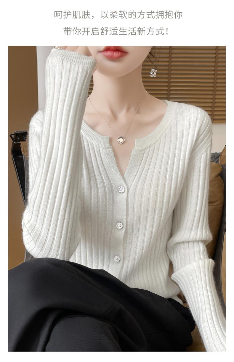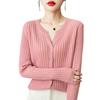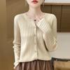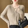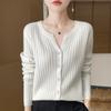 Otoño e Invierno 2024 Nuevo Suéter de Punto con Cuello en V de Manga Larga para Mujer Suelto Caída Vertical Color Sólido Combinable Chaqueta Elegante