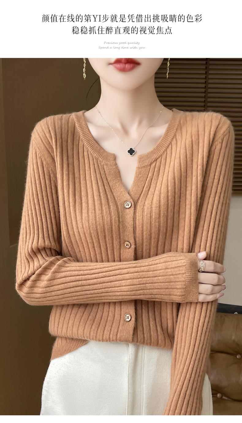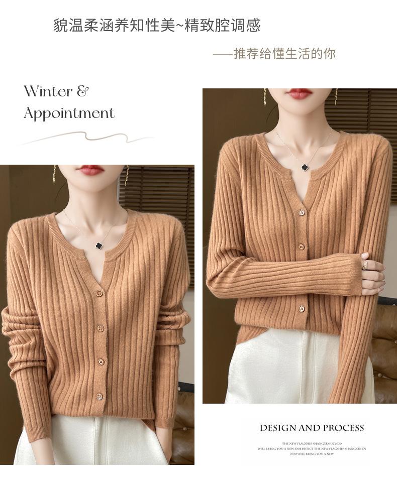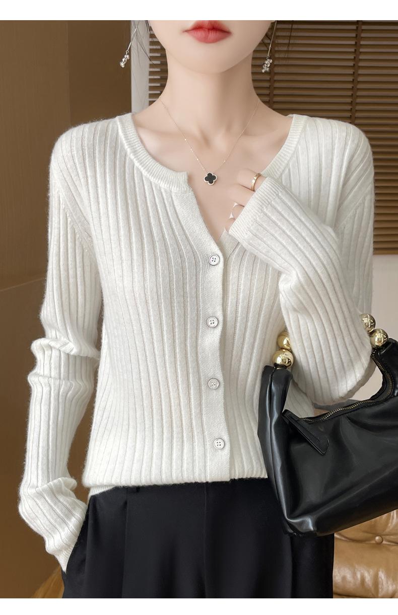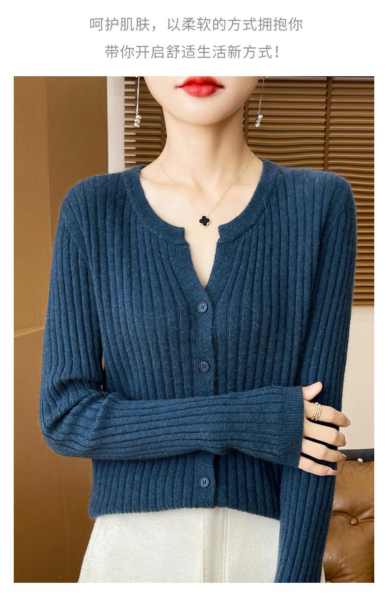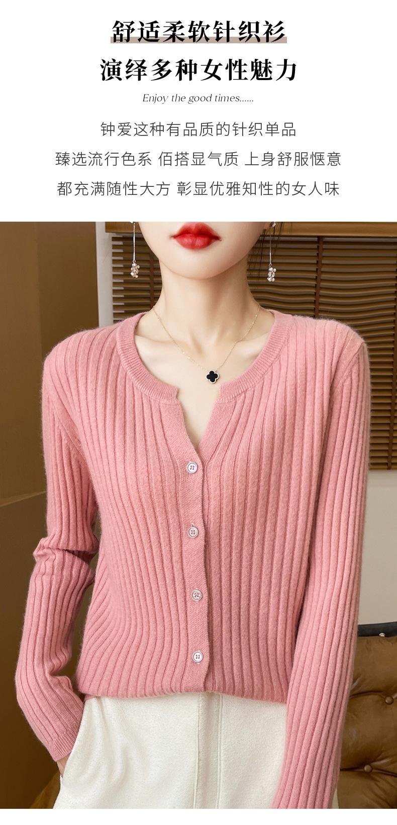 Otoño e Invierno 2024 Nuevo Suéter de Punto con Cuello en V de Manga Larga para Mujer Suelto Caída Vertical Color Sólido Combinable Chaqueta Elegante