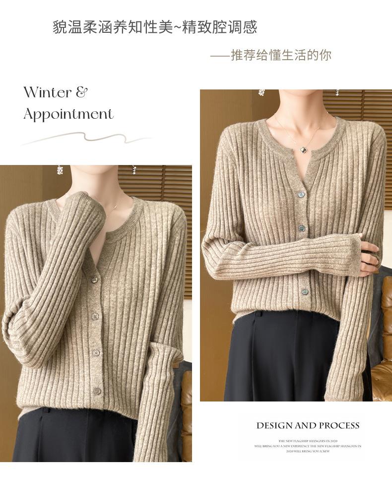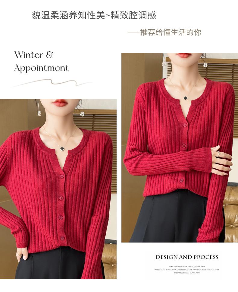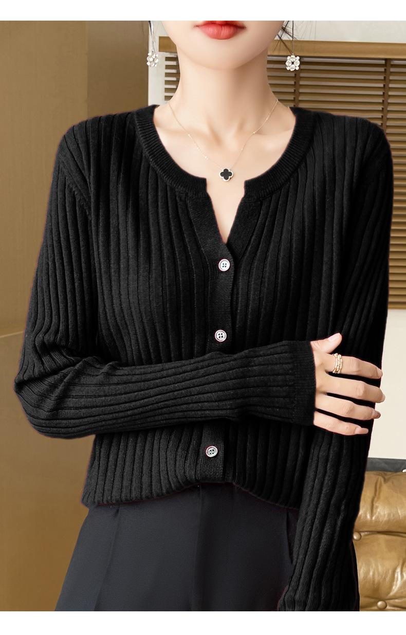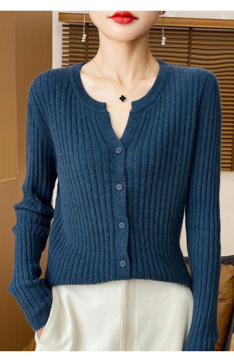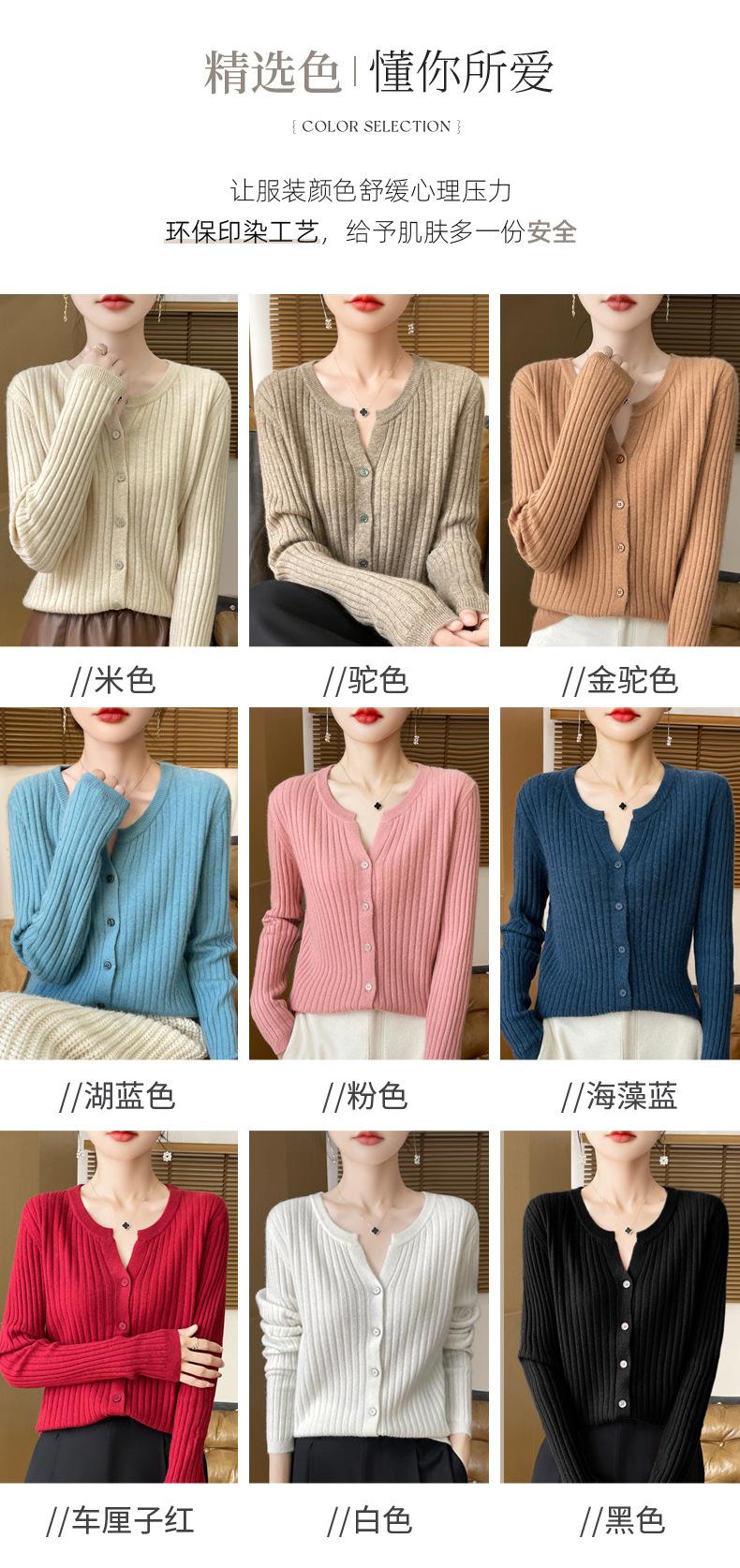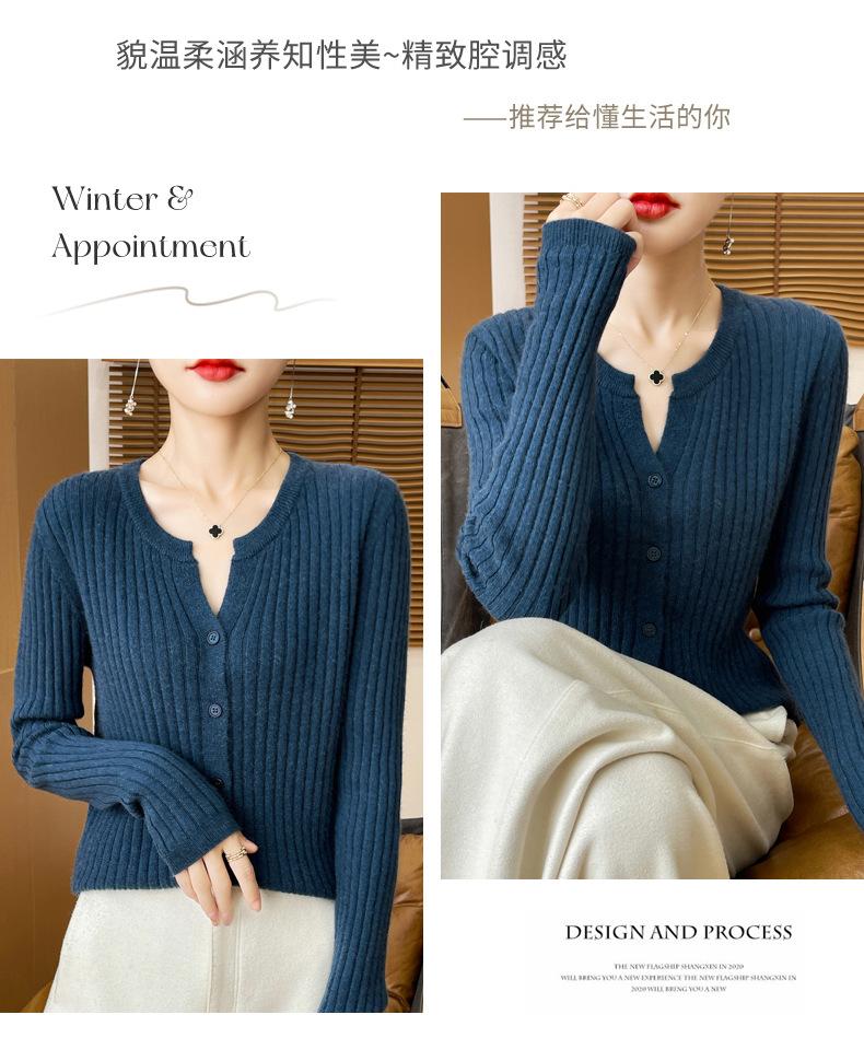 Otoño e Invierno 2024 Nuevo Suéter de Punto con Cuello en V de Manga Larga para Mujer Suelto Caída Vertical Color Sólido Combinable Chaqueta Elegante