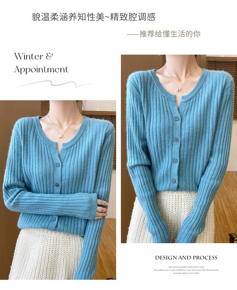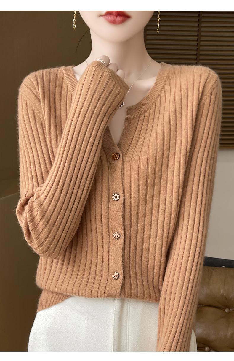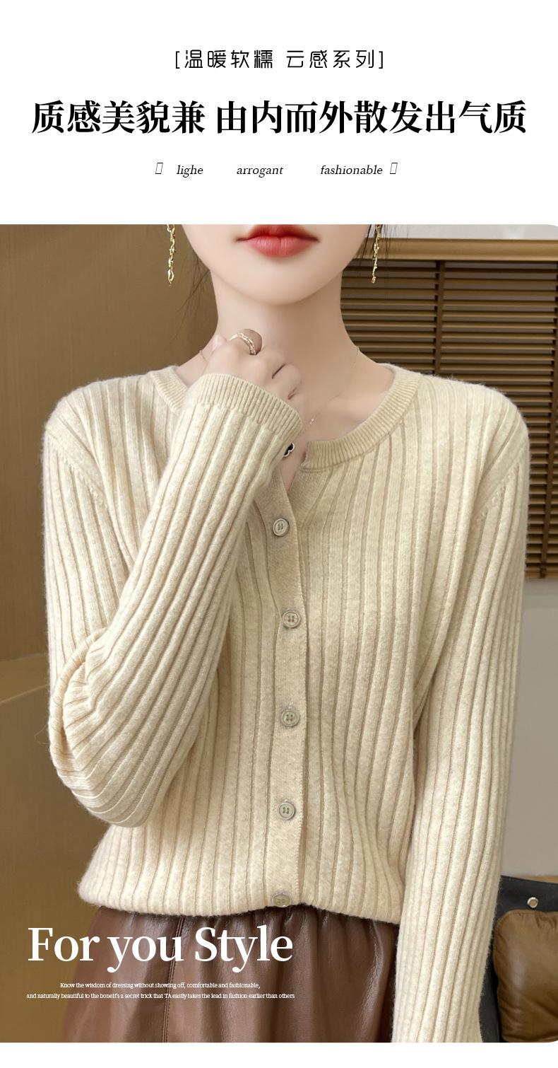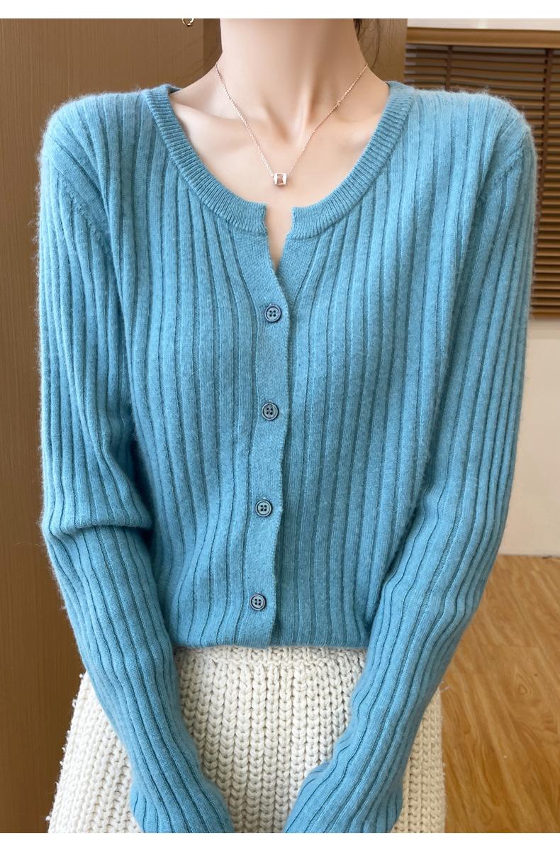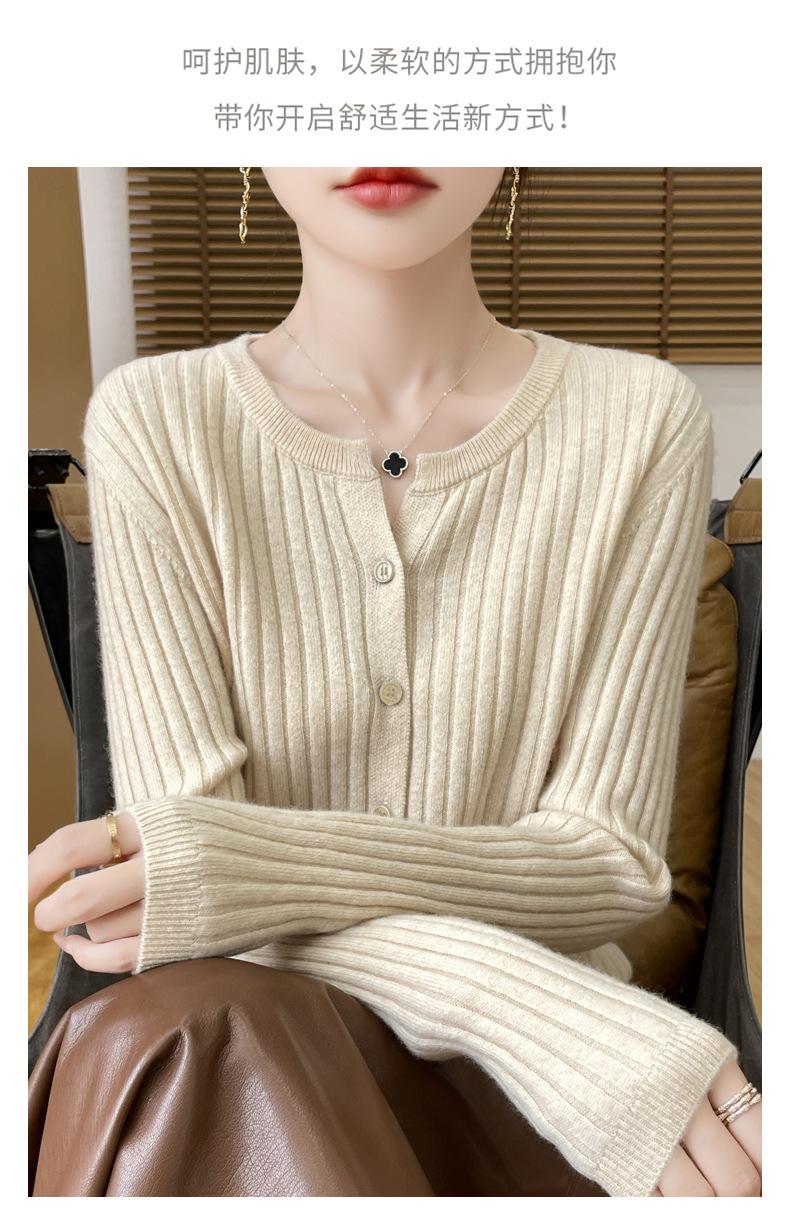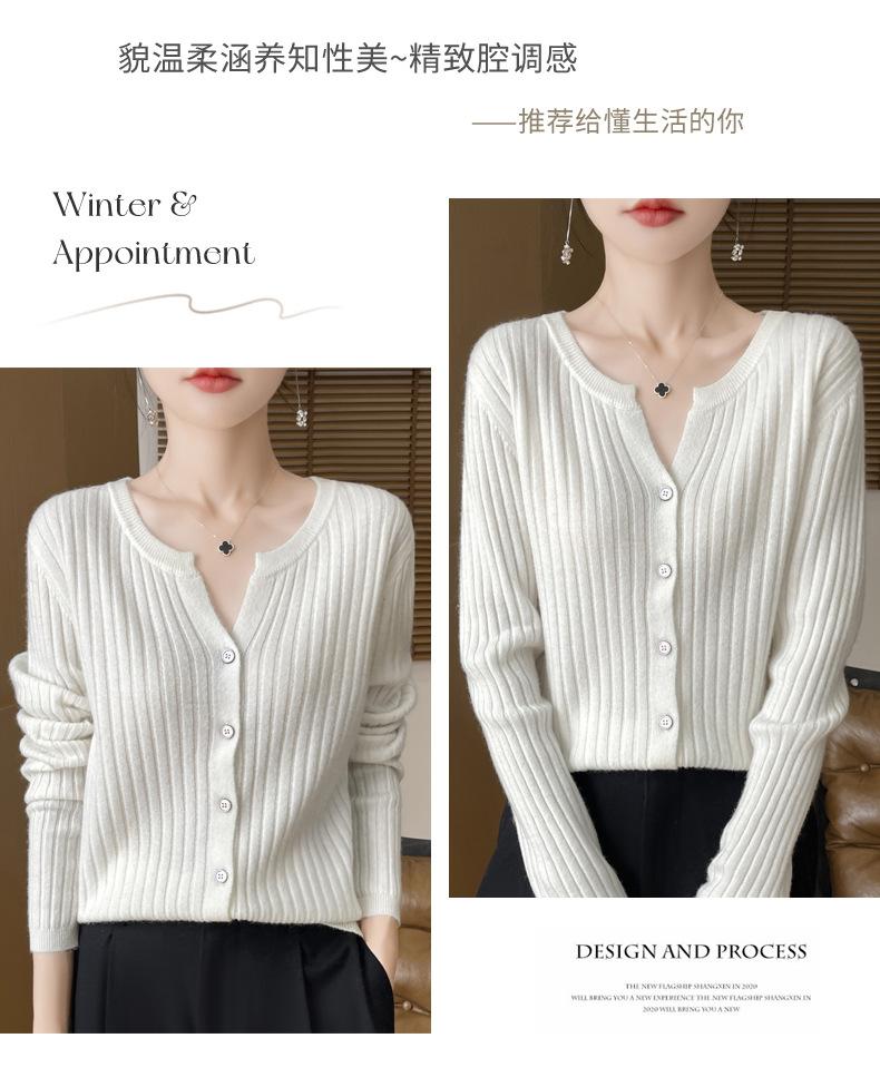 Otoño e Invierno 2024 Nuevo Suéter de Punto con Cuello en V de Manga Larga para Mujer Suelto Caída Vertical Color Sólido Combinable Chaqueta Elegante