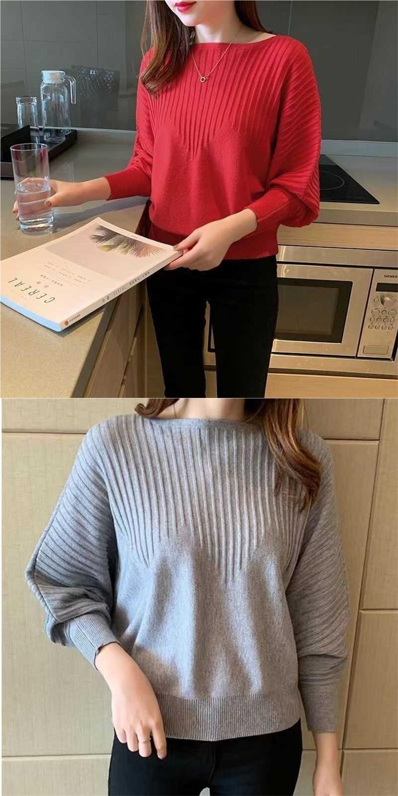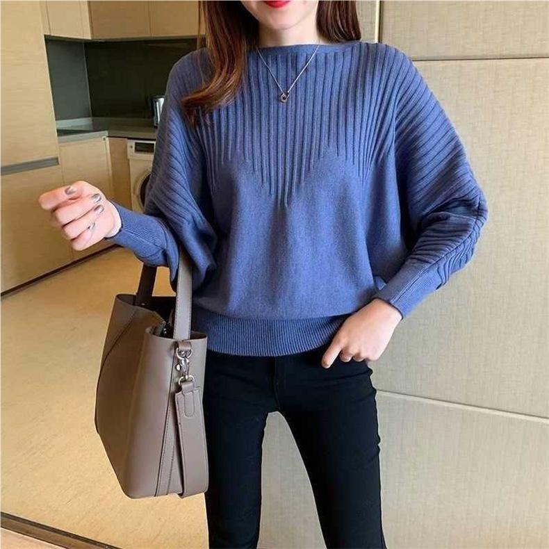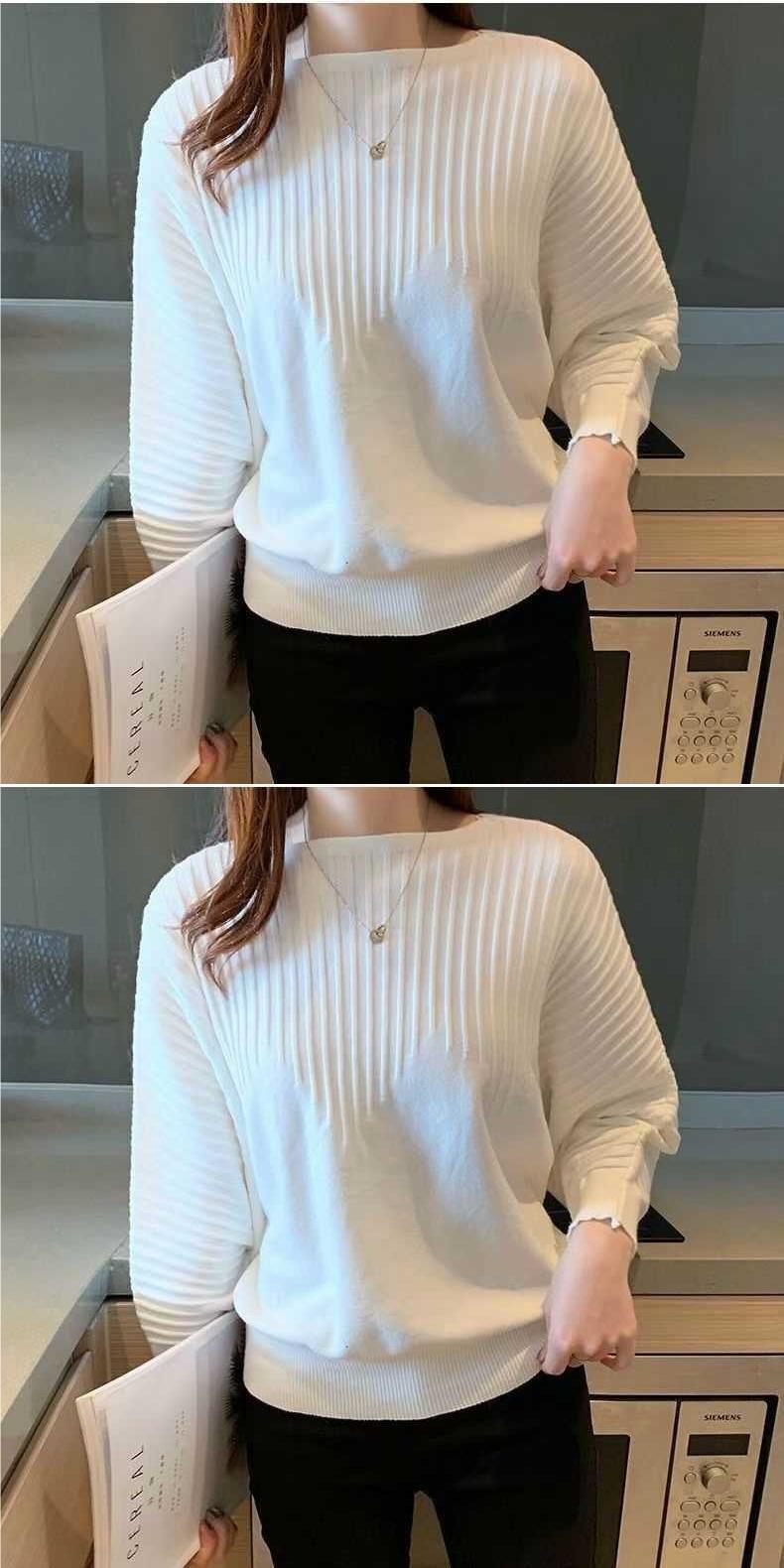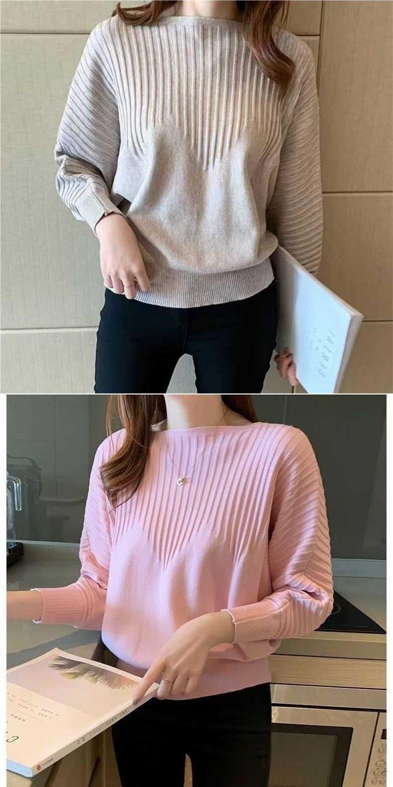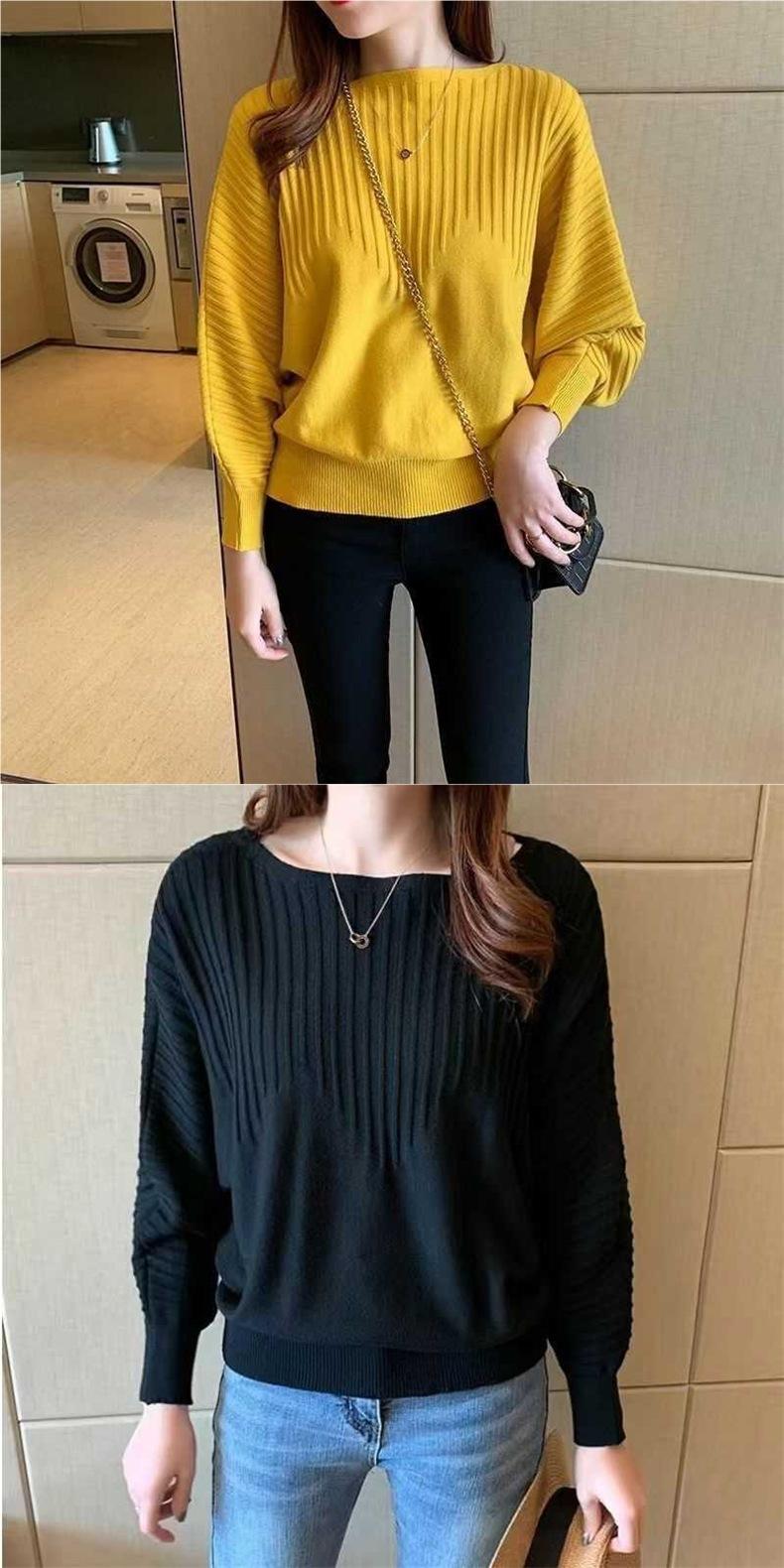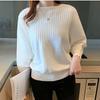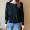 Primavera y Otoño Tejido Nuevos Suéteres Base Murciélago 2025 Temperamento Top Tejido Hombro Descubierto Suelto Top Corto