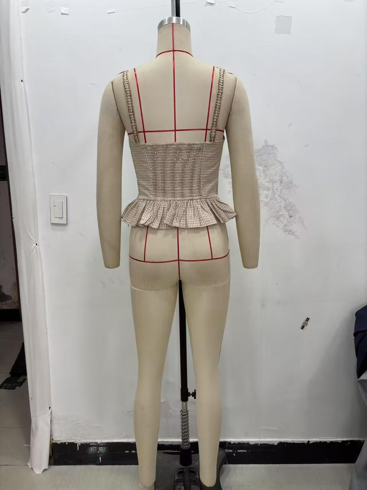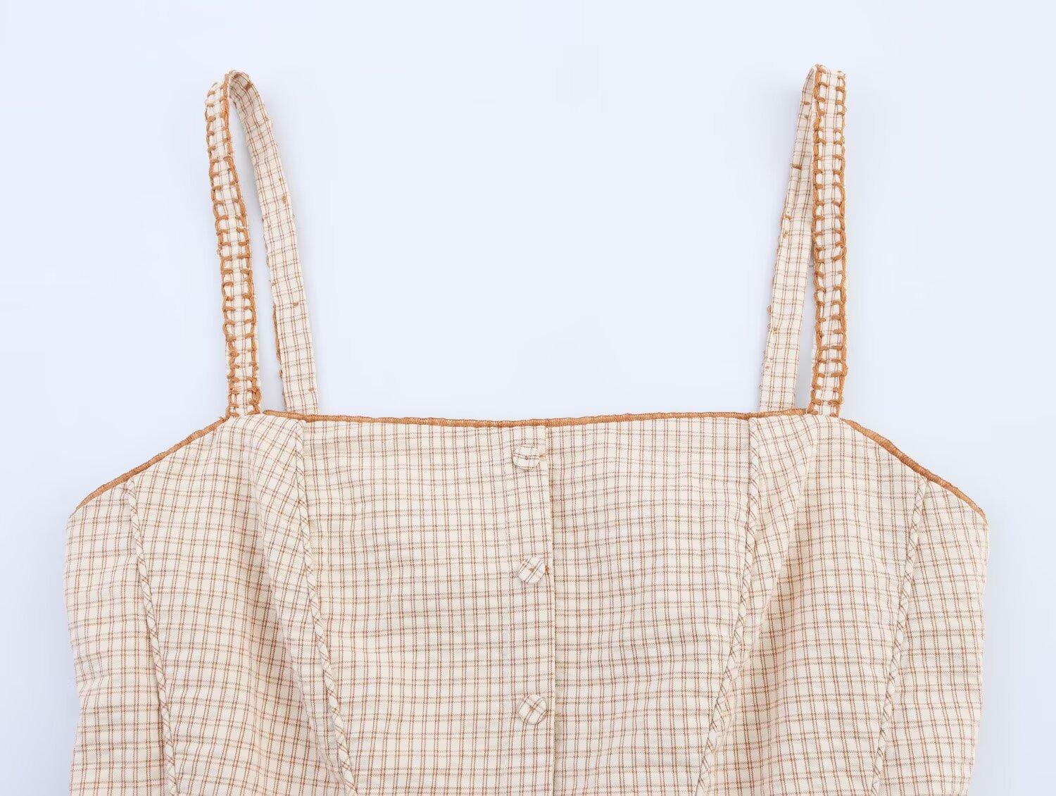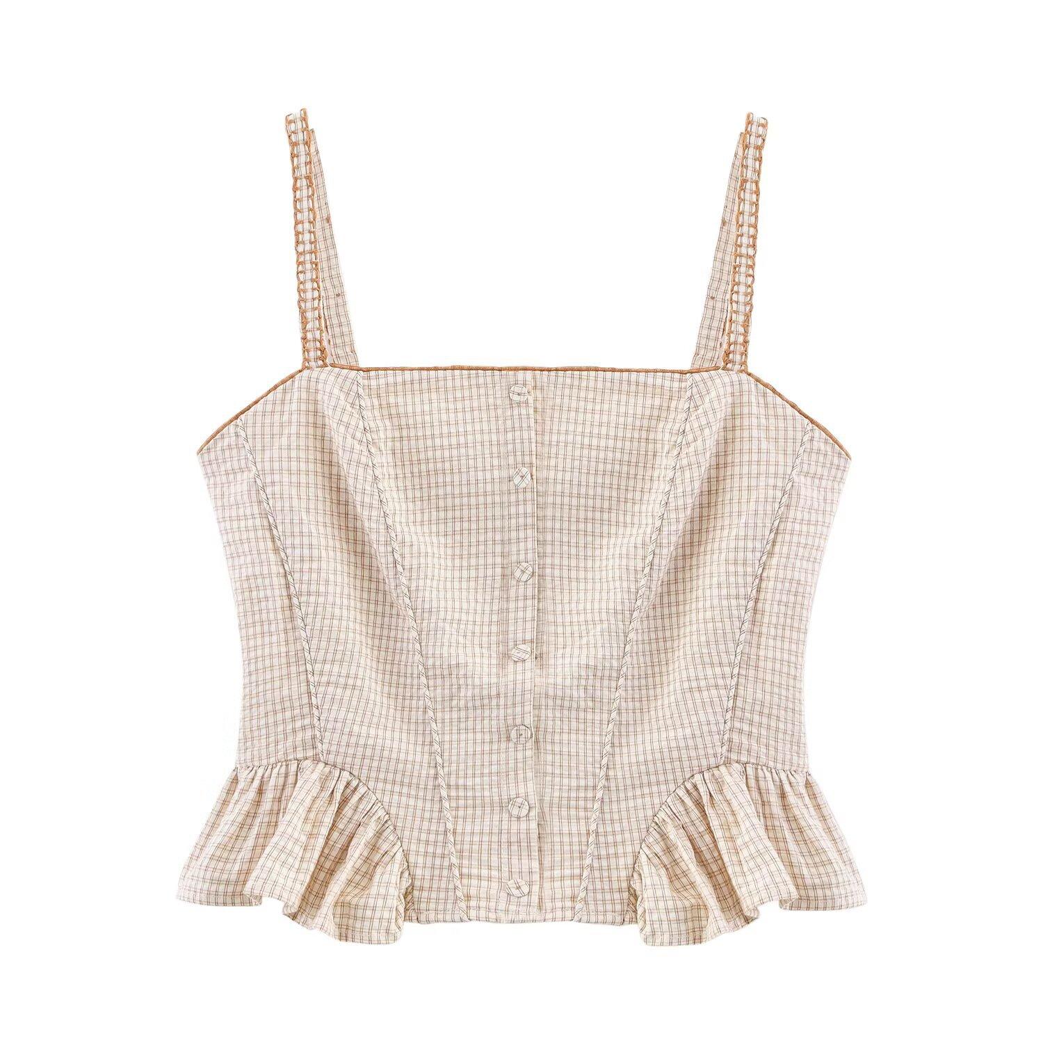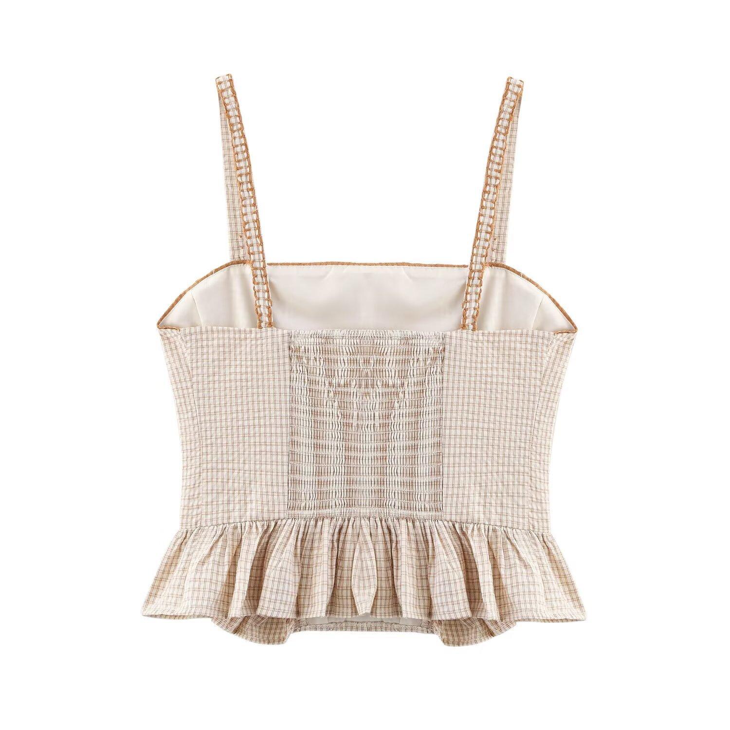 ZA Comercio Exterior Mujer 2025 Verano Nuevo Estilo Europeo y Americano Dulce y Sexy Ajustado Laminado Decorativo a Cuadros Top de Tirantes Sobrefalda