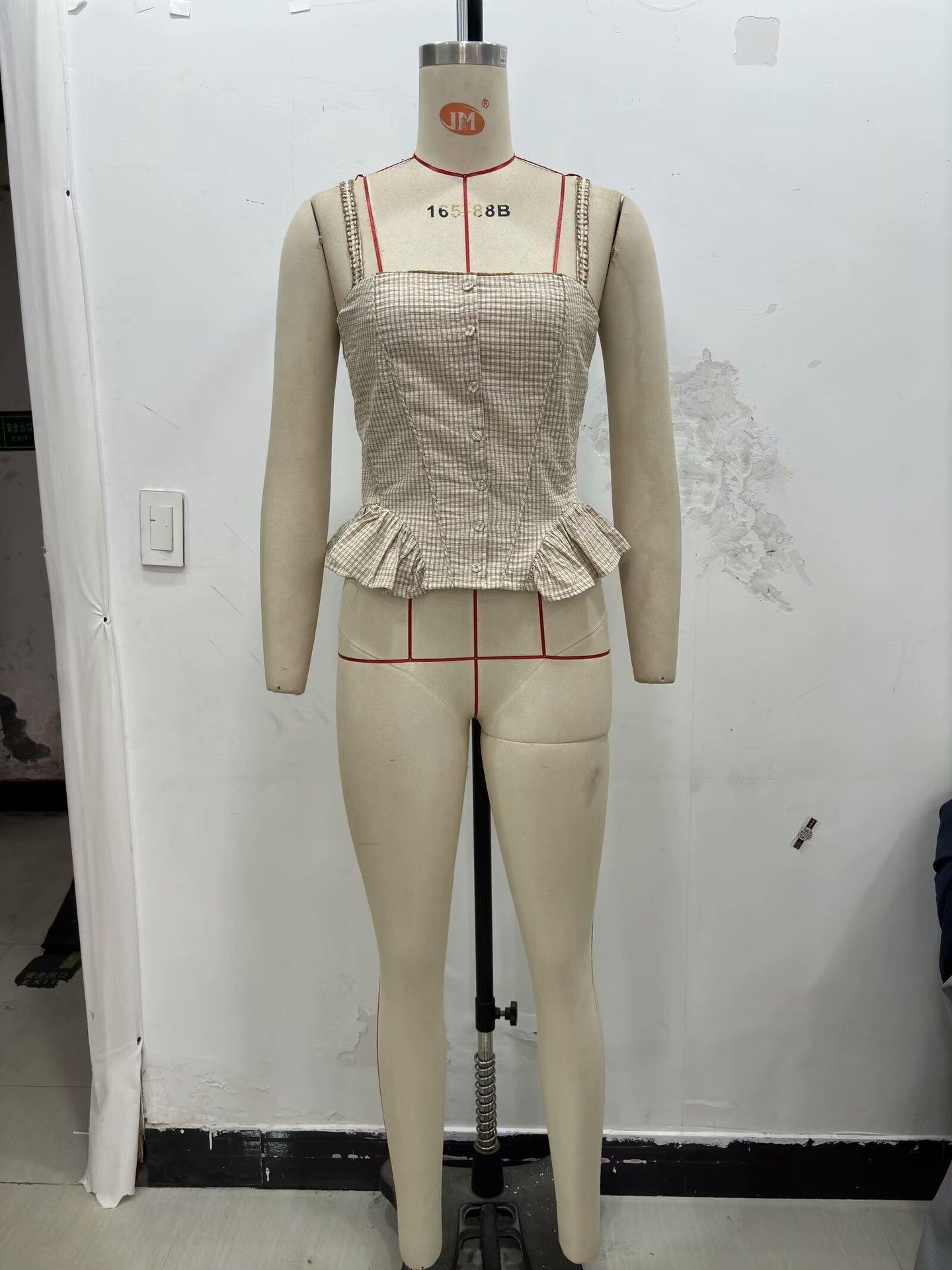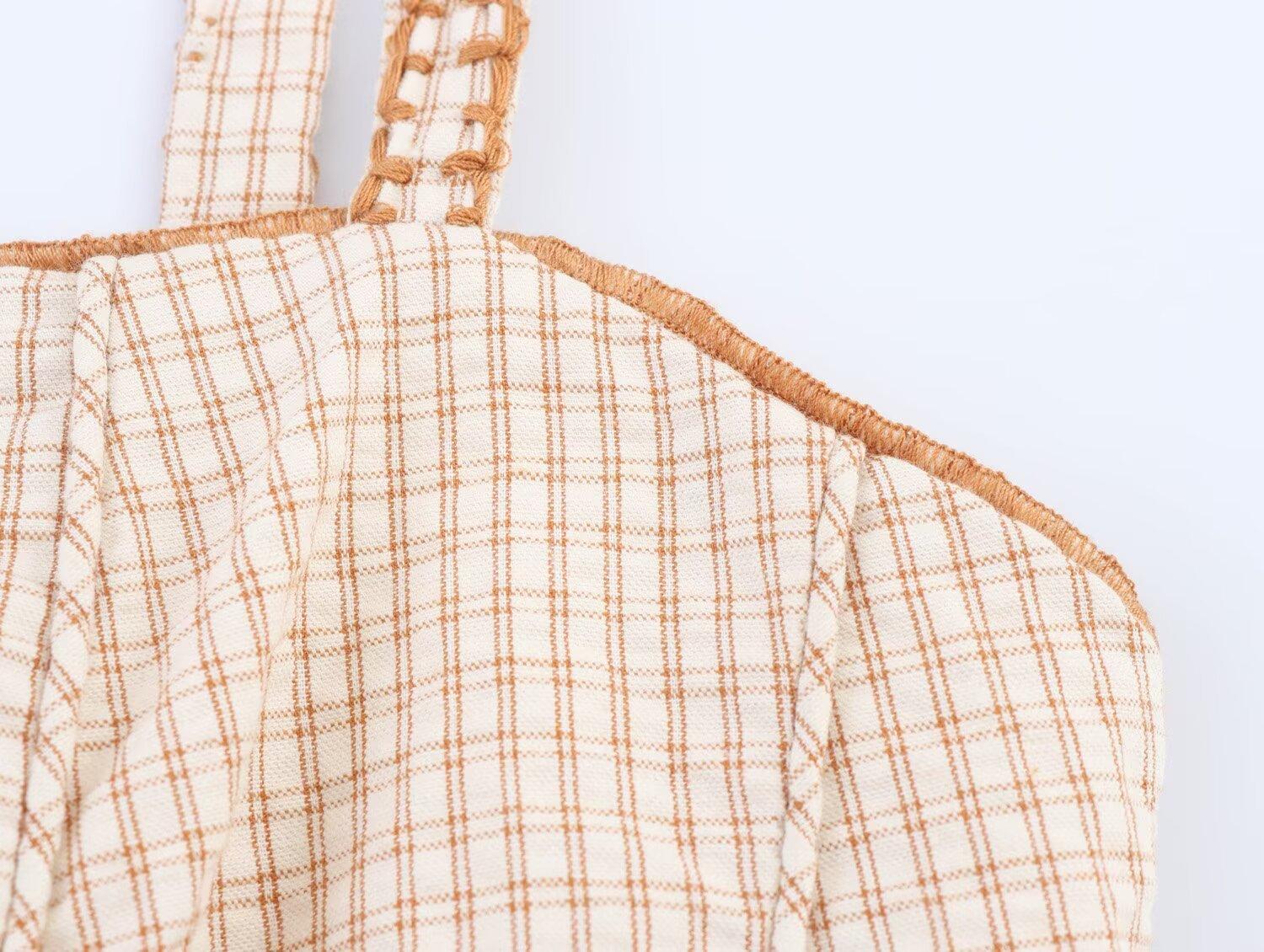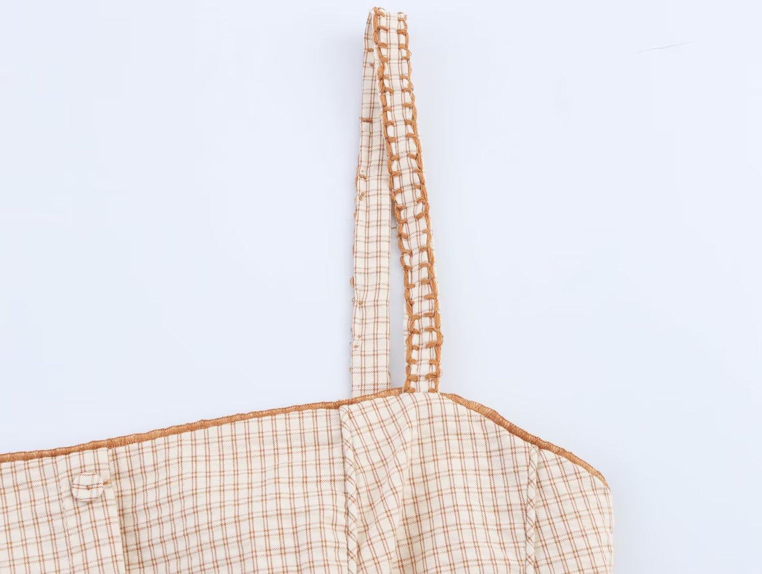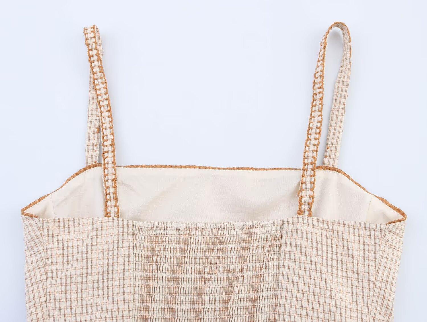 ZA Comercio Exterior Mujer 2025 Verano Nuevo Estilo Europeo y Americano Dulce y Sexy Ajustado Laminado Decorativo a Cuadros Top de Tirantes Sobrefalda