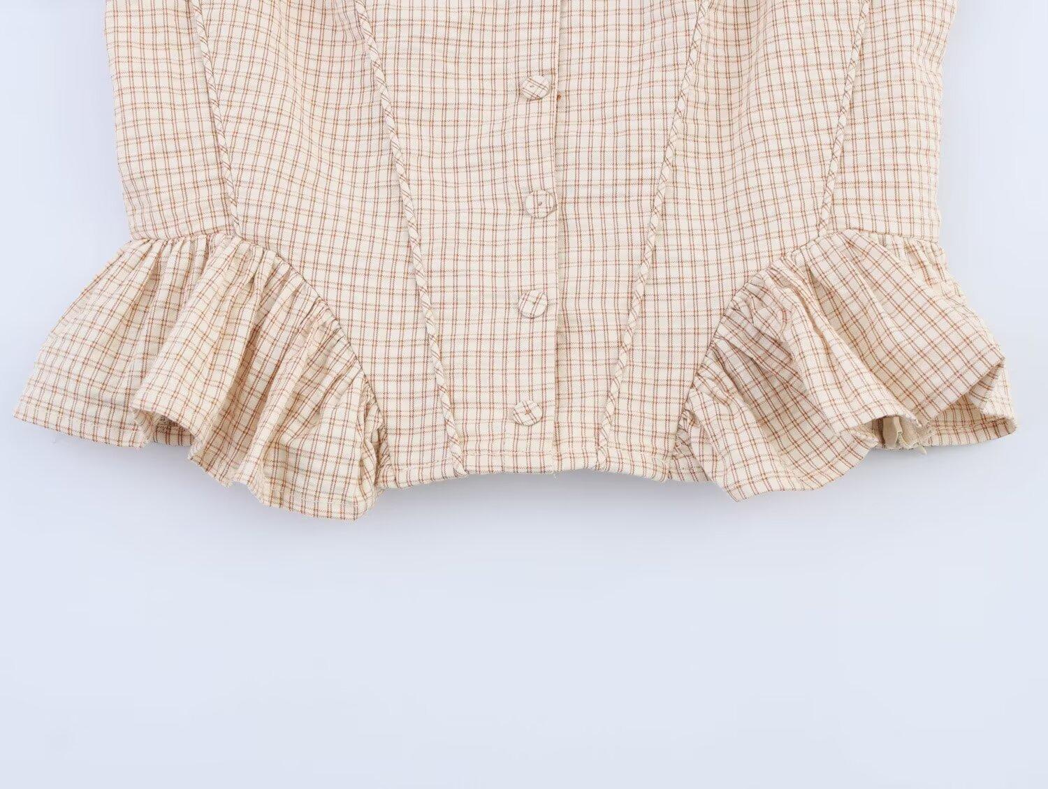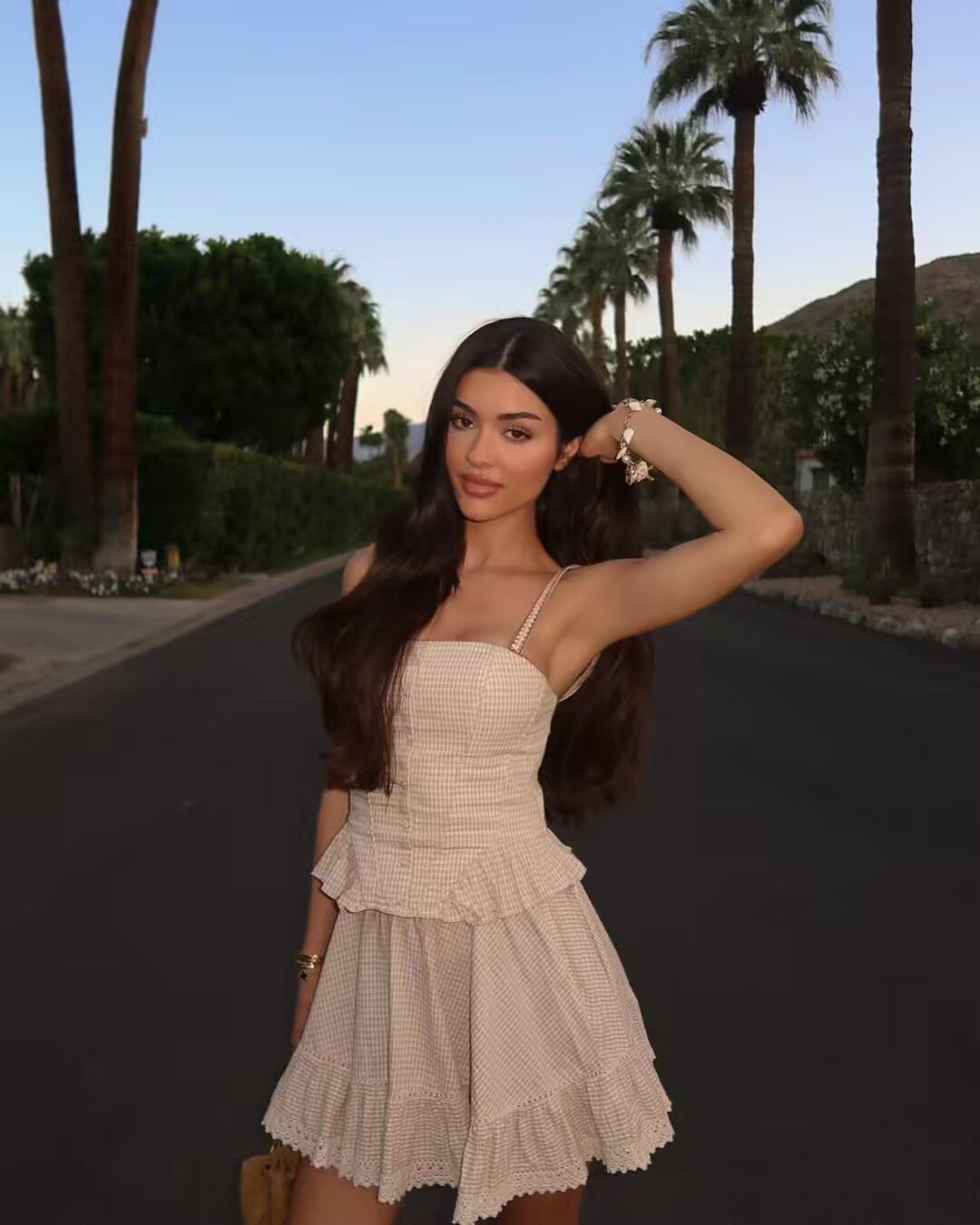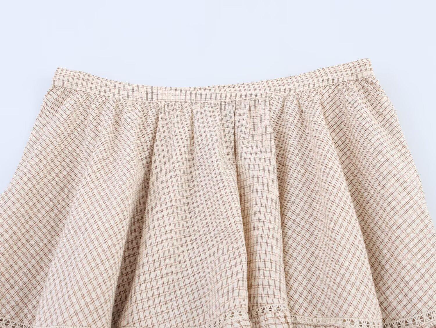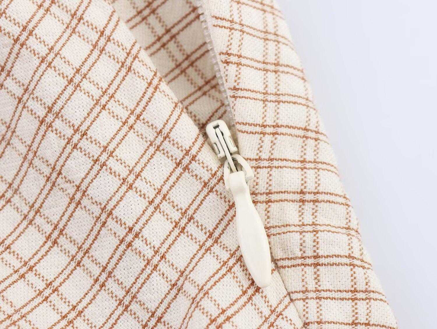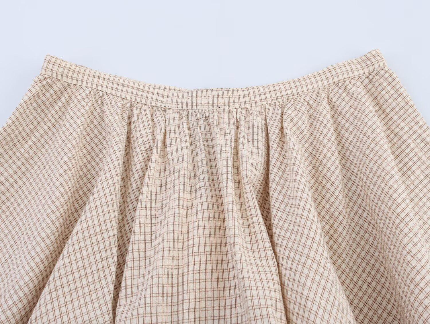 ZA Comercio Exterior Mujer 2025 Verano Nuevo Estilo Europeo y Americano Dulce y Sexy Ajustado Laminado Decorativo a Cuadros Top de Tirantes Sobrefalda