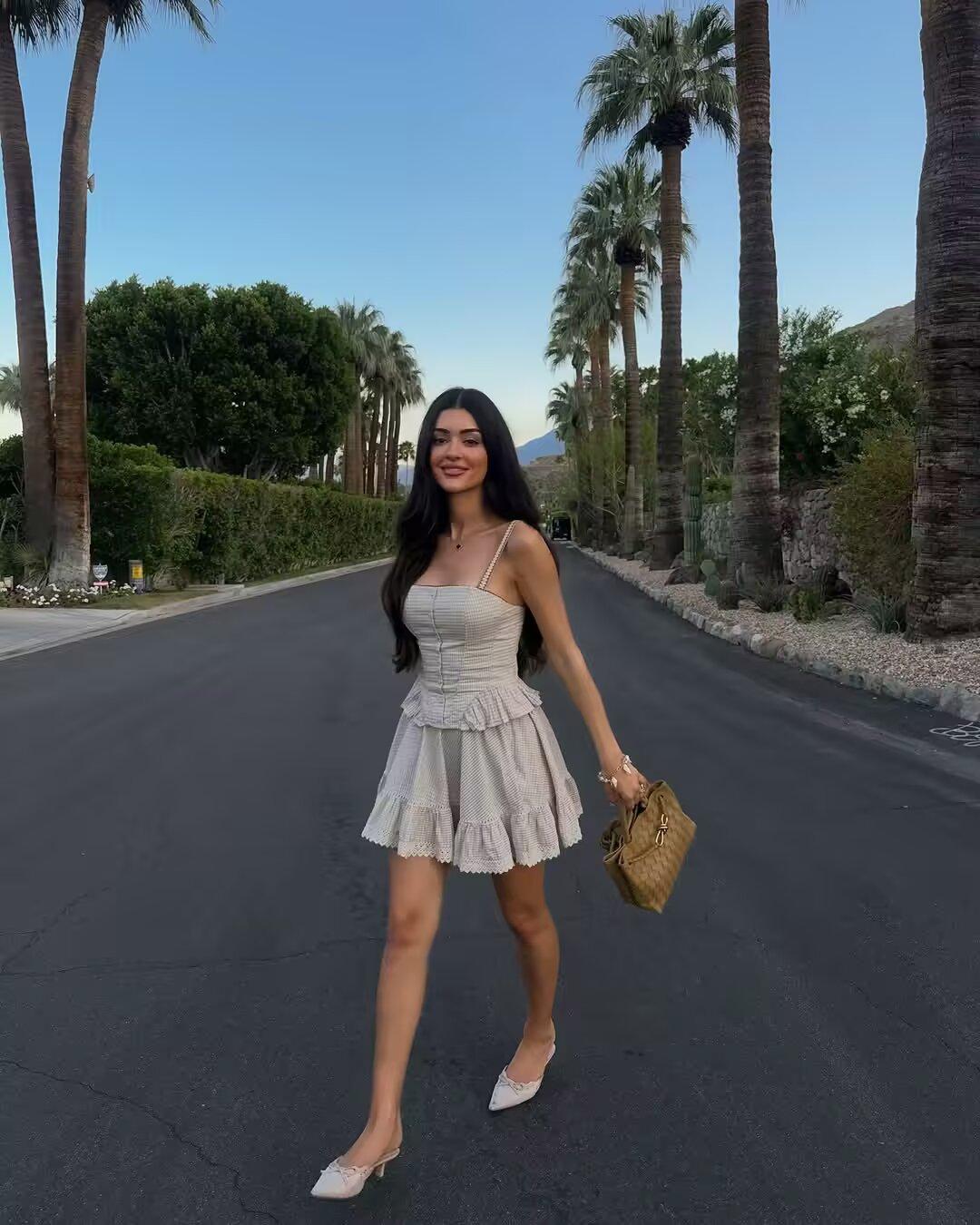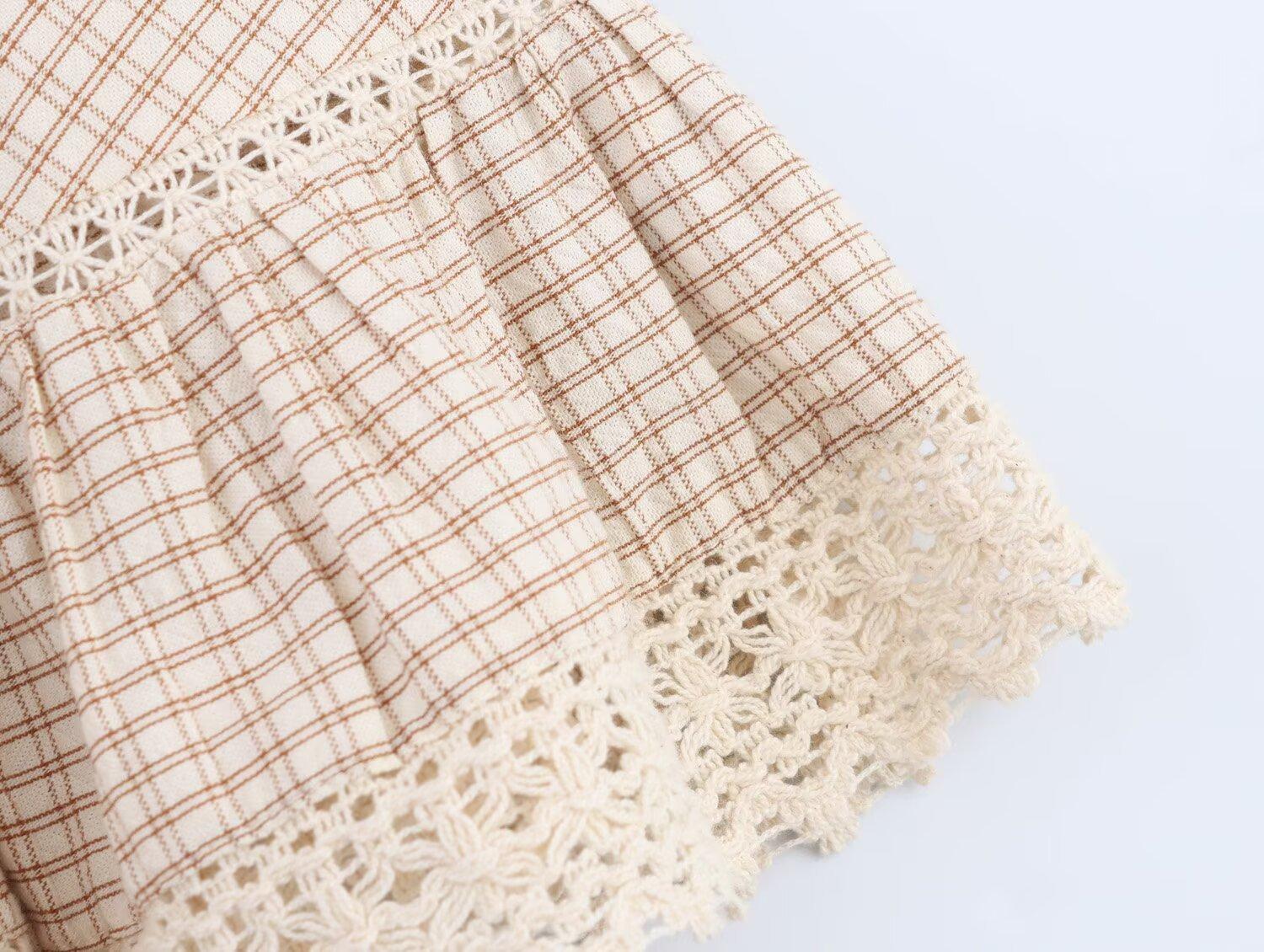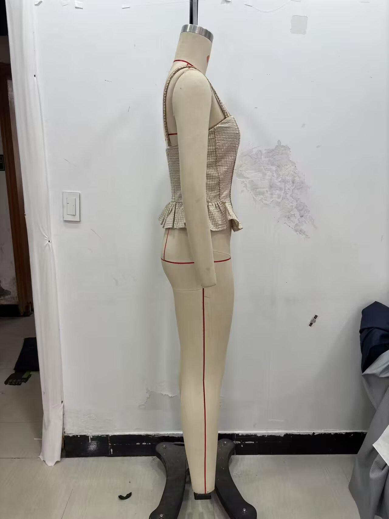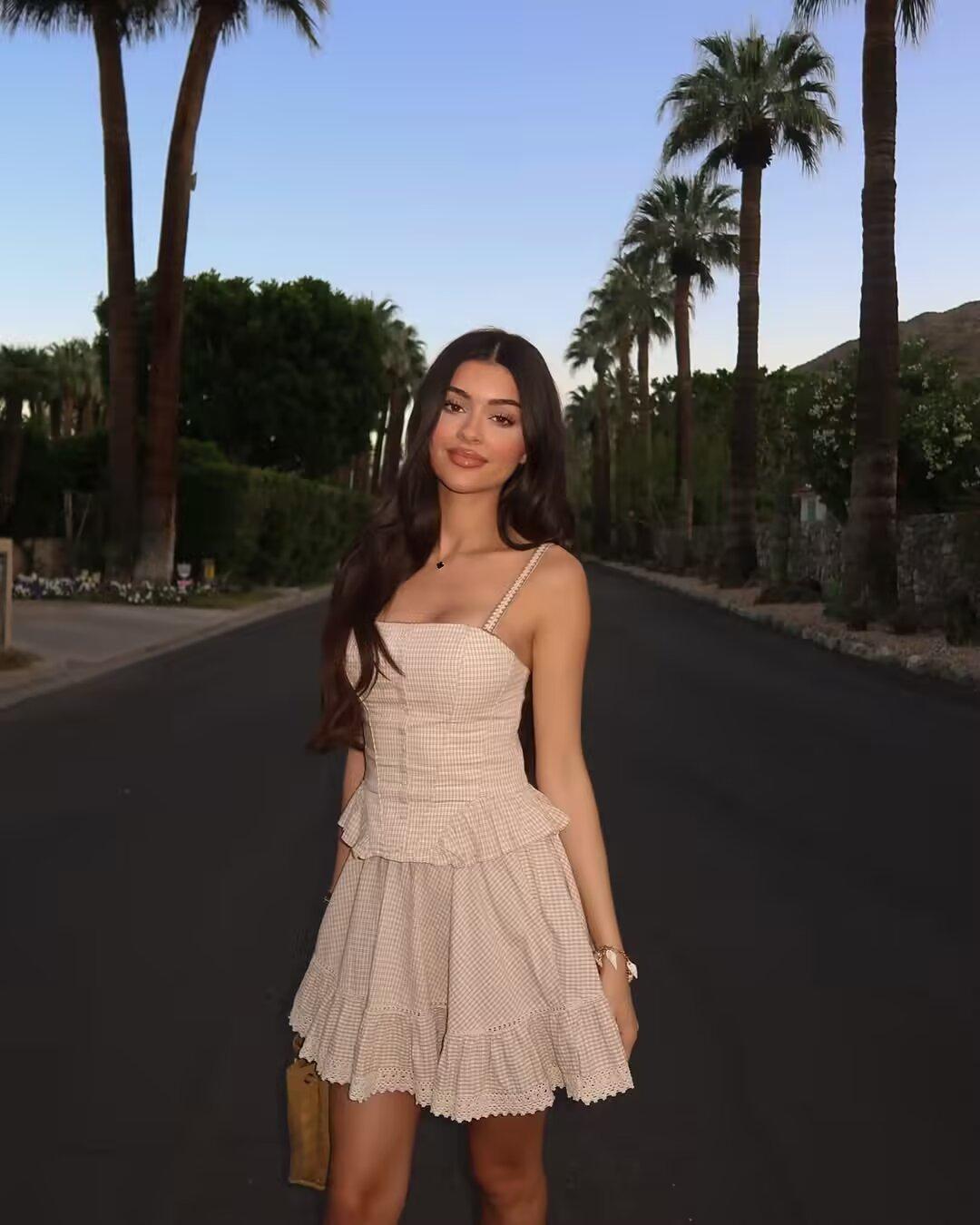 ZA Comercio Exterior Mujer 2025 Verano Nuevo Estilo Europeo y Americano Dulce y Sexy Ajustado Laminado Decorativo a Cuadros Top de Tirantes Sobrefalda