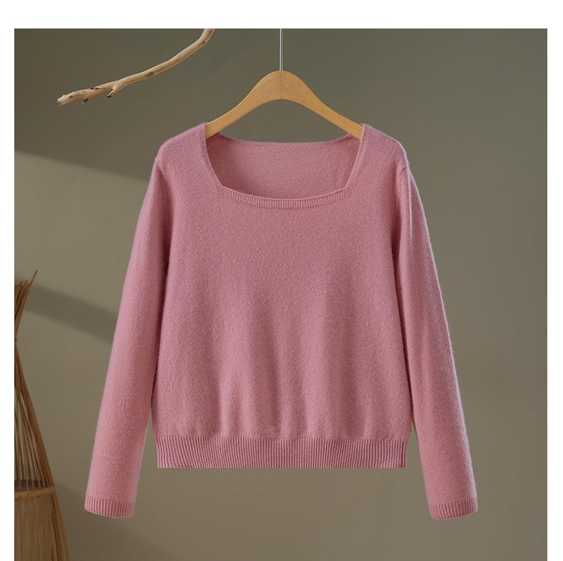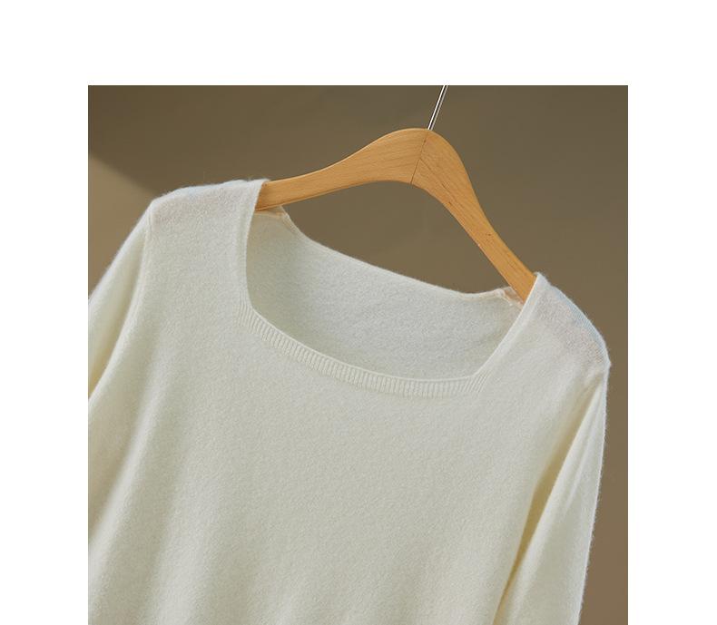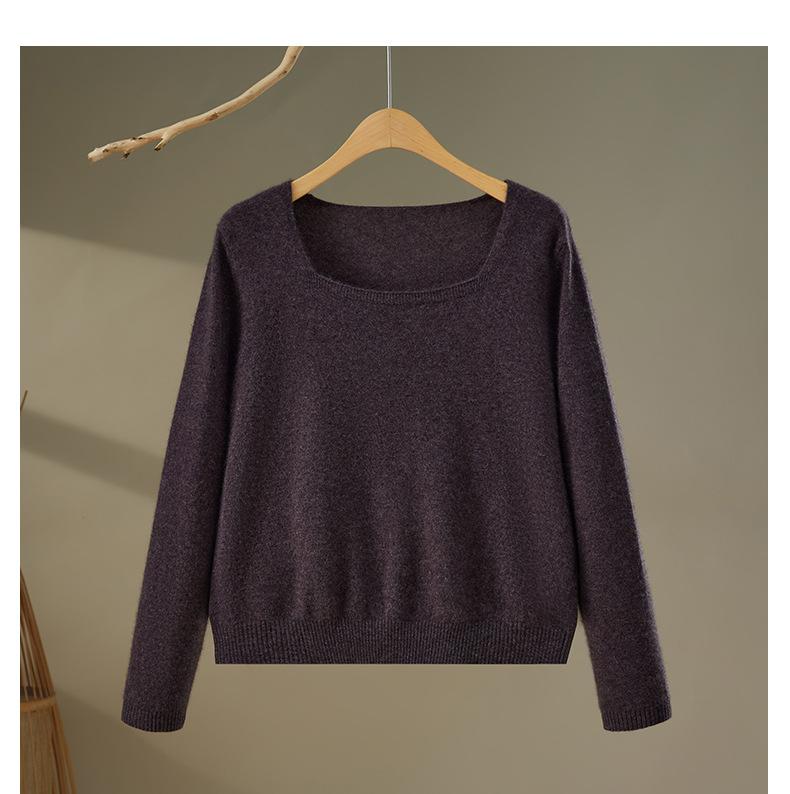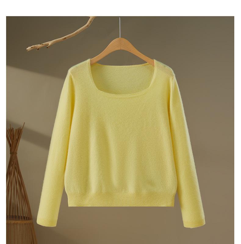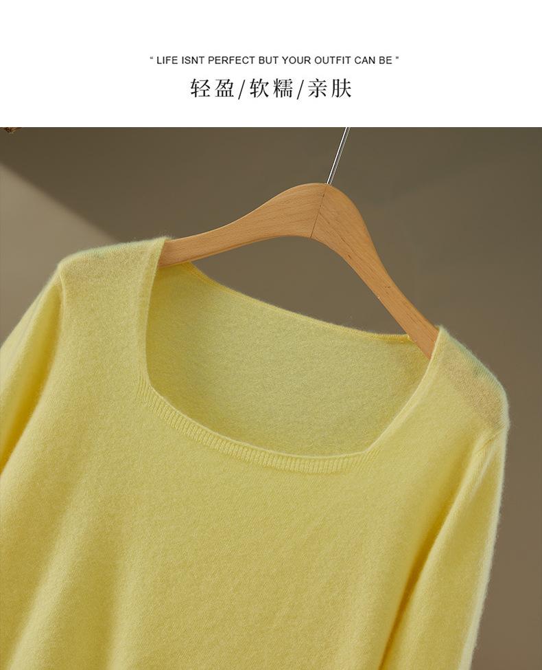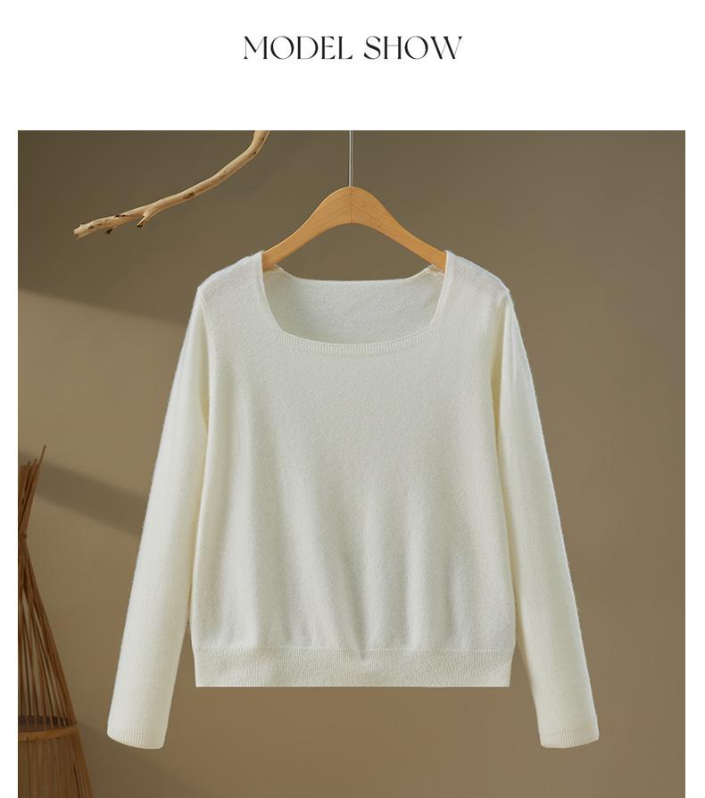 Moda Otoño/Invierno 2025 Suéter Corto de Cachemira Suave Cuello Cuadrado Jerséi Color Sólido Capa Interior Elegante Tejido de Punto Básico de Cachemira