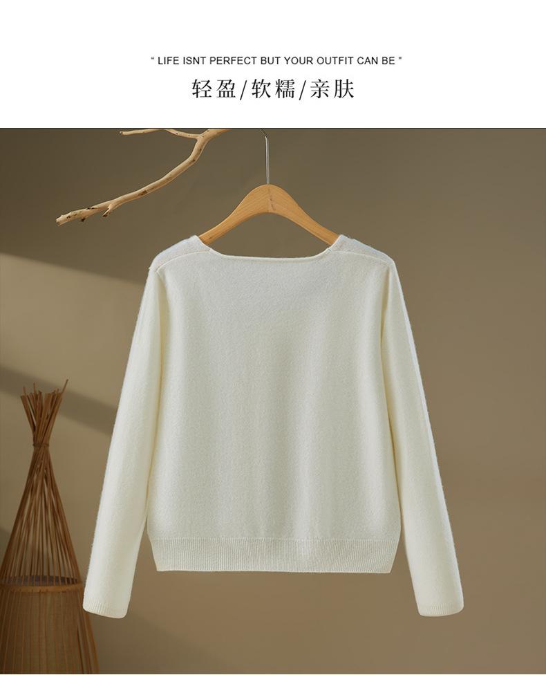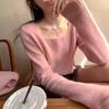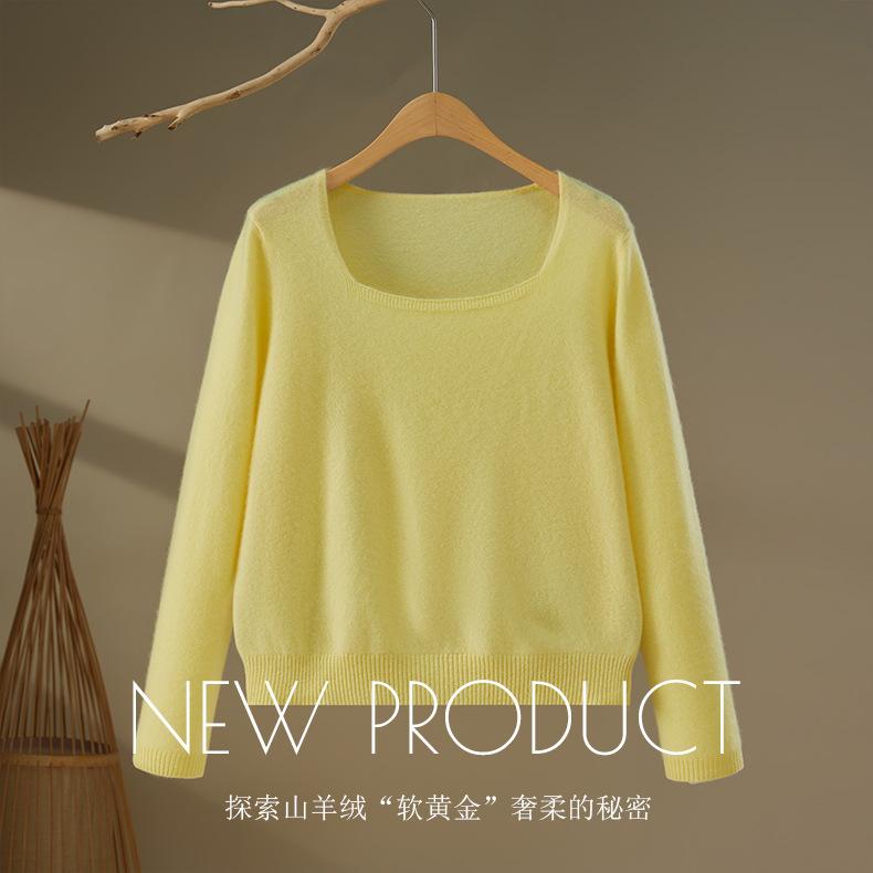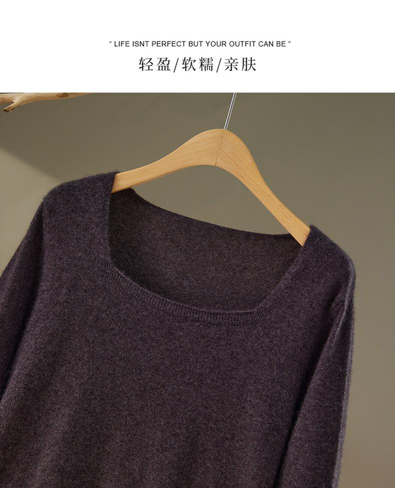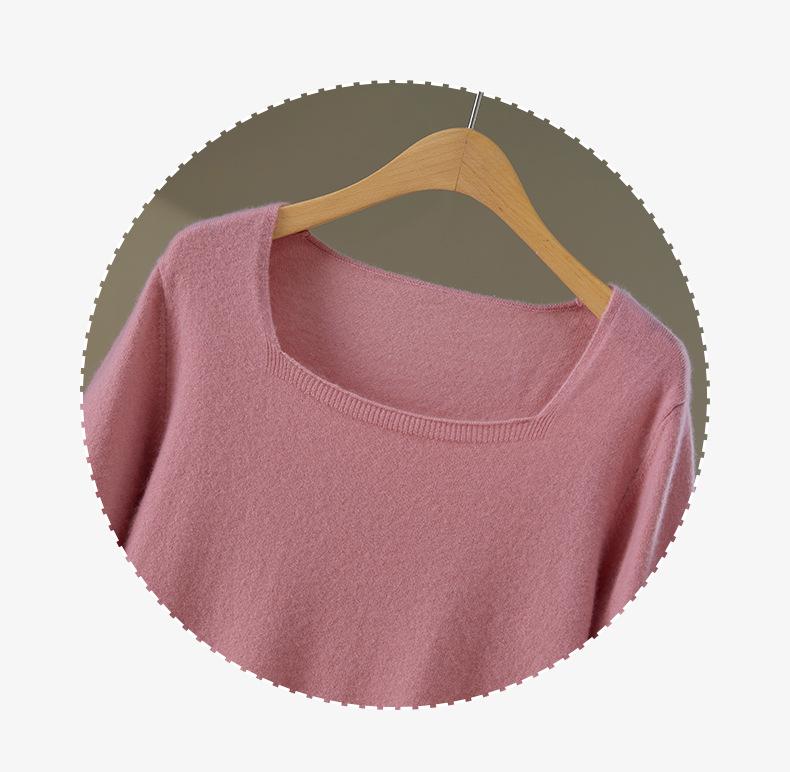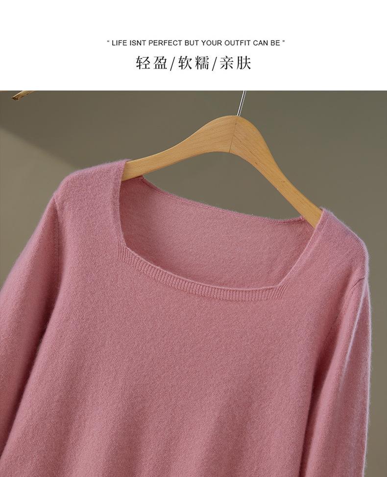 Moda Otoño/Invierno 2025 Suéter Corto de Cachemira Suave Cuello Cuadrado Jerséi Color Sólido Capa Interior Elegante Tejido de Punto Básico de Cachemira