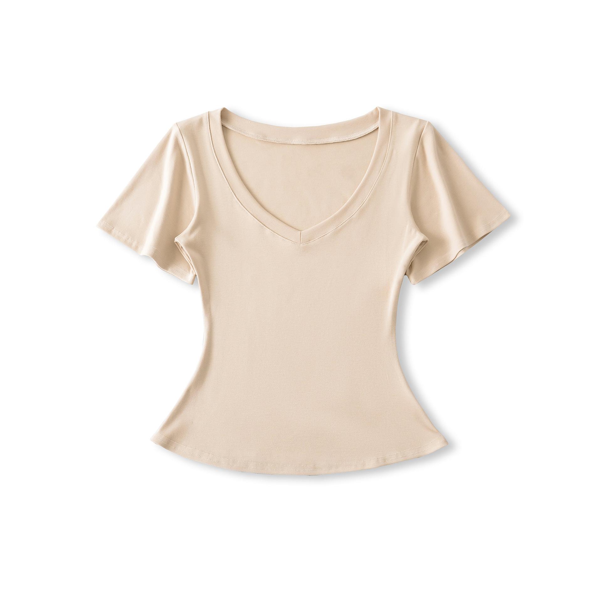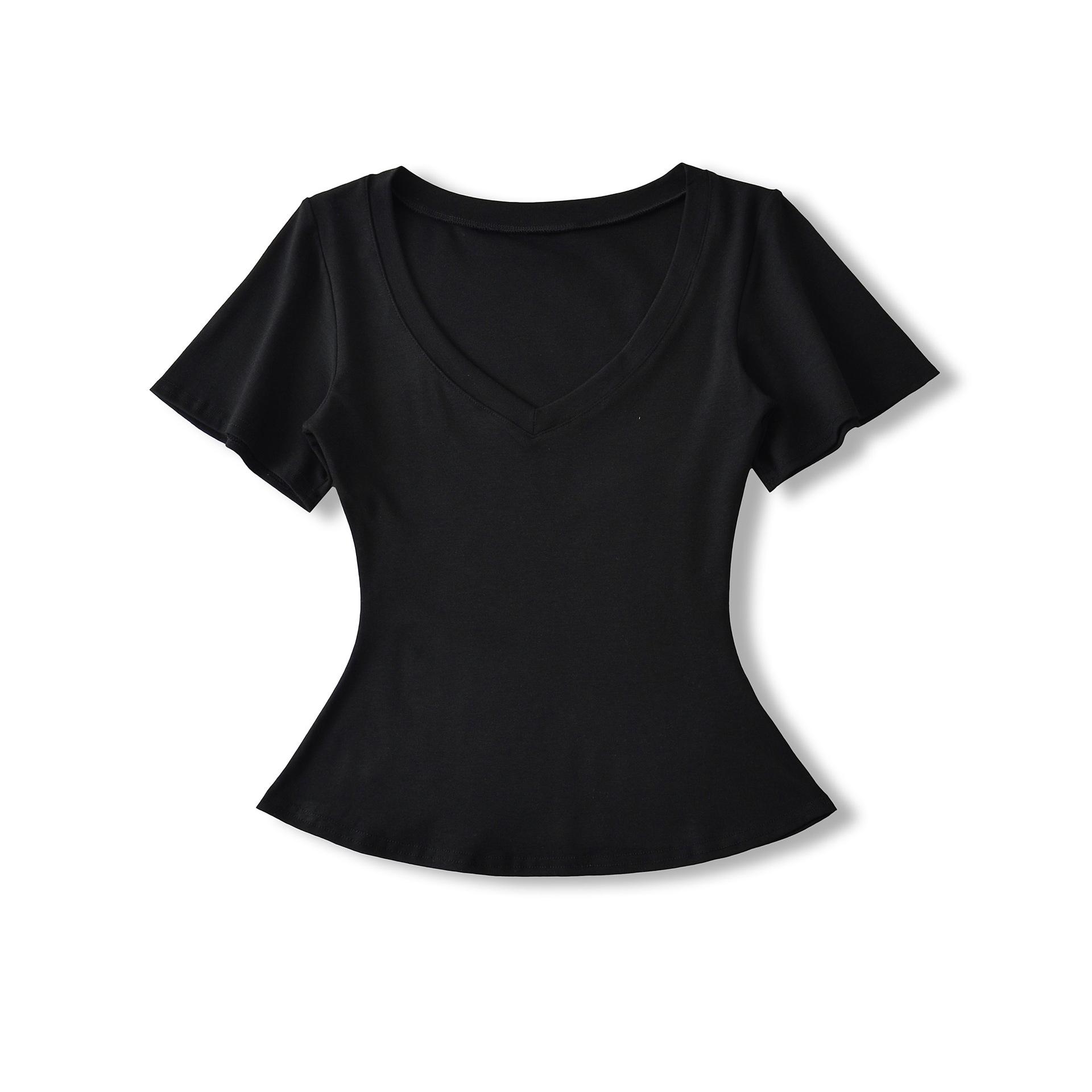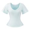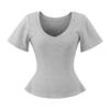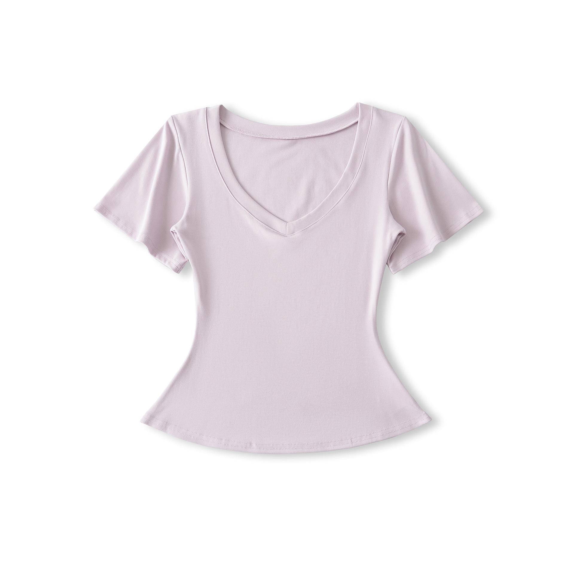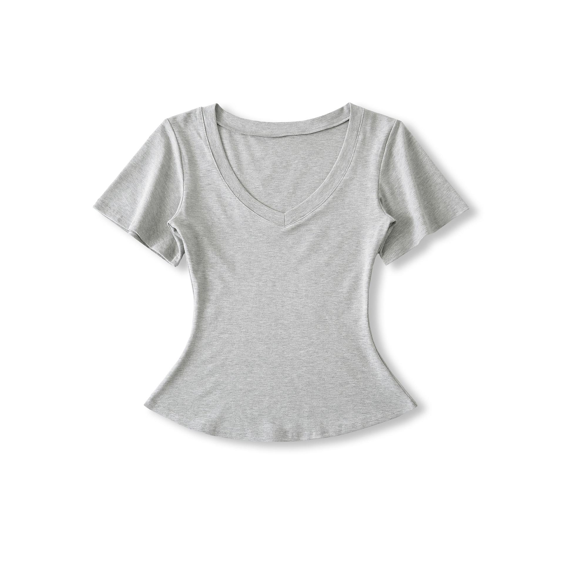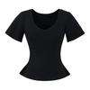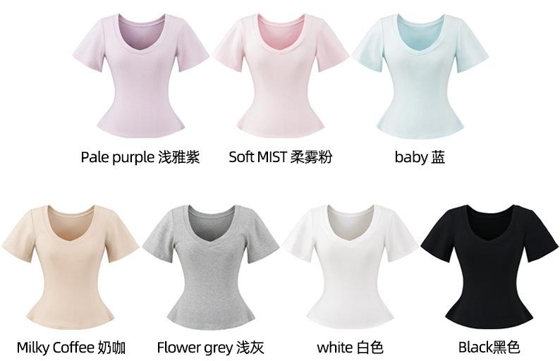 25323-Camiseta de Moda Sexy de Manga Corta con Cuello en V Estilo Europeo y Americano para Mujer 2025 Nueva Camiseta Top Bajo de Aspecto Adelgazante Sexy