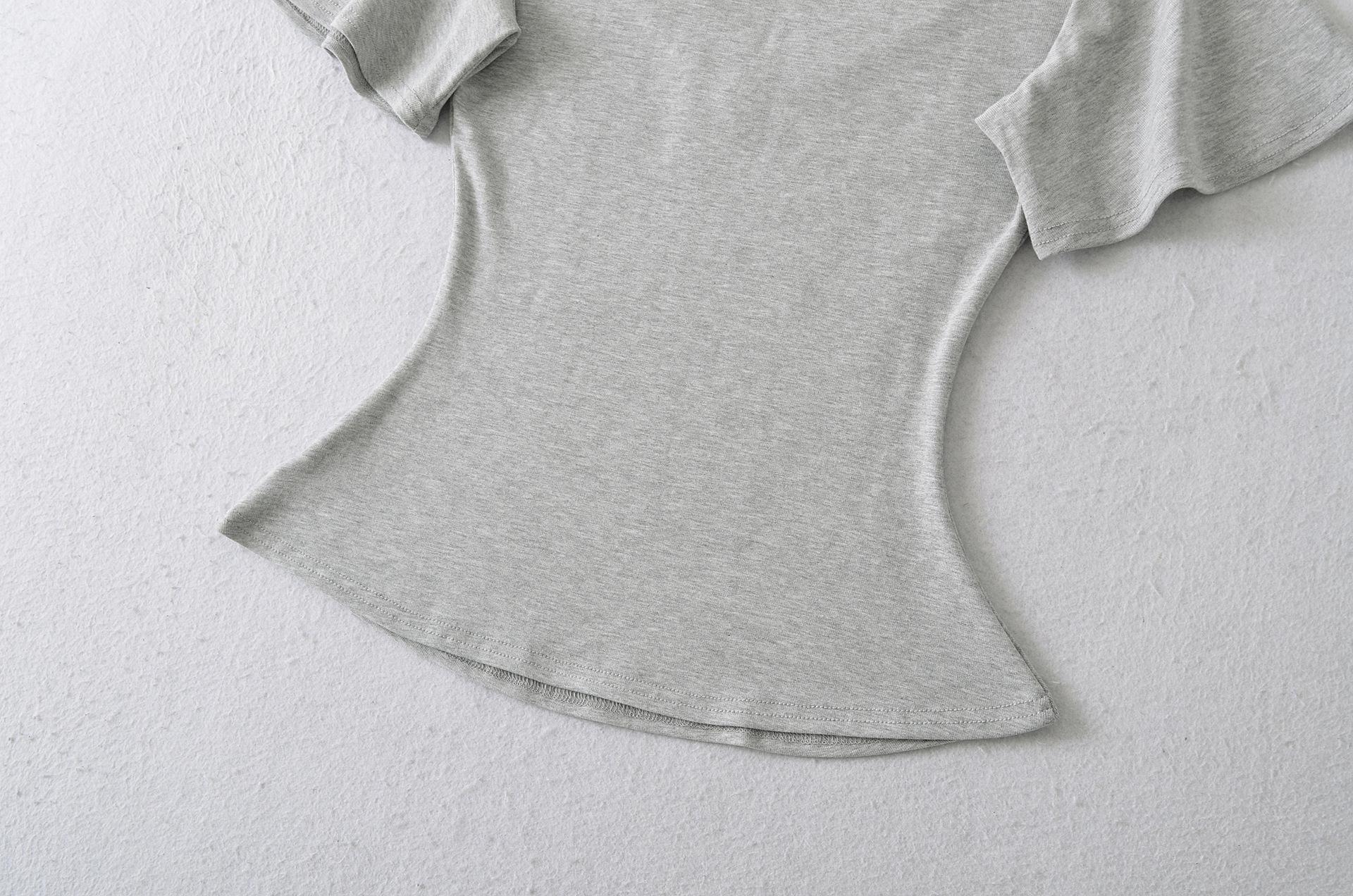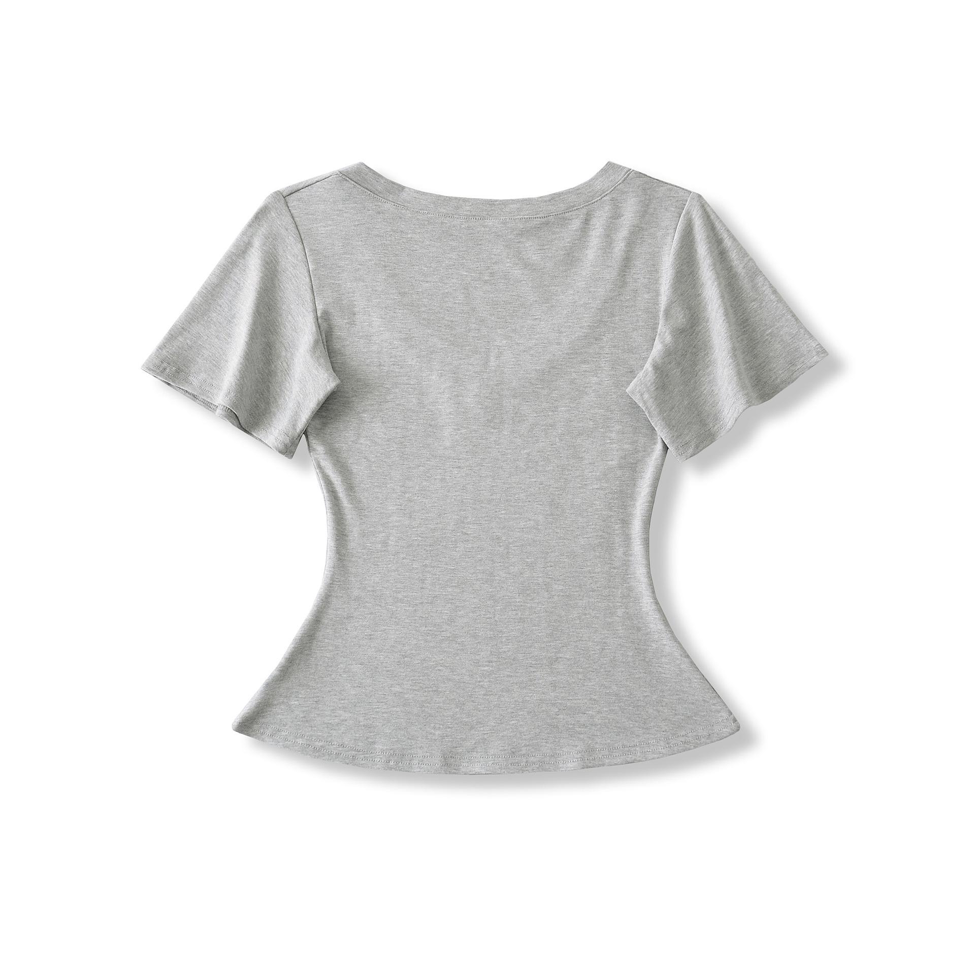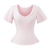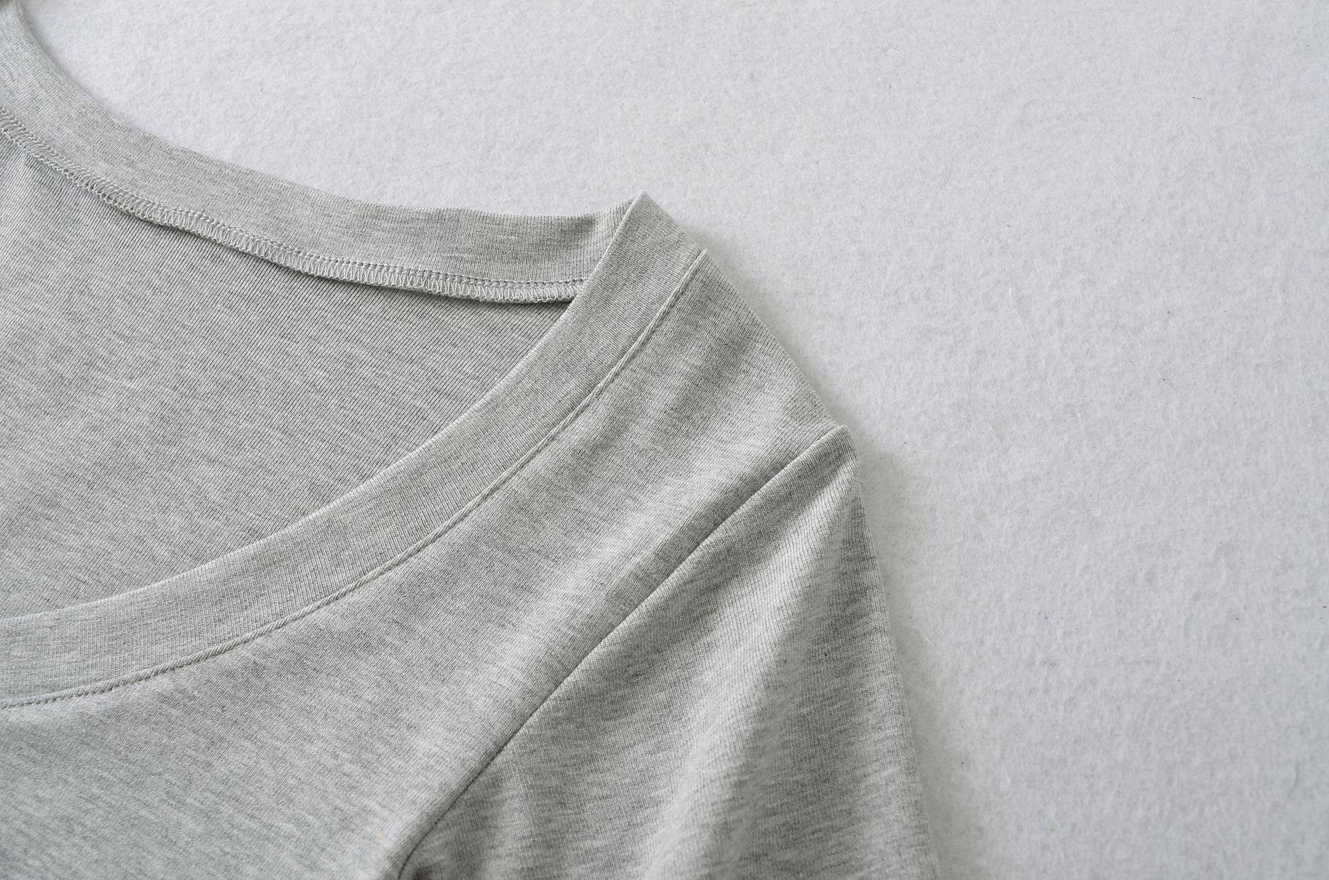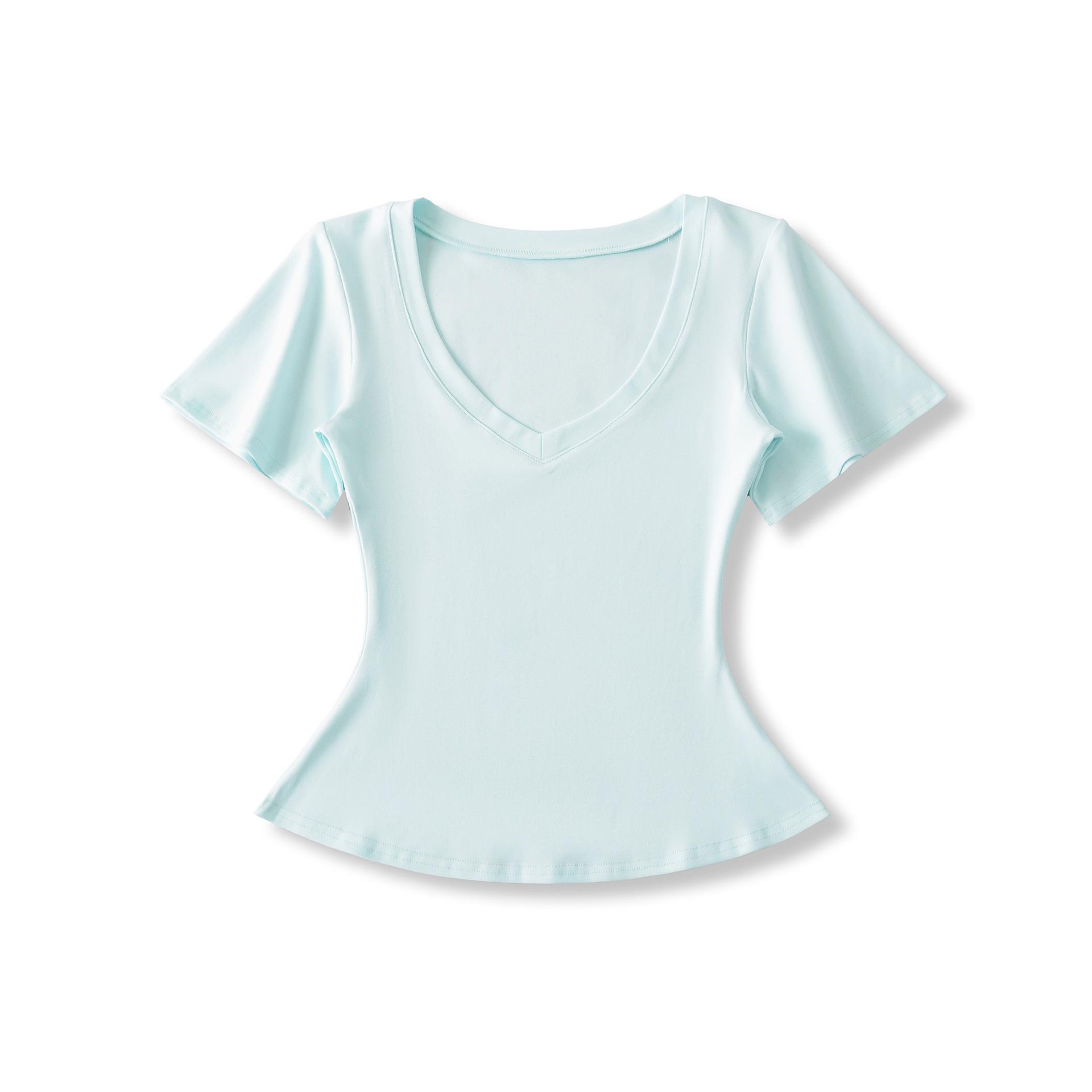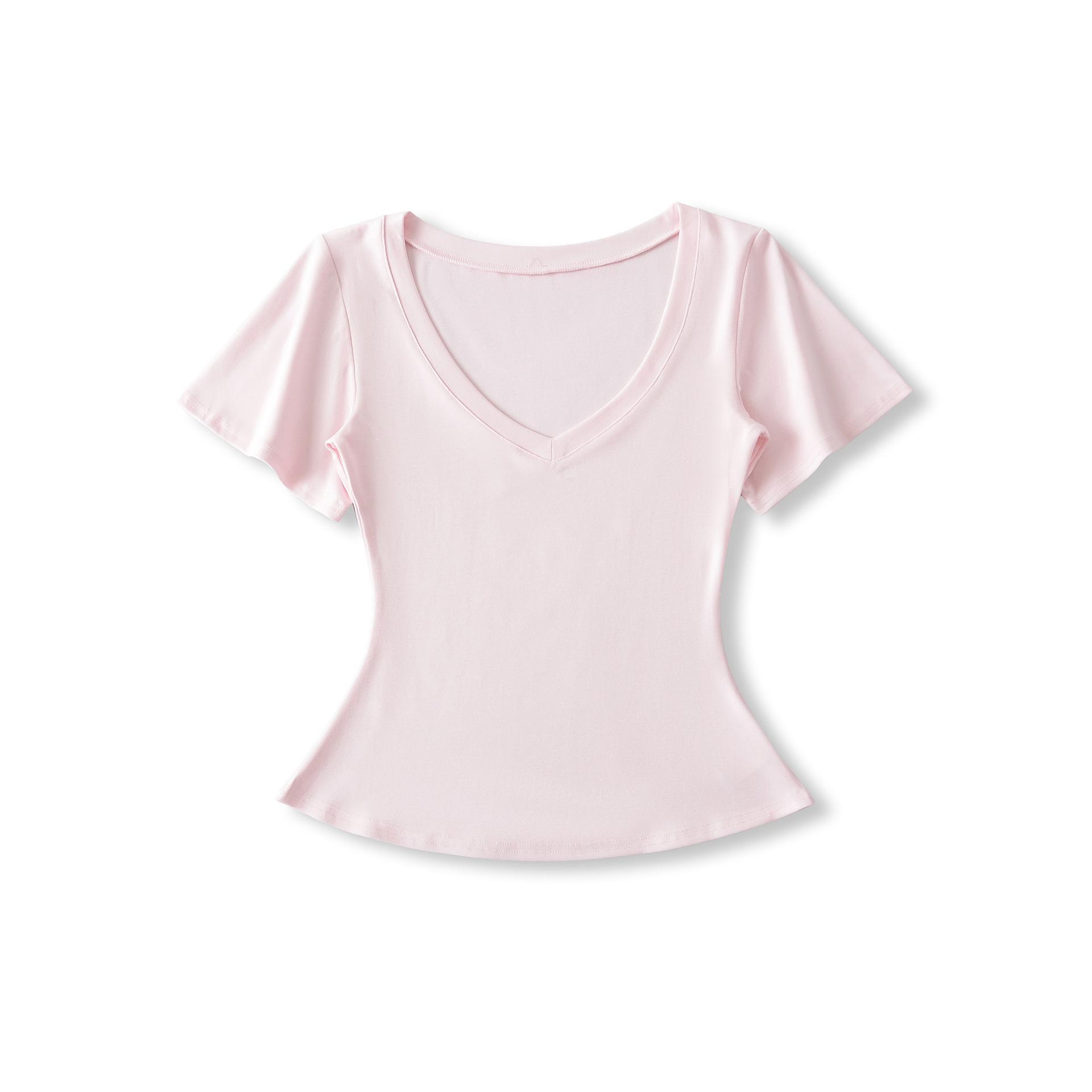 25323-Camiseta de Moda Sexy de Manga Corta con Cuello en V Estilo Europeo y Americano para Mujer 2025 Nueva Camiseta Top Bajo de Aspecto Adelgazante Sexy