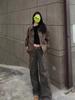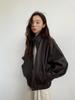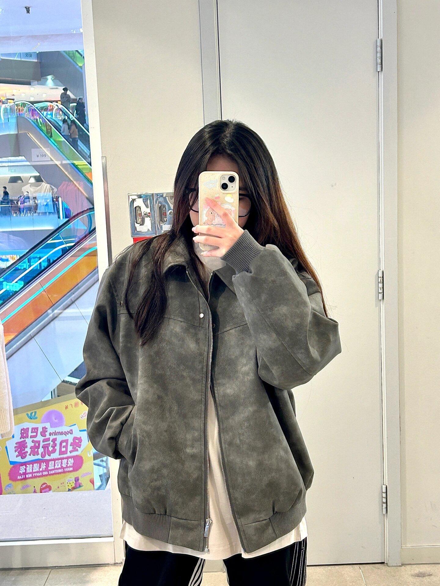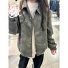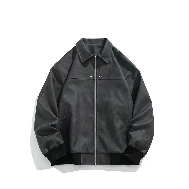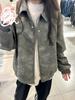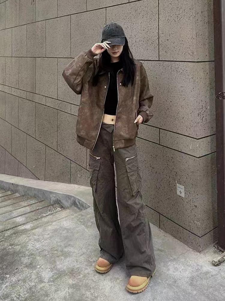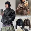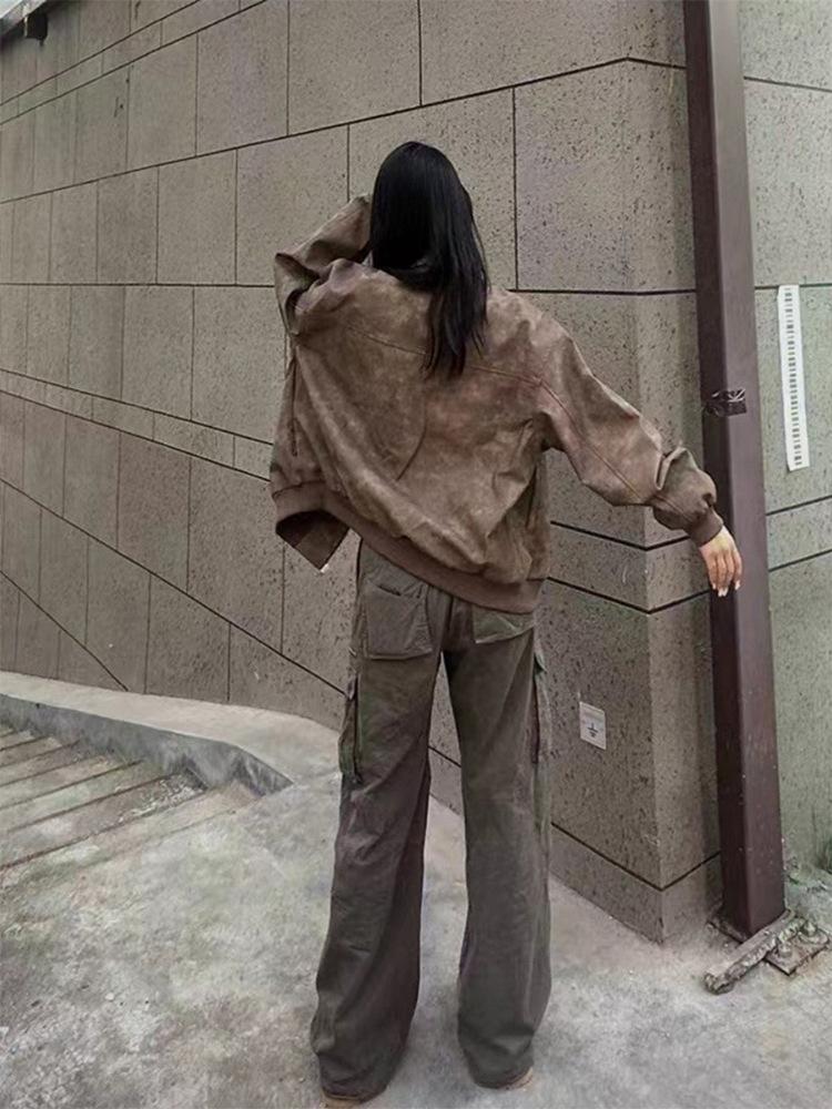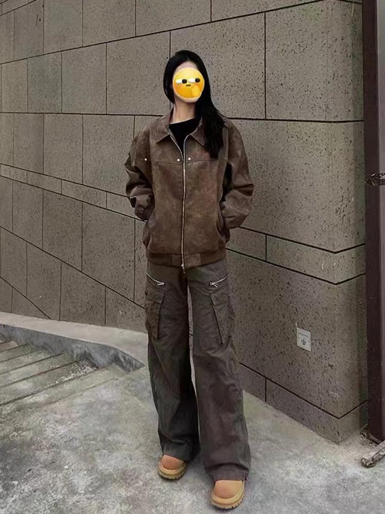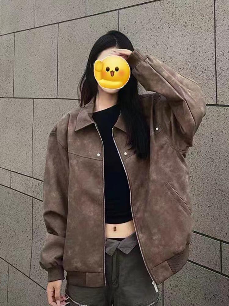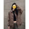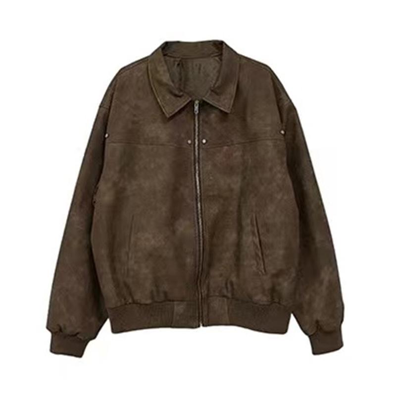 Chaqueta de Cuero Marrón Retro Americana con Solapa Abrigo Mujer Mirra Gamuza de Alta Gama Chaqueta de Pareja Versátil Motocicleta