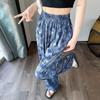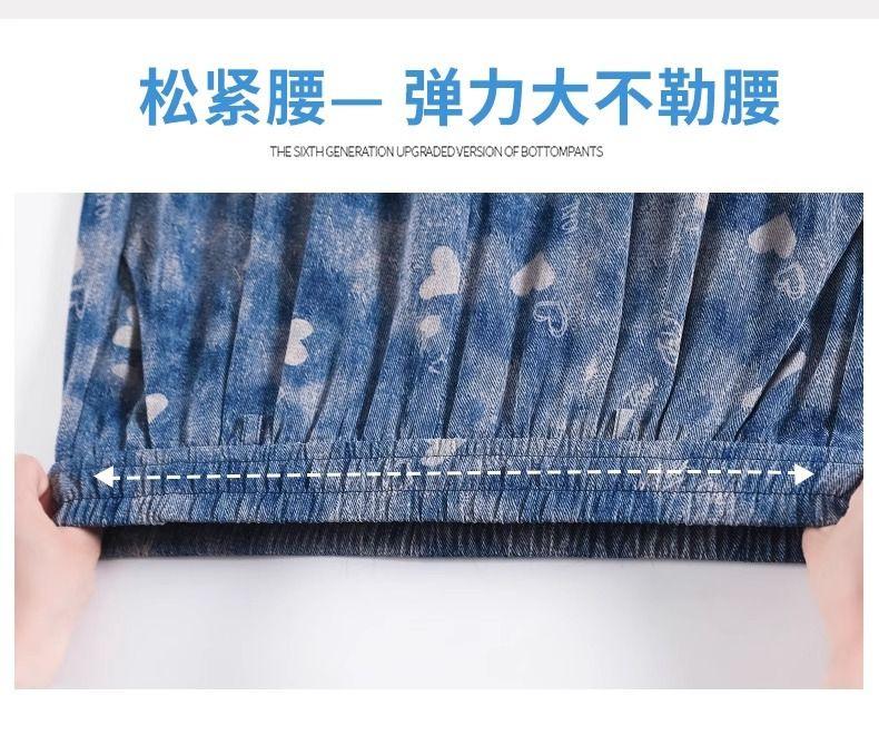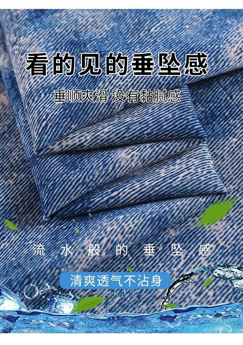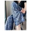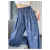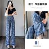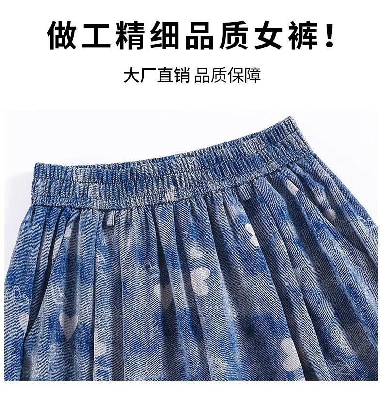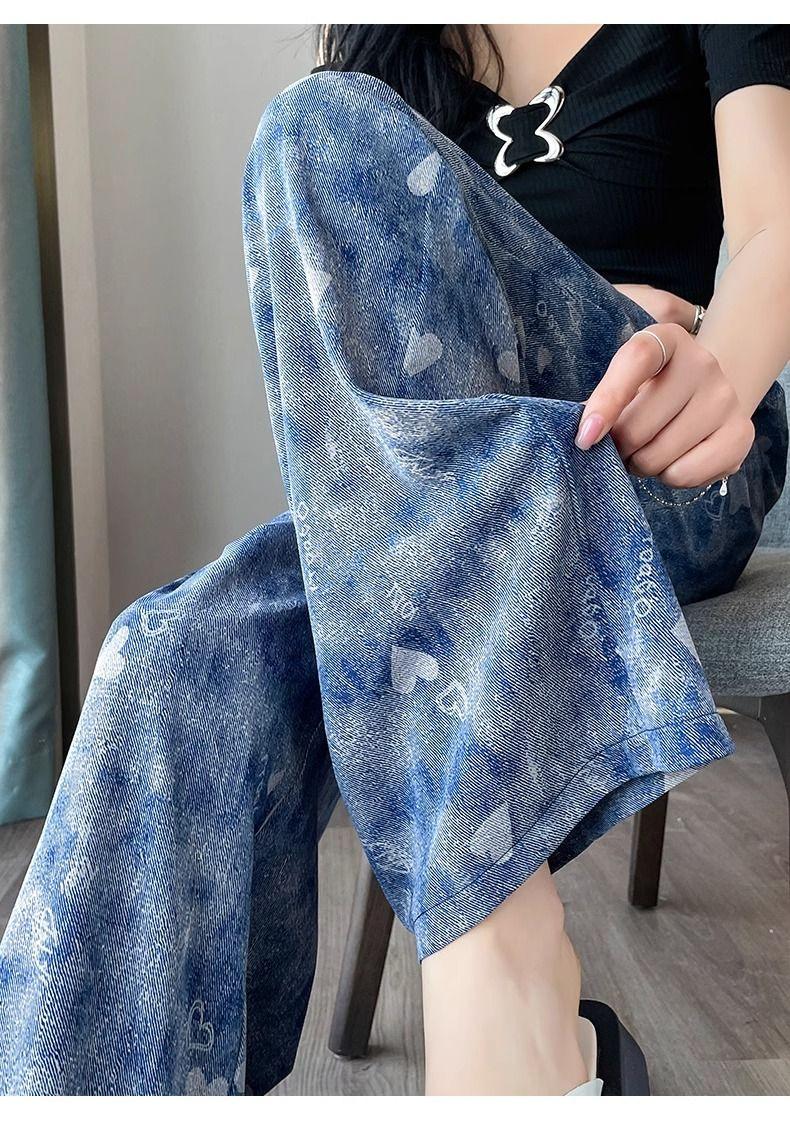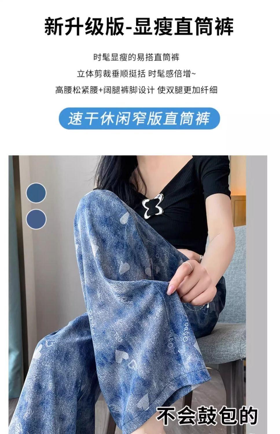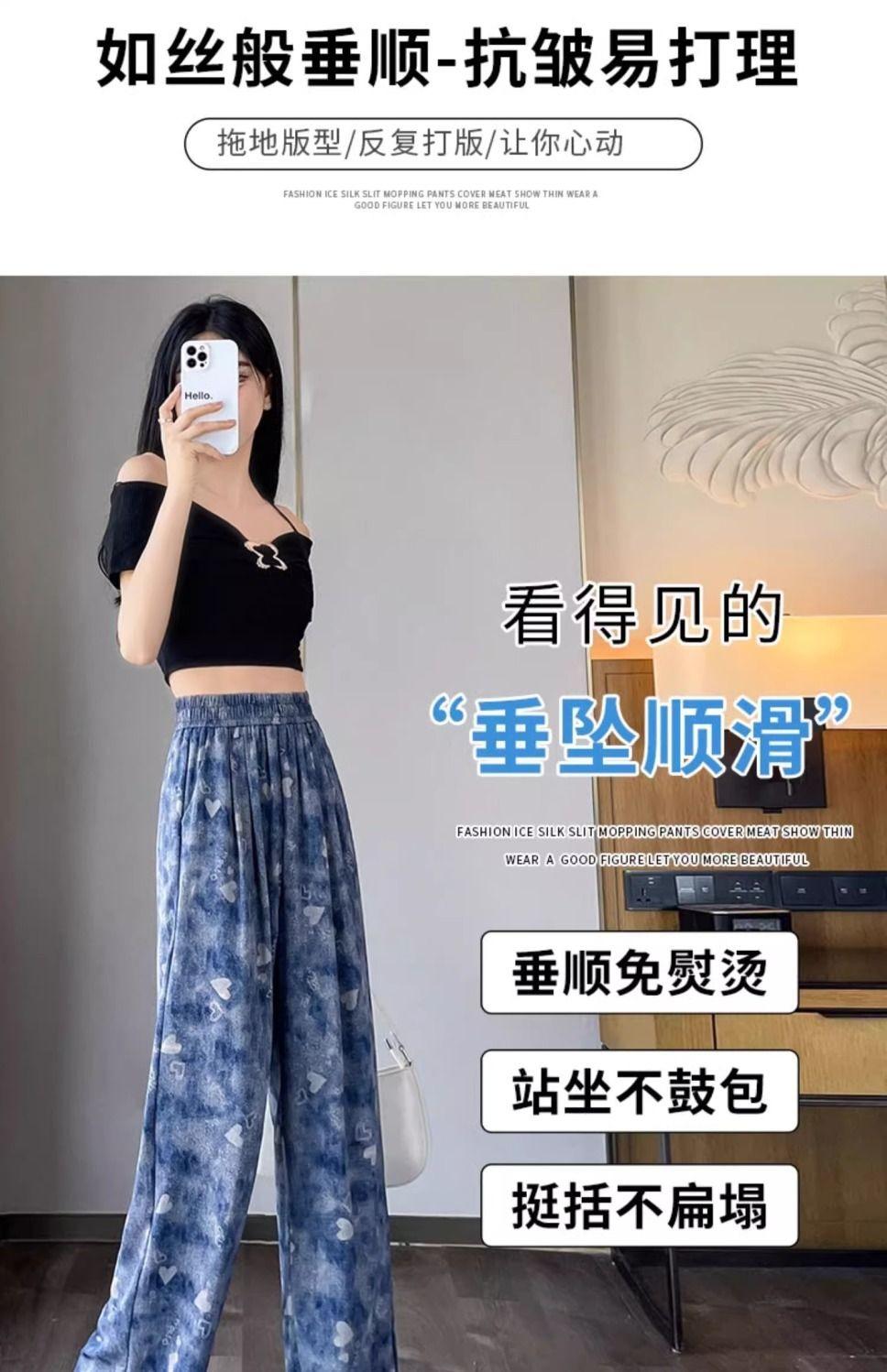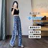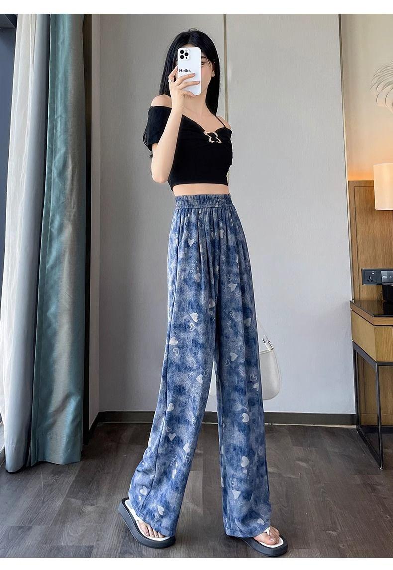 Pantalones de Verano de Seda de Hielo de Pierna Ancha para Mujer, Delgados Casuales de Cintura Alta Holgados Talla Grande con Caída Retro Estampados de Mezclilla Rectos