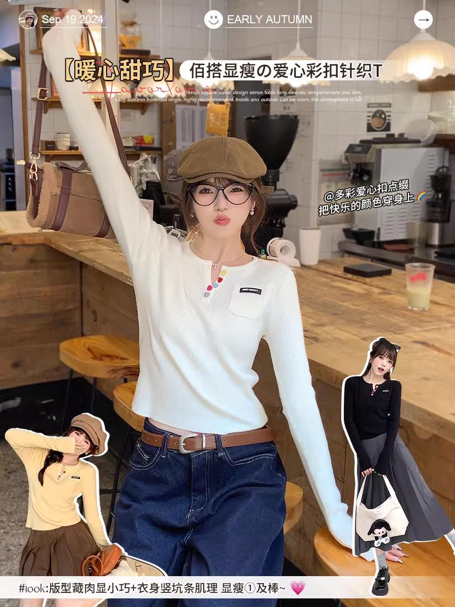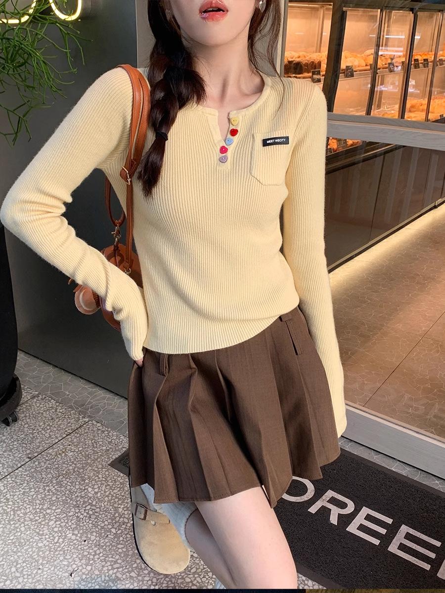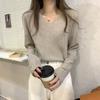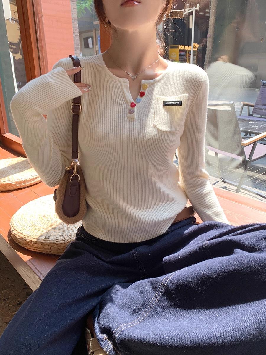 Suéter de Punto para Mujer 2025 Nuevo Cuello en V Manga Larga Top Capa Base Atuendos de Principio de Otoño Suéter con Sensación de Alta Gama